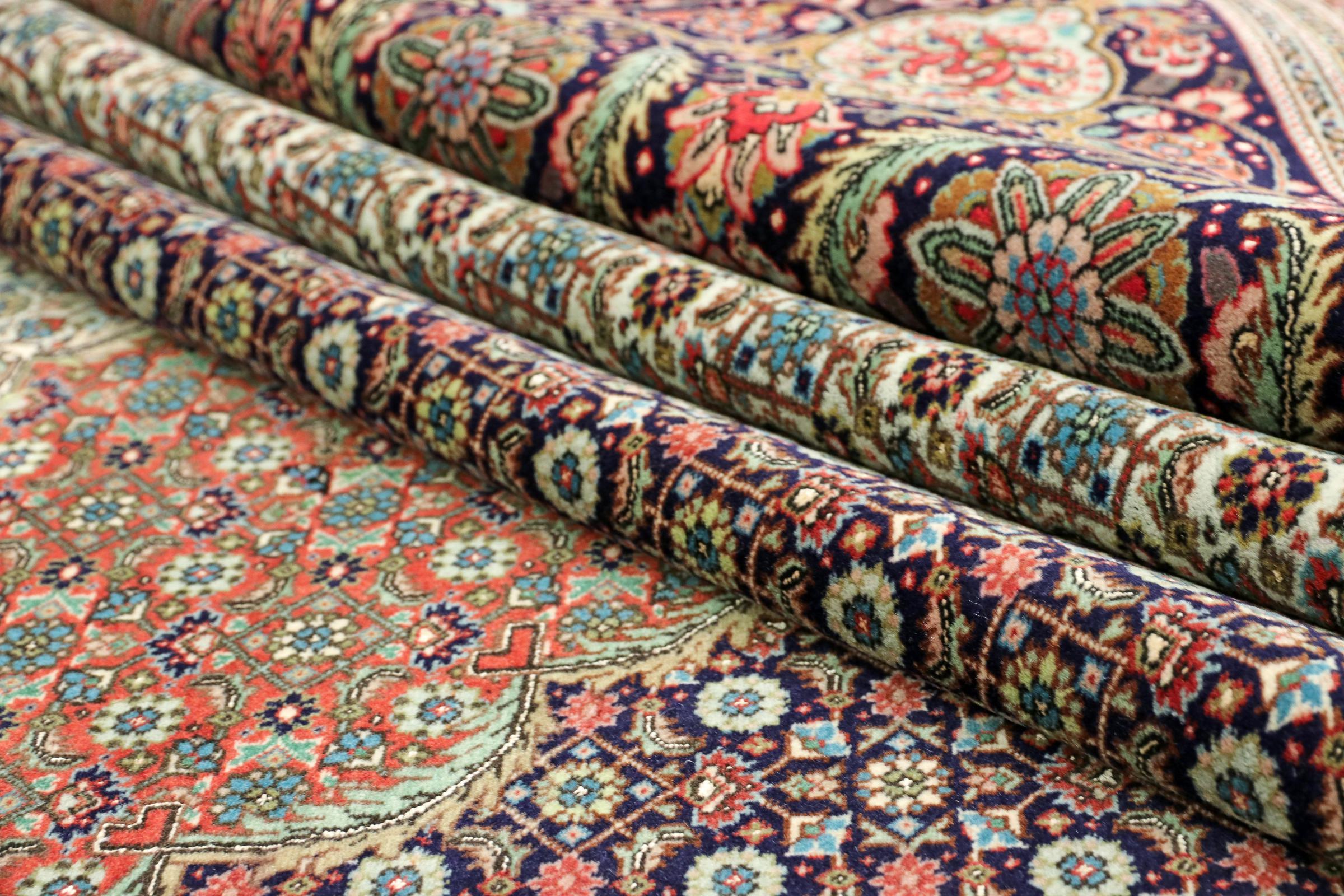 This rug from Tabriz has a traditional look. The Herati or Mahi pattern is one of the most classic designs of all. Anyone who loves traditional design will never want to be without this rug again.