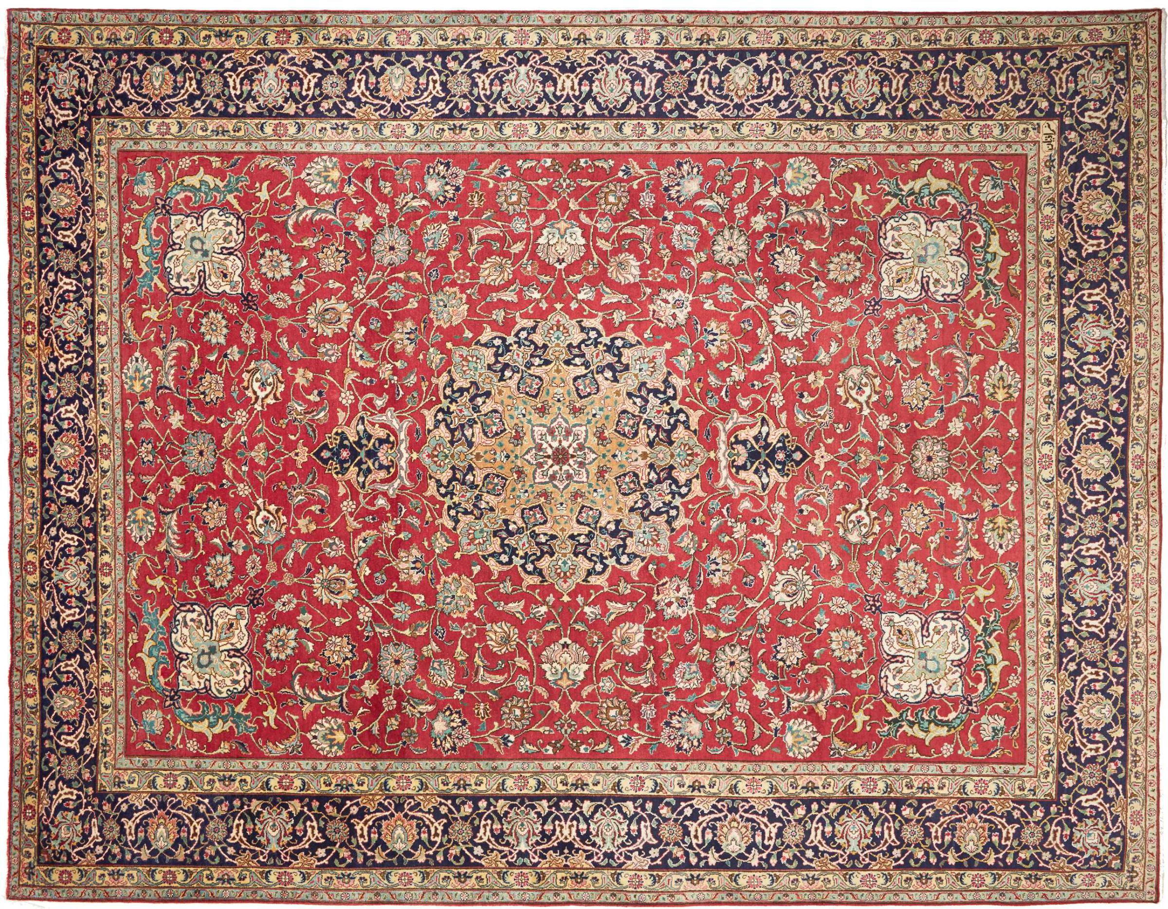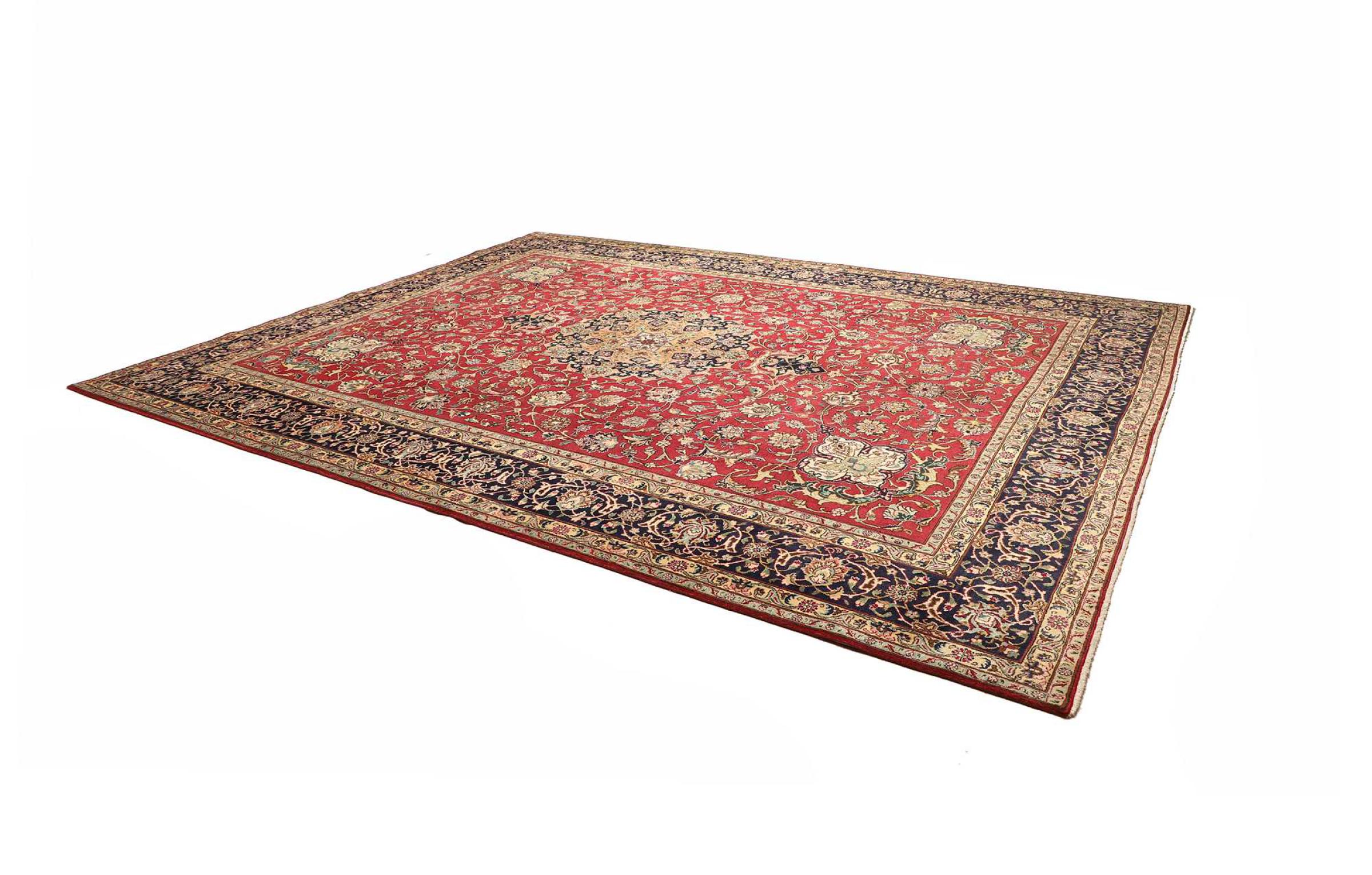 Carpet ID: 27483700327710 Size: 399x306 cm Thickness: ap. 5 mm Knot density: 160 000 - 200 000 / m² Manufacturing: Knotted by hand Pile: Handspun wool Warp: Cotton Origin: Persia Age: New Weight: ap. 43 kg In stock: Unique - Only 1 in stock