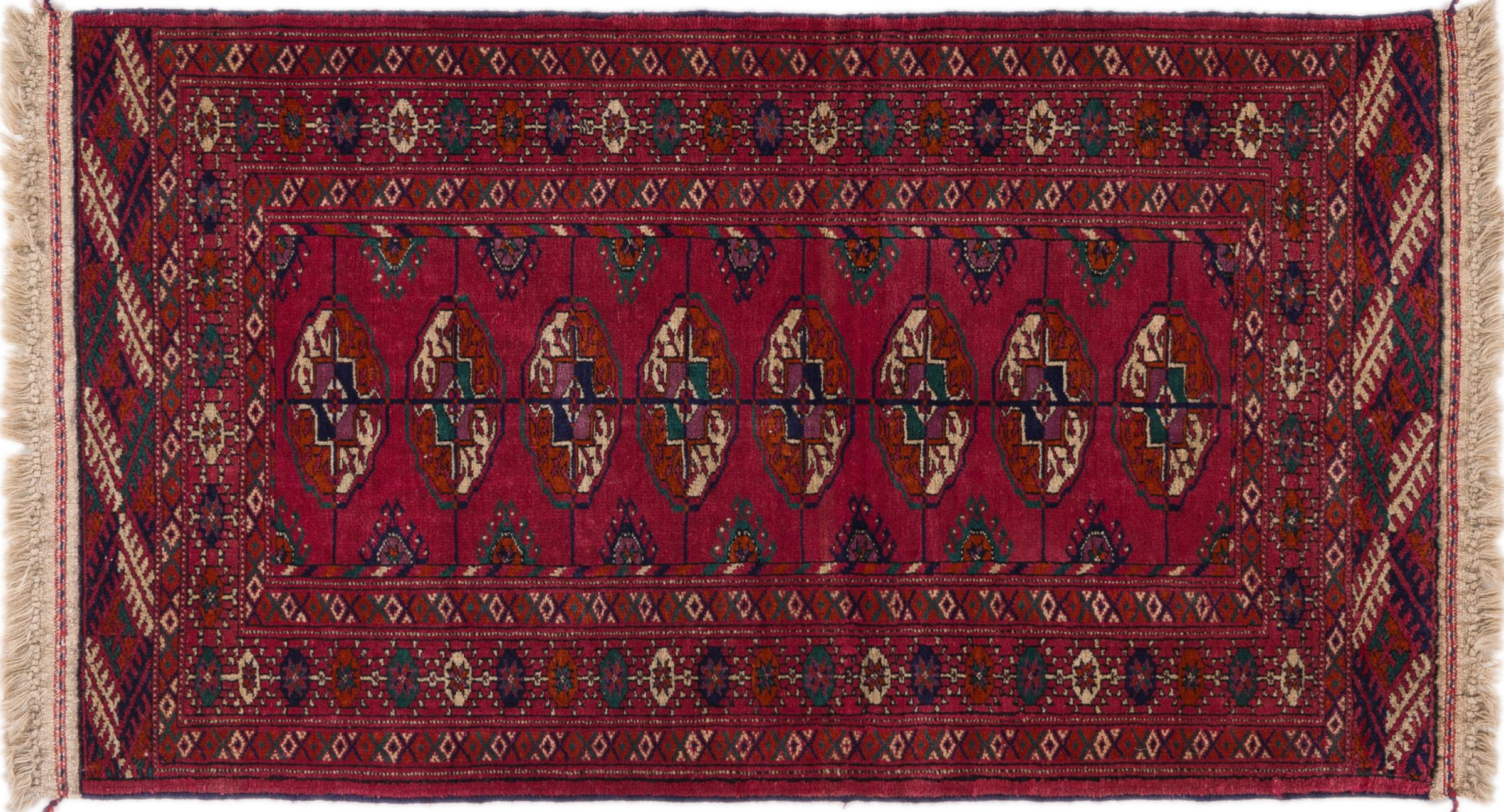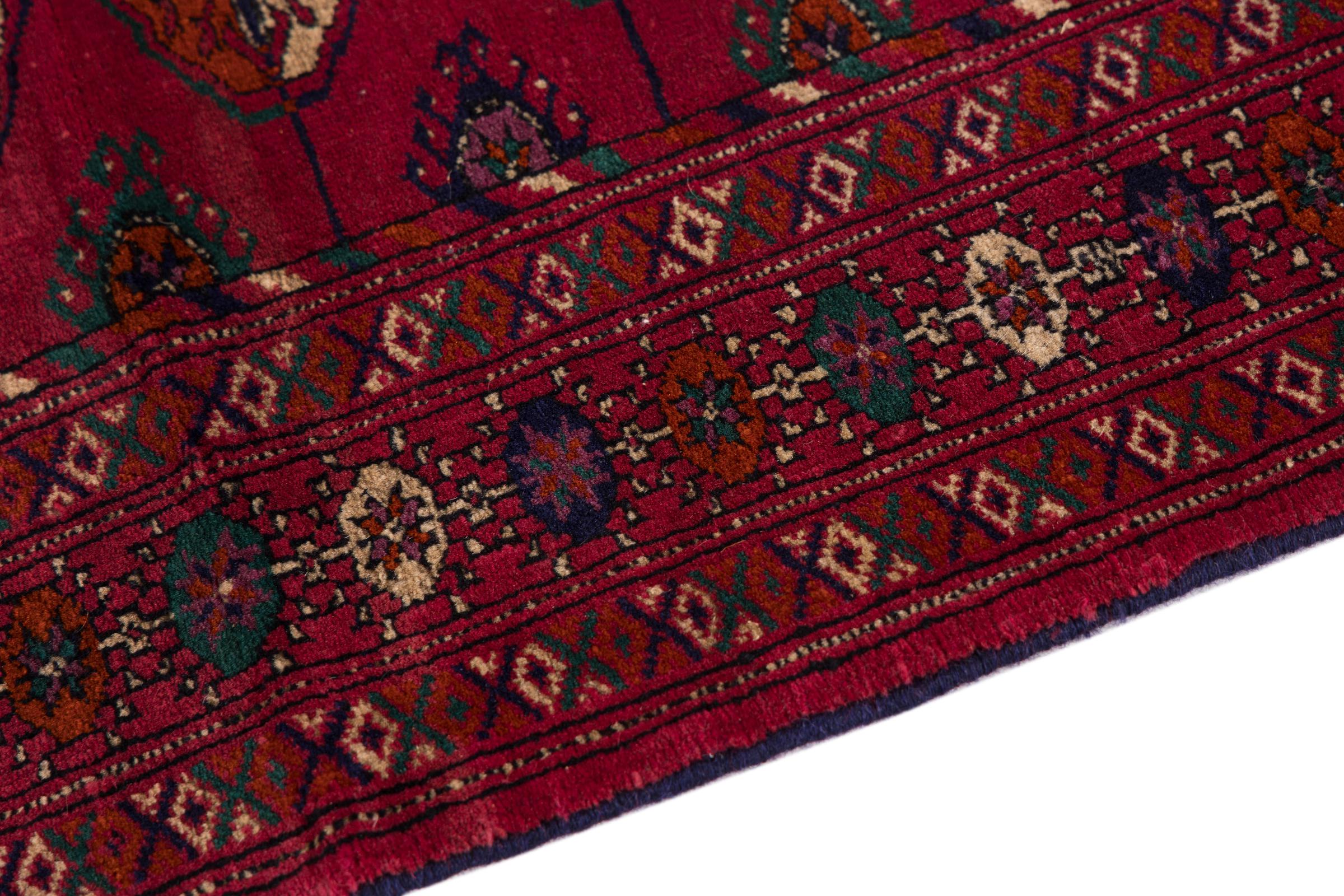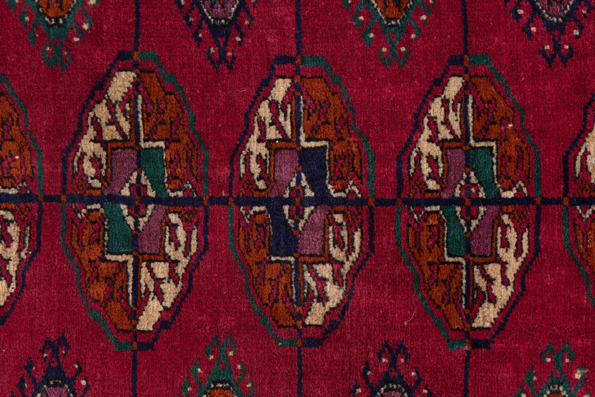 This Turkaman rug was knotted in traditional handicraft and convinces with its high production standard and the high-quality sheep's wool with high fat content. Its dark, warm colours reflect the Turkmen culture and add a touch of orient and cosiness to your home. Pakistani carpets often resemble this type of carpet, but often fail to match its quality.