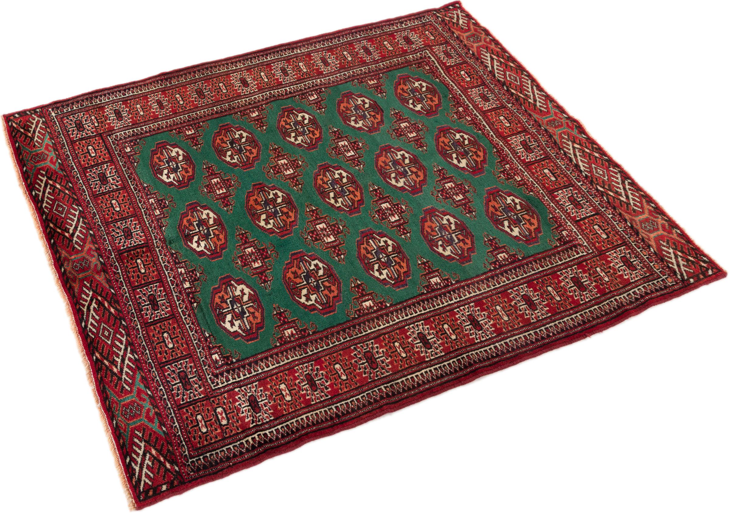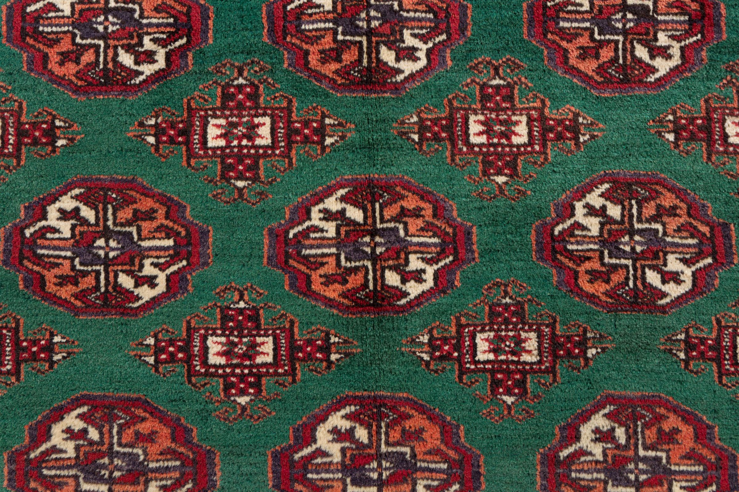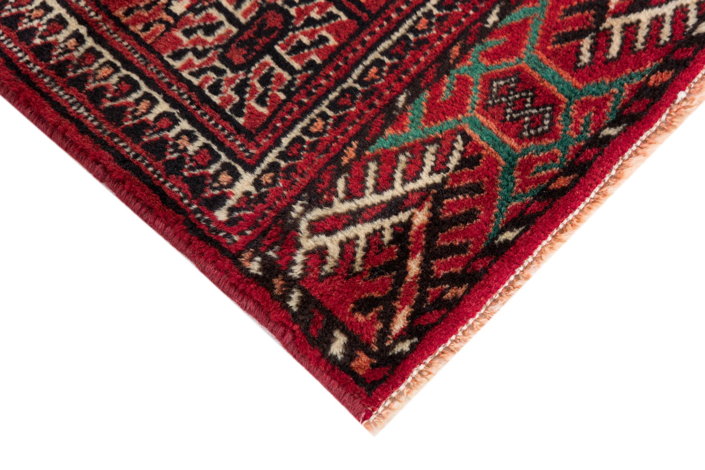 This Turkaman rug was knotted in traditional handicraft and convinces with its high production standard and the high-quality sheep's wool with high fat content. Its dark, warm colours reflect the Turkmen culture and add a touch of orient and cosiness to your home. Pakistani carpets often resemble this type of carpet, but often fail to match its quality.