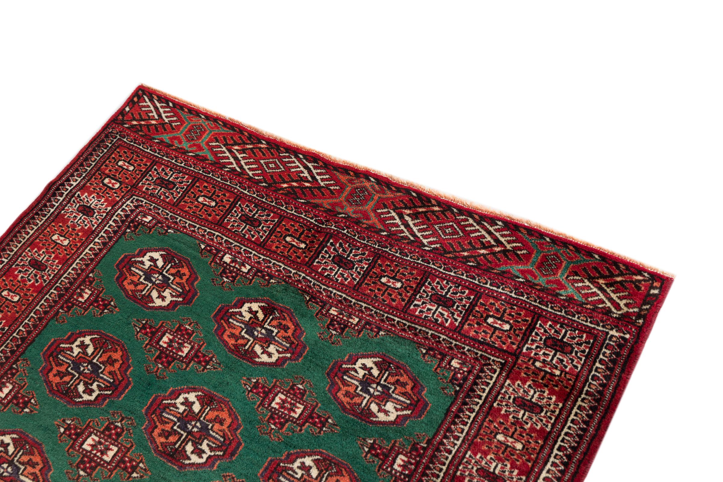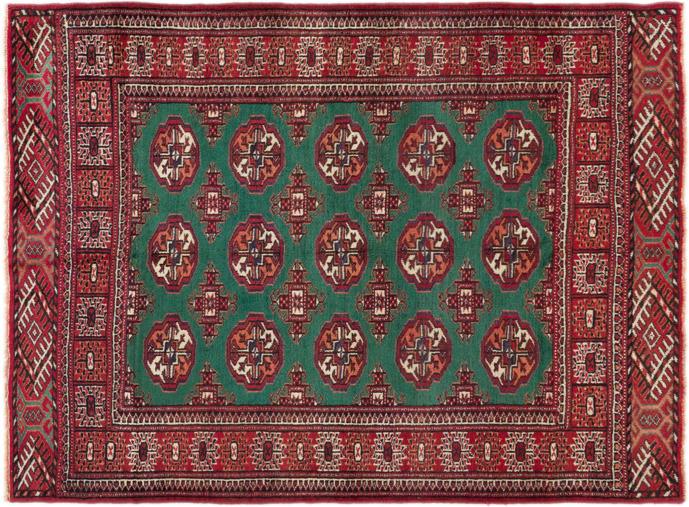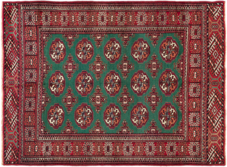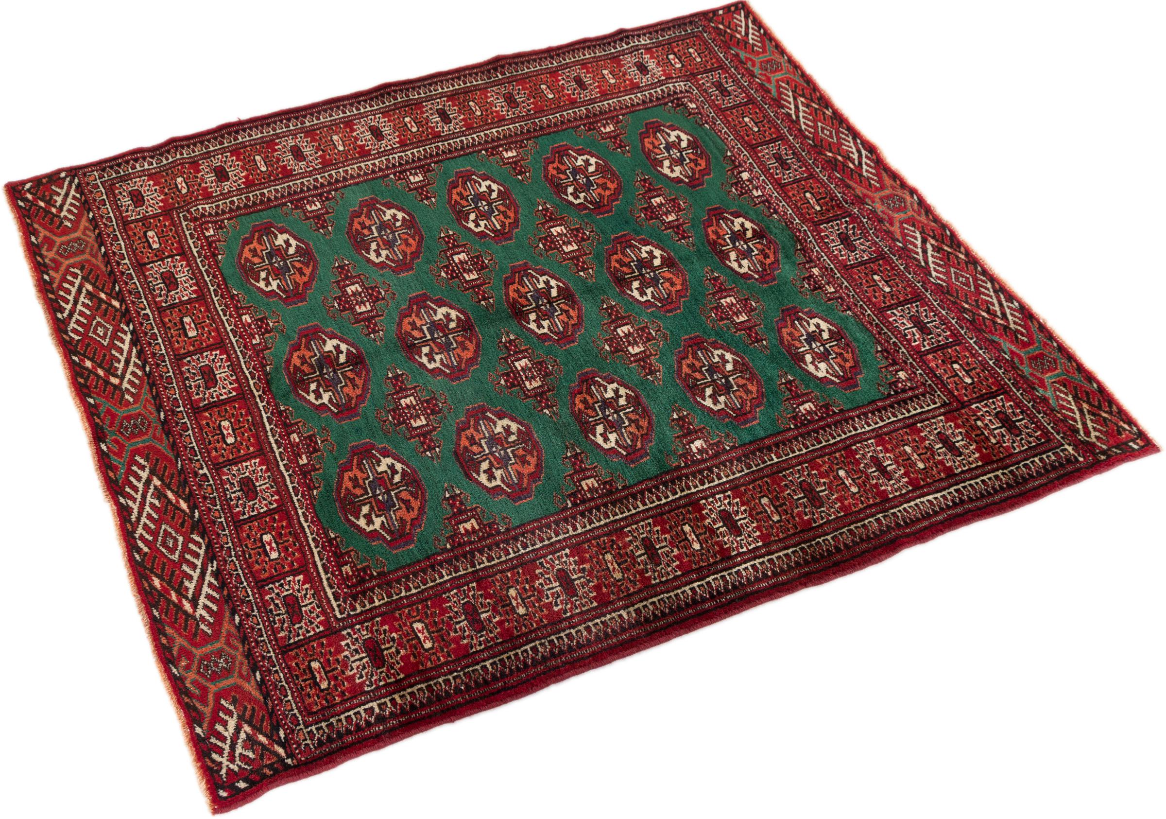 This Turkaman rug was knotted in traditional handicraft and convinces with its high production standard and the high-quality sheep's wool with high fat content. Its dark, warm colours reflect the Turkmen culture and add a touch of orient and cosiness to your home. Pakistani carpets often resemble this type of carpet, but often fail to match its quality.