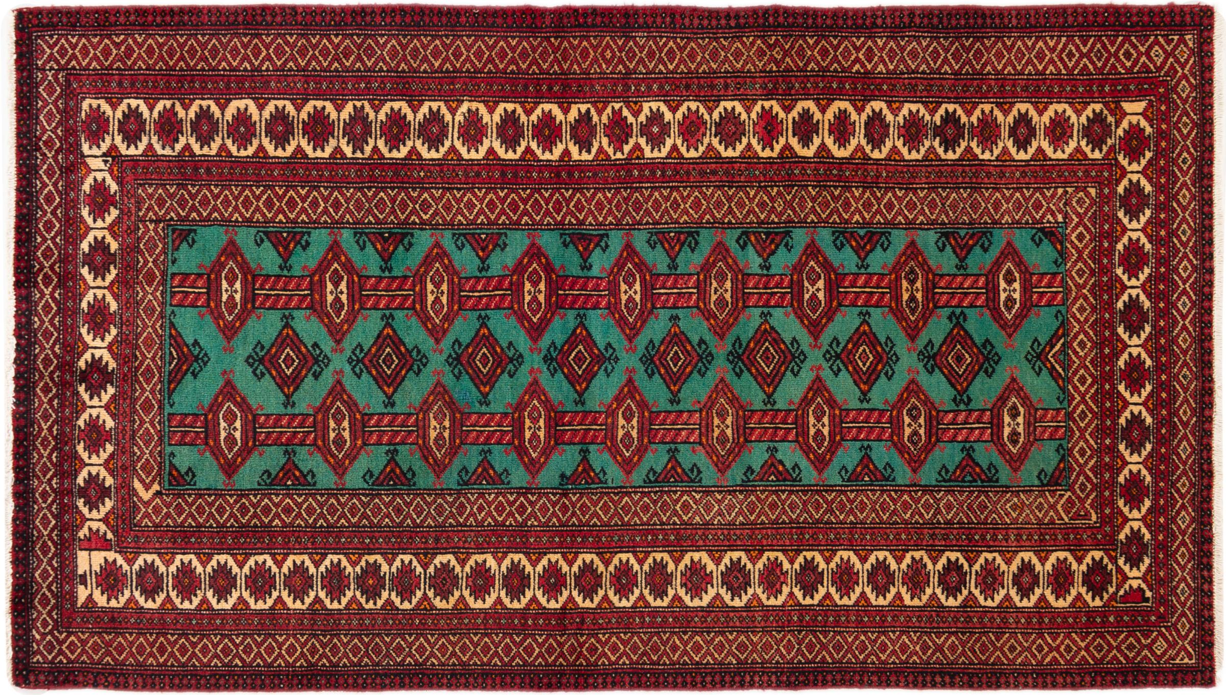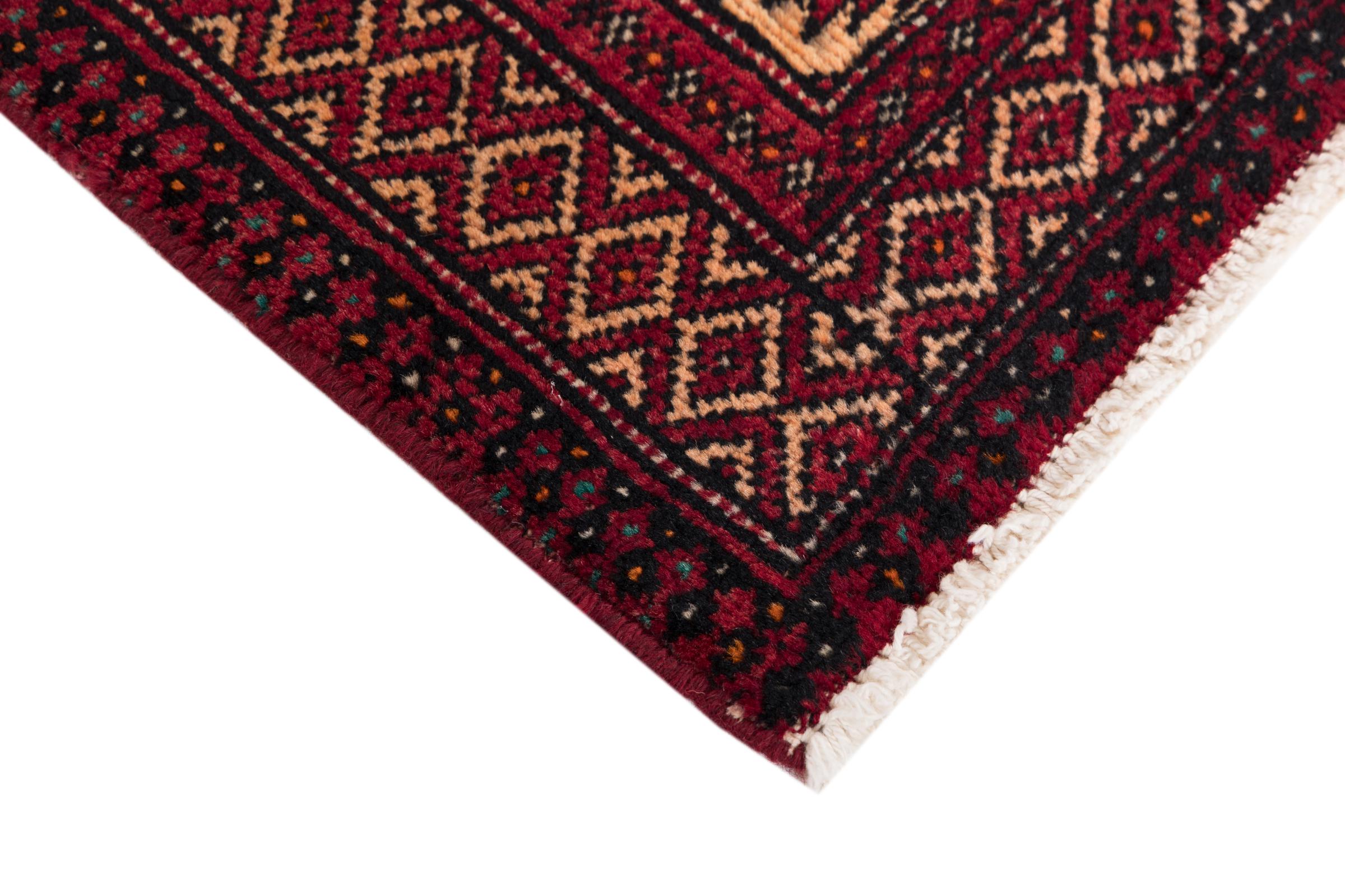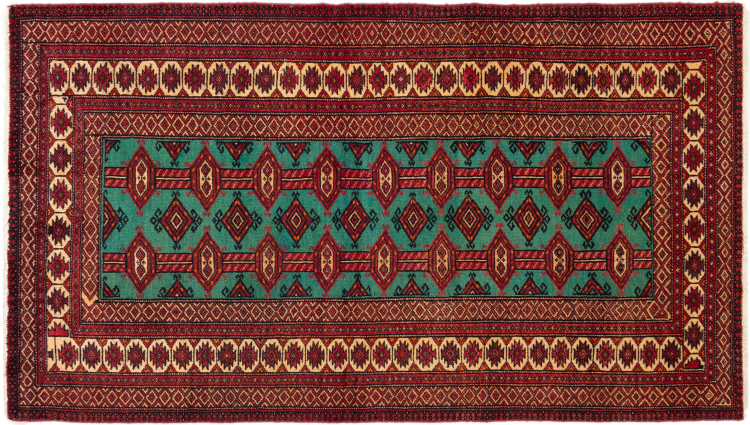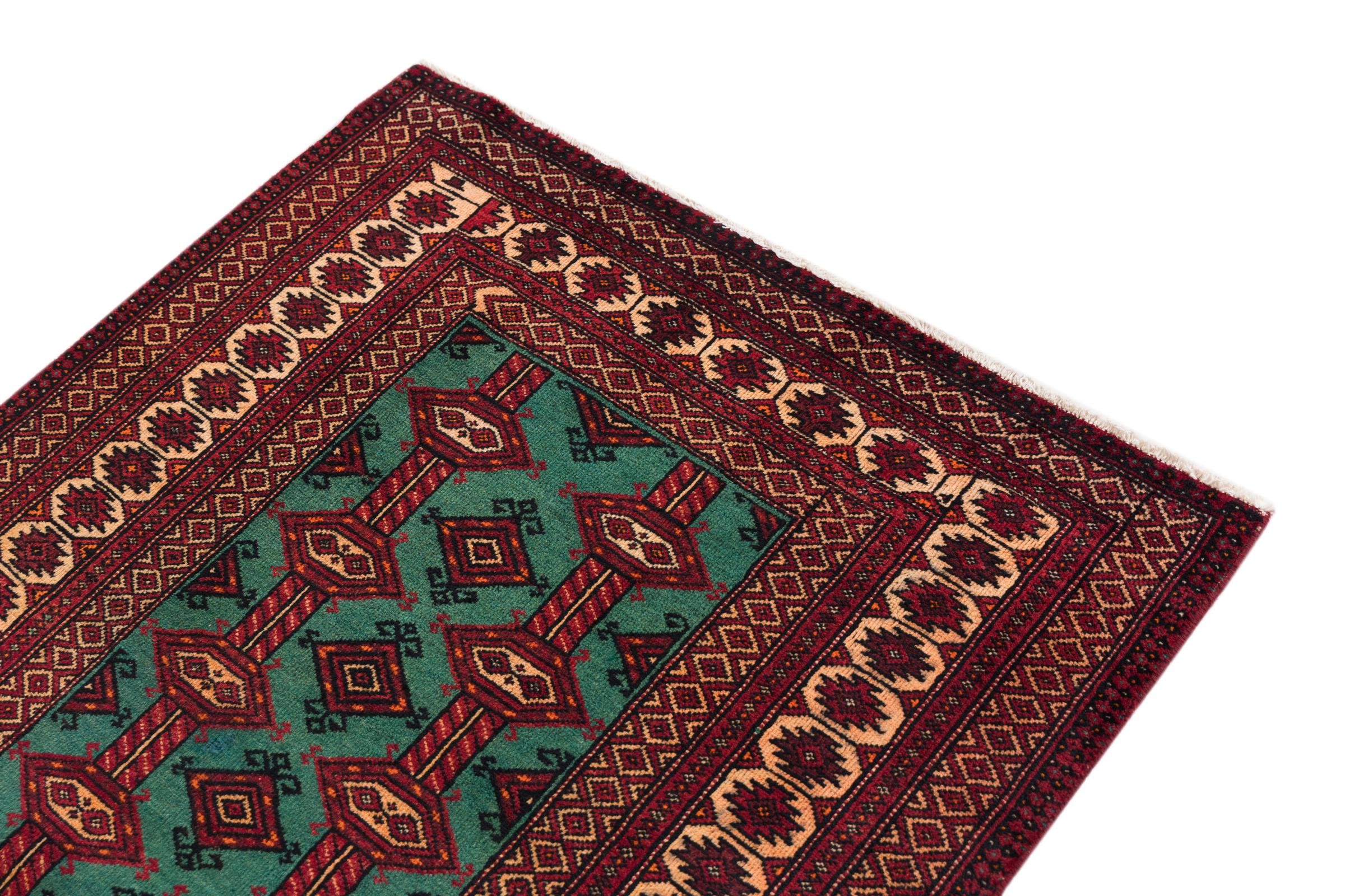 This Turkaman rug was knotted in traditional handicraft and convinces with its high production standard and the high-quality sheep's wool with high fat content. Its dark, warm colours reflect the Turkmen culture and add a touch of orient and cosiness to your home. Pakistani carpets often resemble this type of carpet, but often fail to match its quality.
