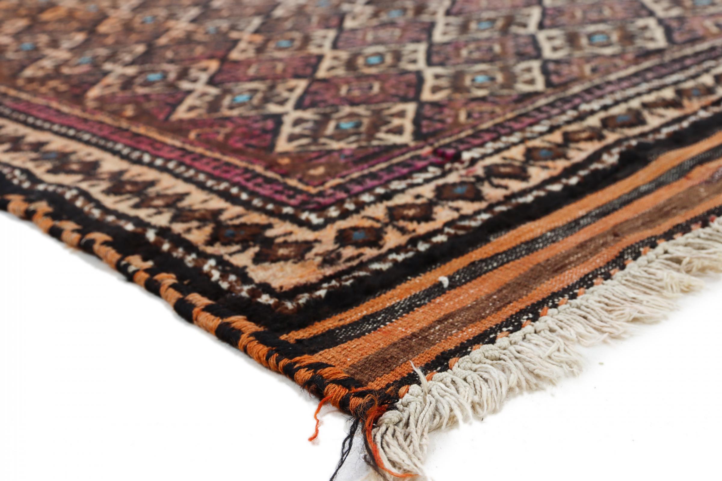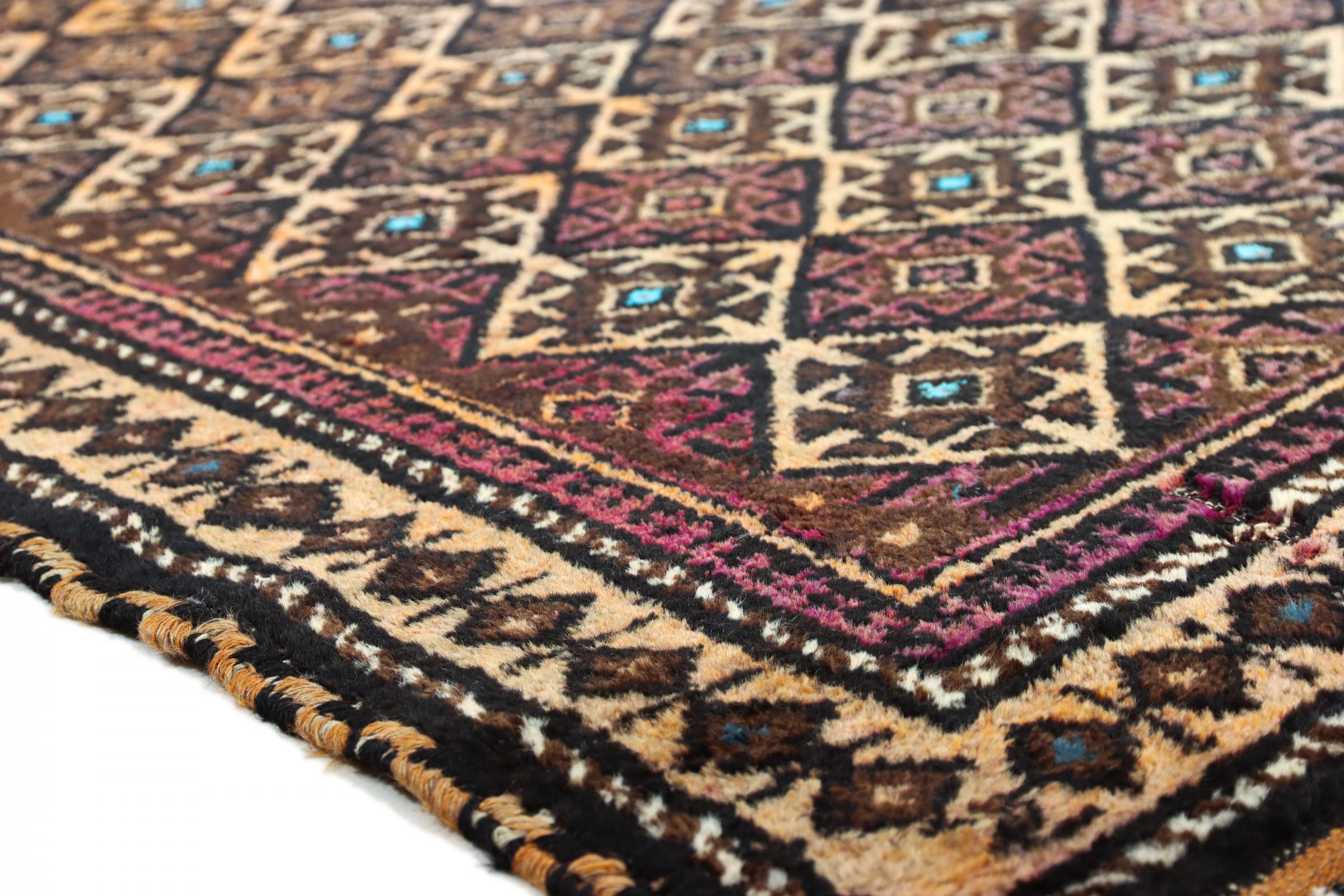 This Turkaman rug was knotted in traditional handicraft and convinces with its high production standard and the high-quality sheep's wool with high fat content. Its dark, warm colours reflect the Turkmen culture and add a touch of orient and cosiness to your home. Pakistani carpets often resemble this type of carpet, but often fail to match its quality.