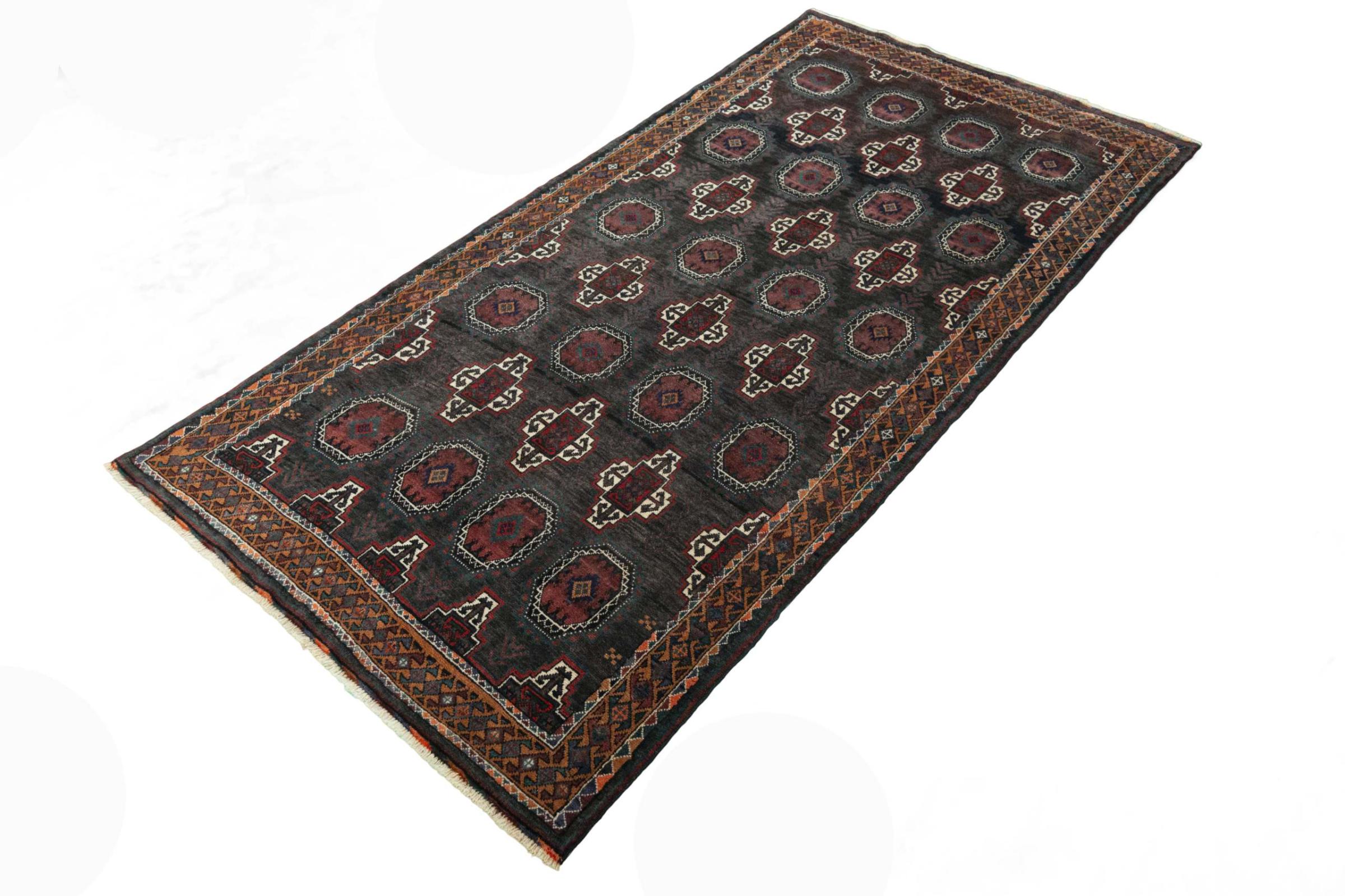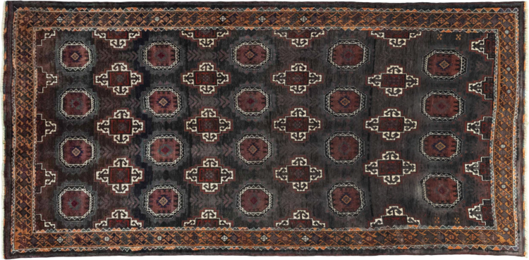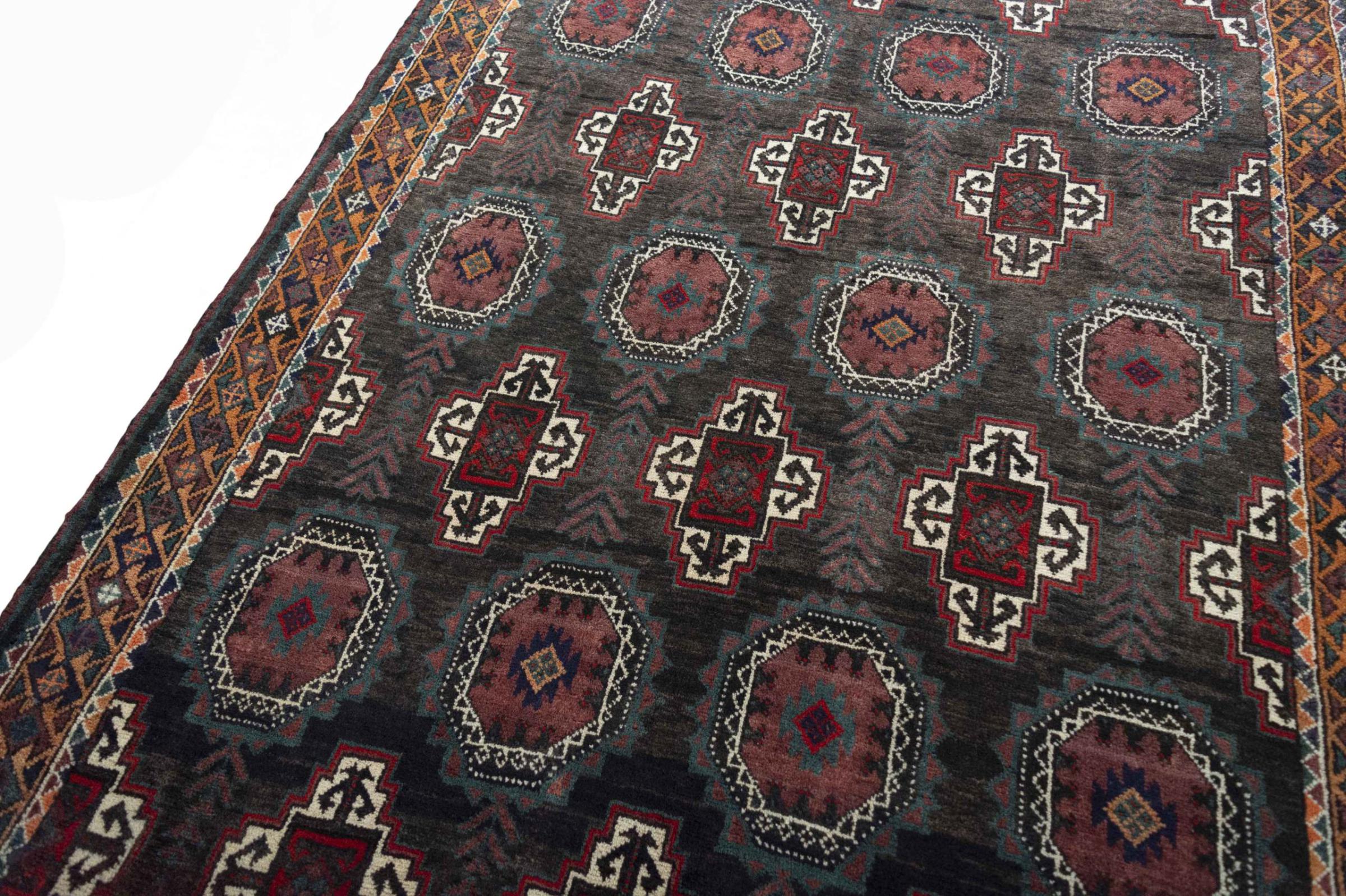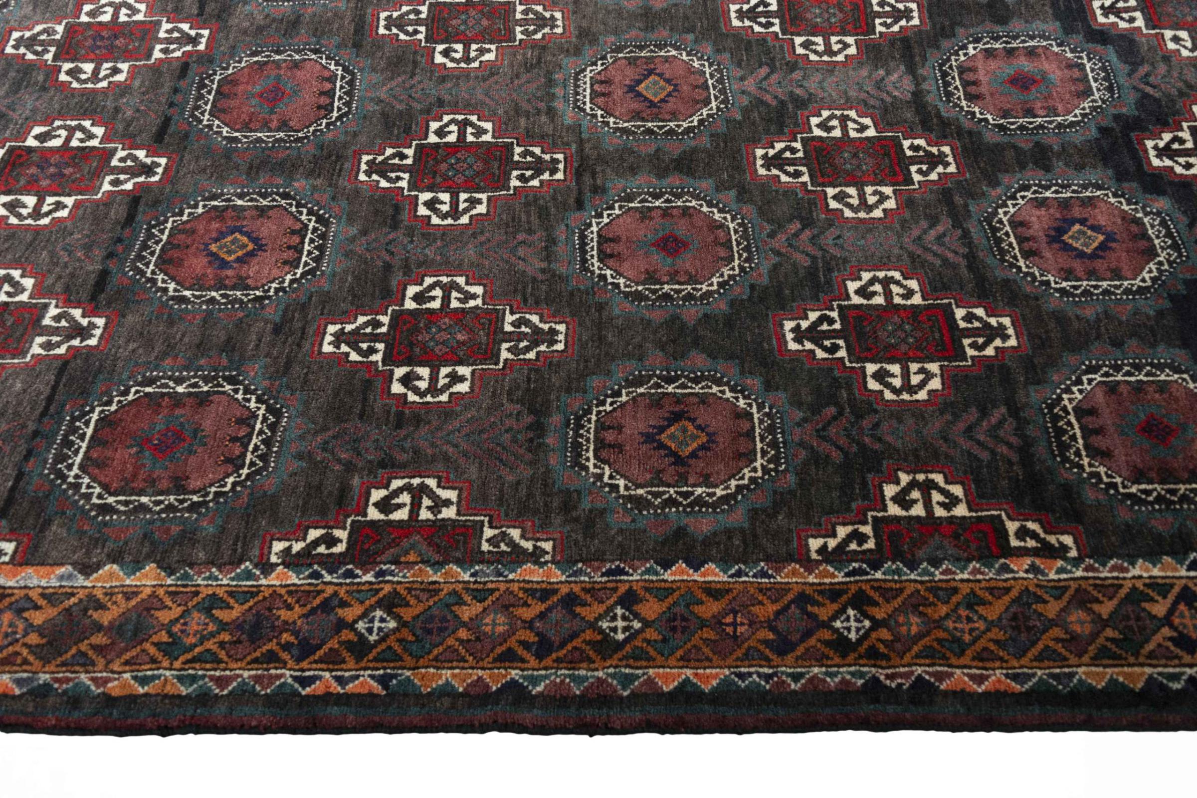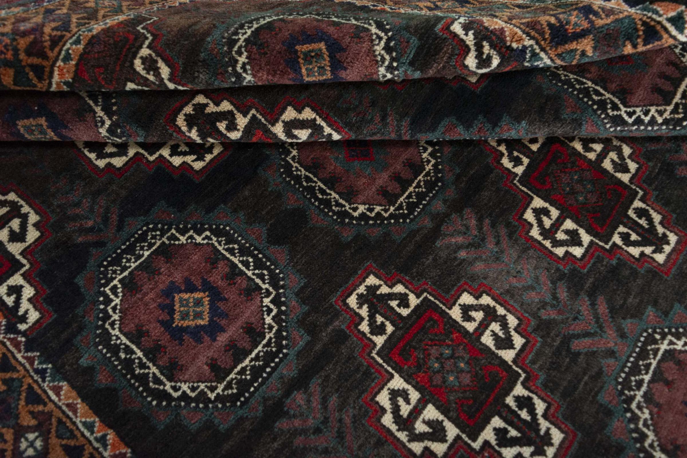 This Turkaman rug was knotted in traditional handicraft and convinces with its high production standard and the high-quality sheep's wool with high fat content. Its dark, warm colours reflect the Turkmen culture and add a touch of orient and cosiness to your home. Pakistani carpets often resemble this type of carpet, but often fail to match its quality.