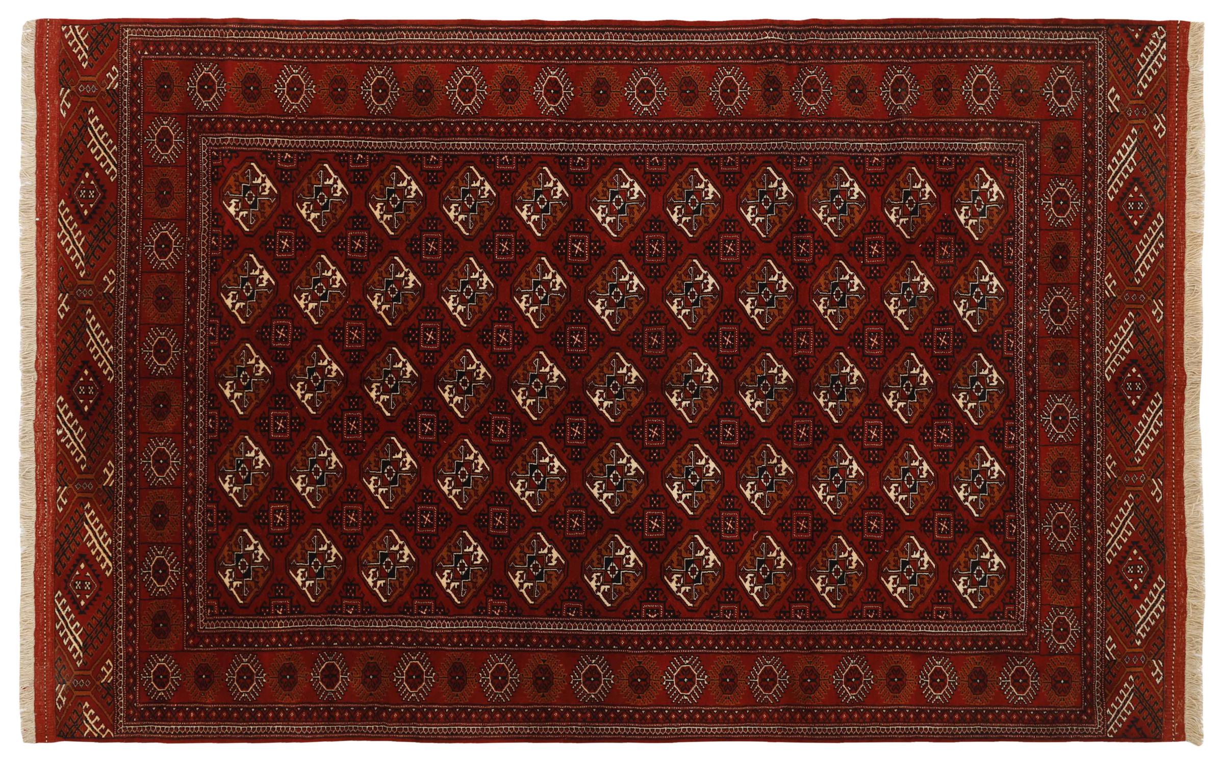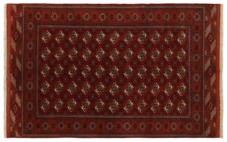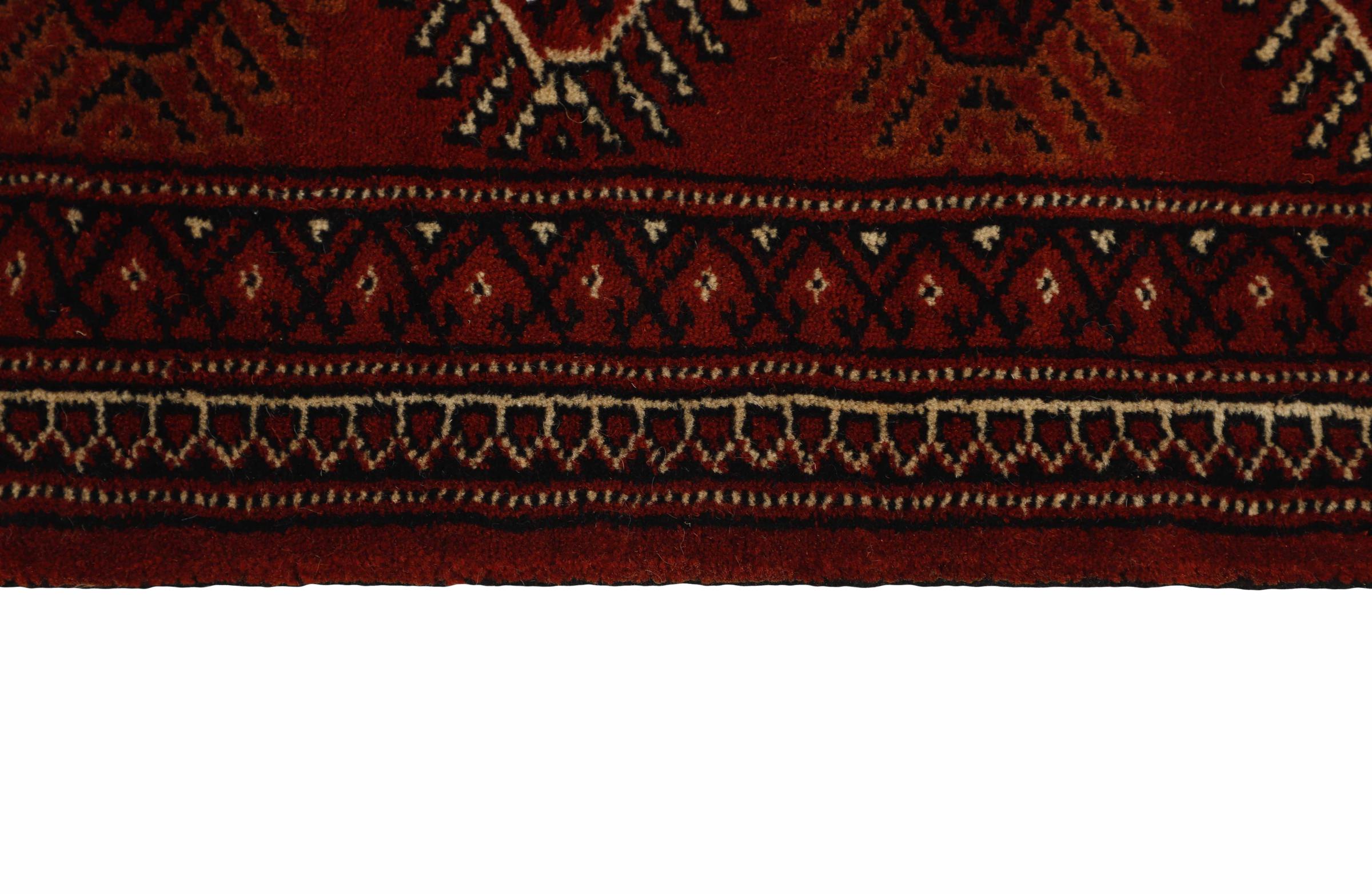 This Turkaman rug was knotted in traditional handicraft and convinces with its high production standard and the high-quality sheep's wool with high fat content. Its dark, warm colours reflect the Turkmen culture and add a touch of orient and cosiness to your home. Pakistani carpets often resemble this type of carpet, but often fail to match its quality.