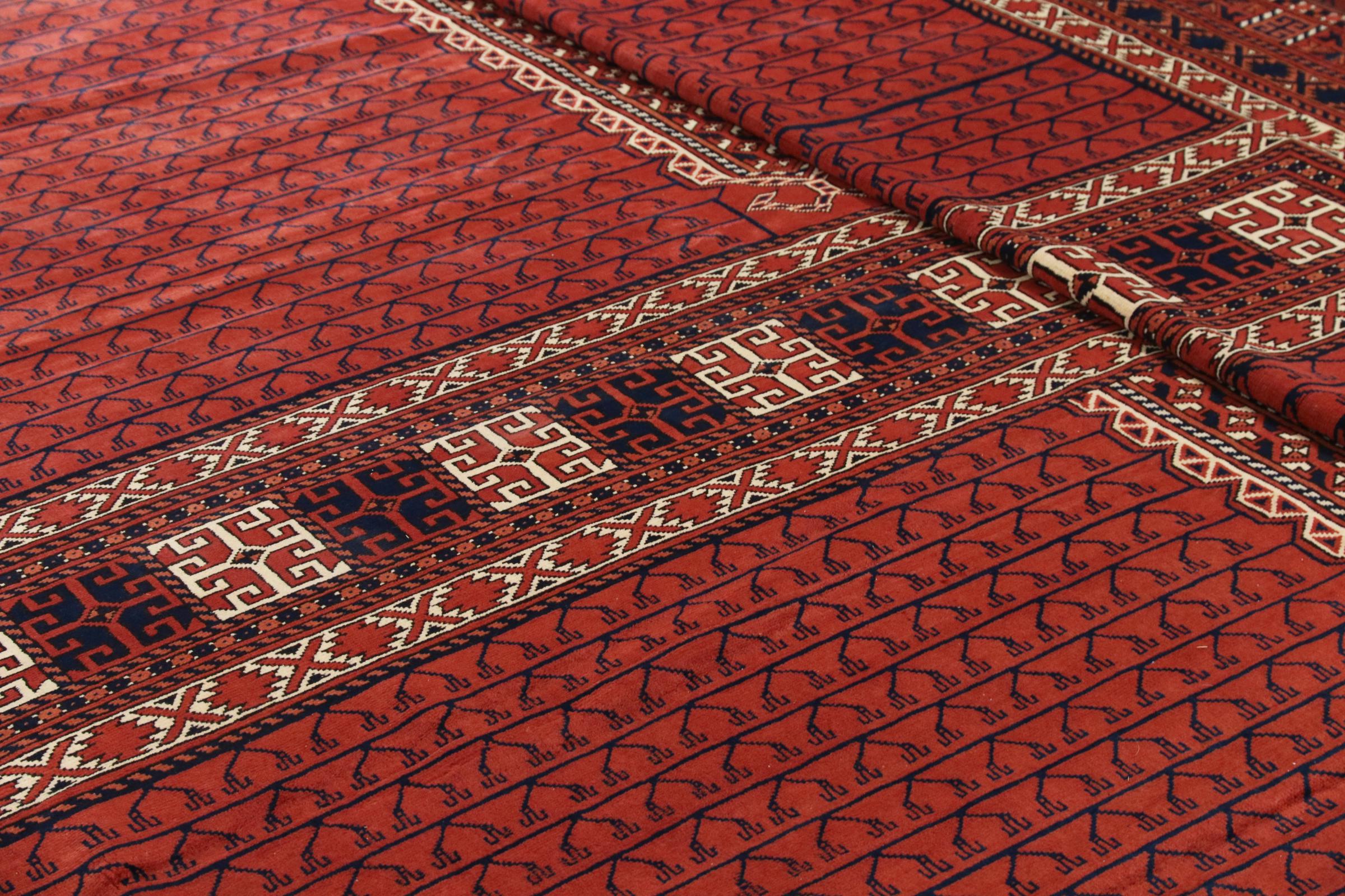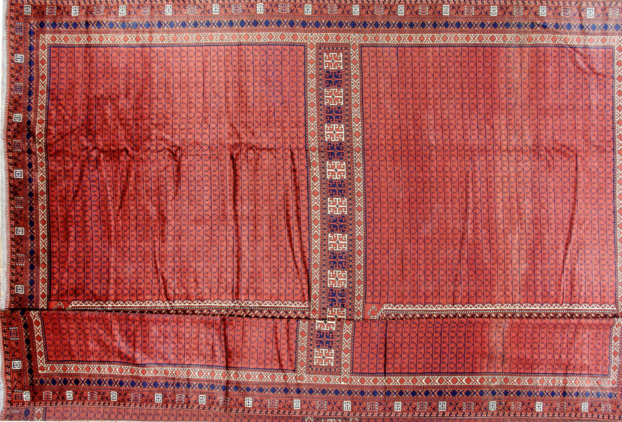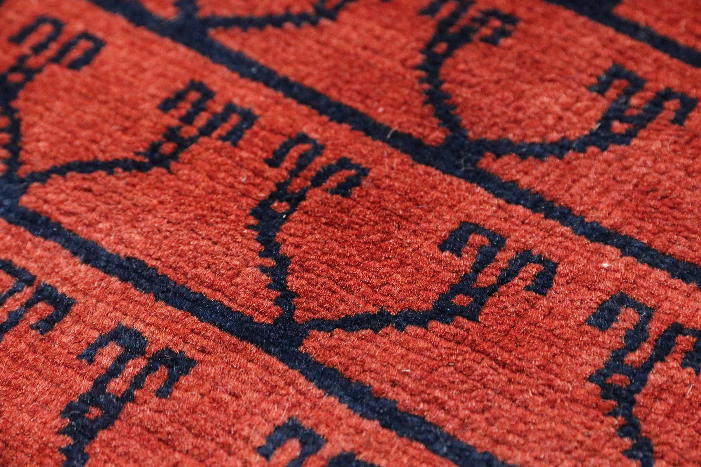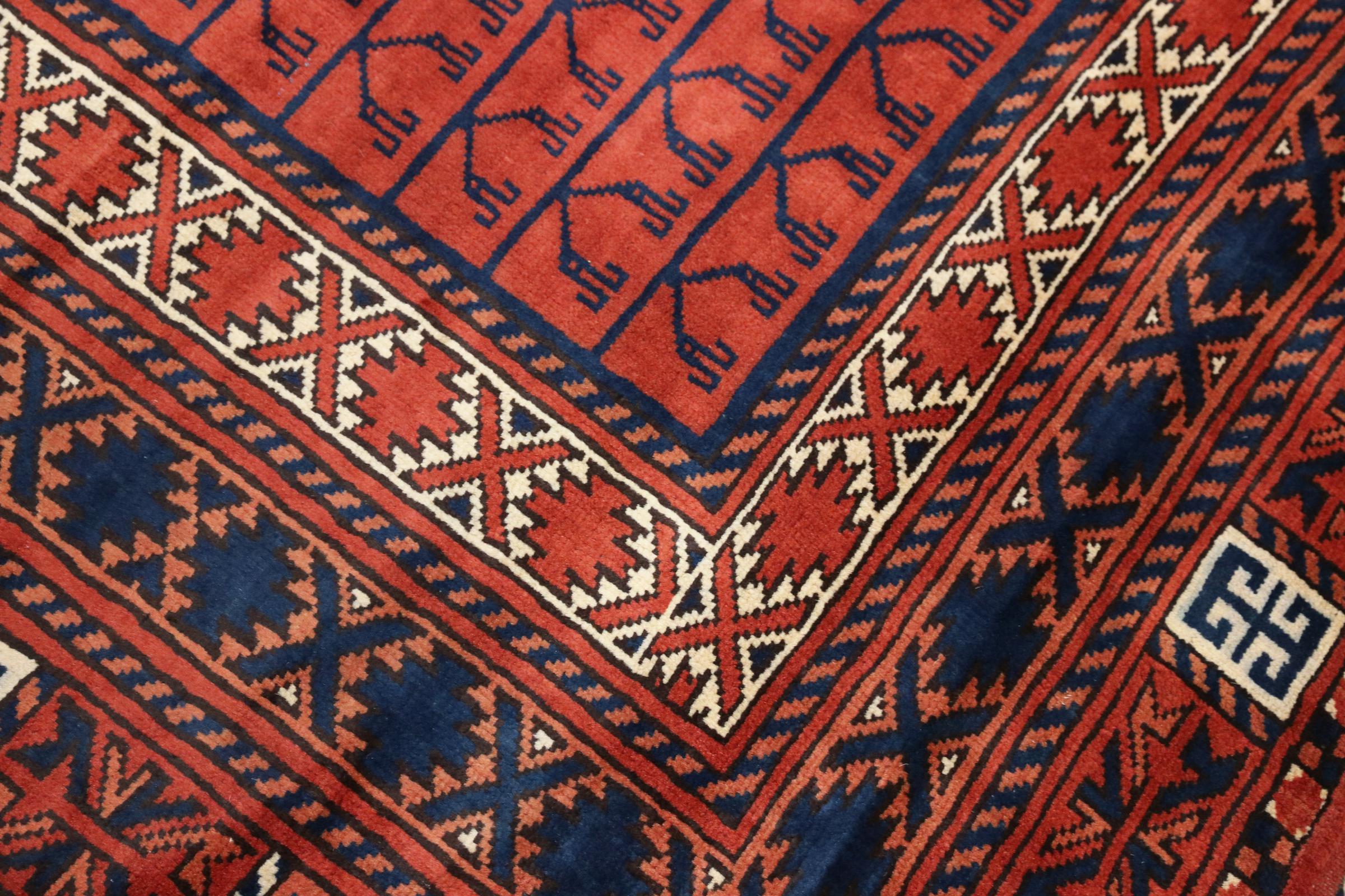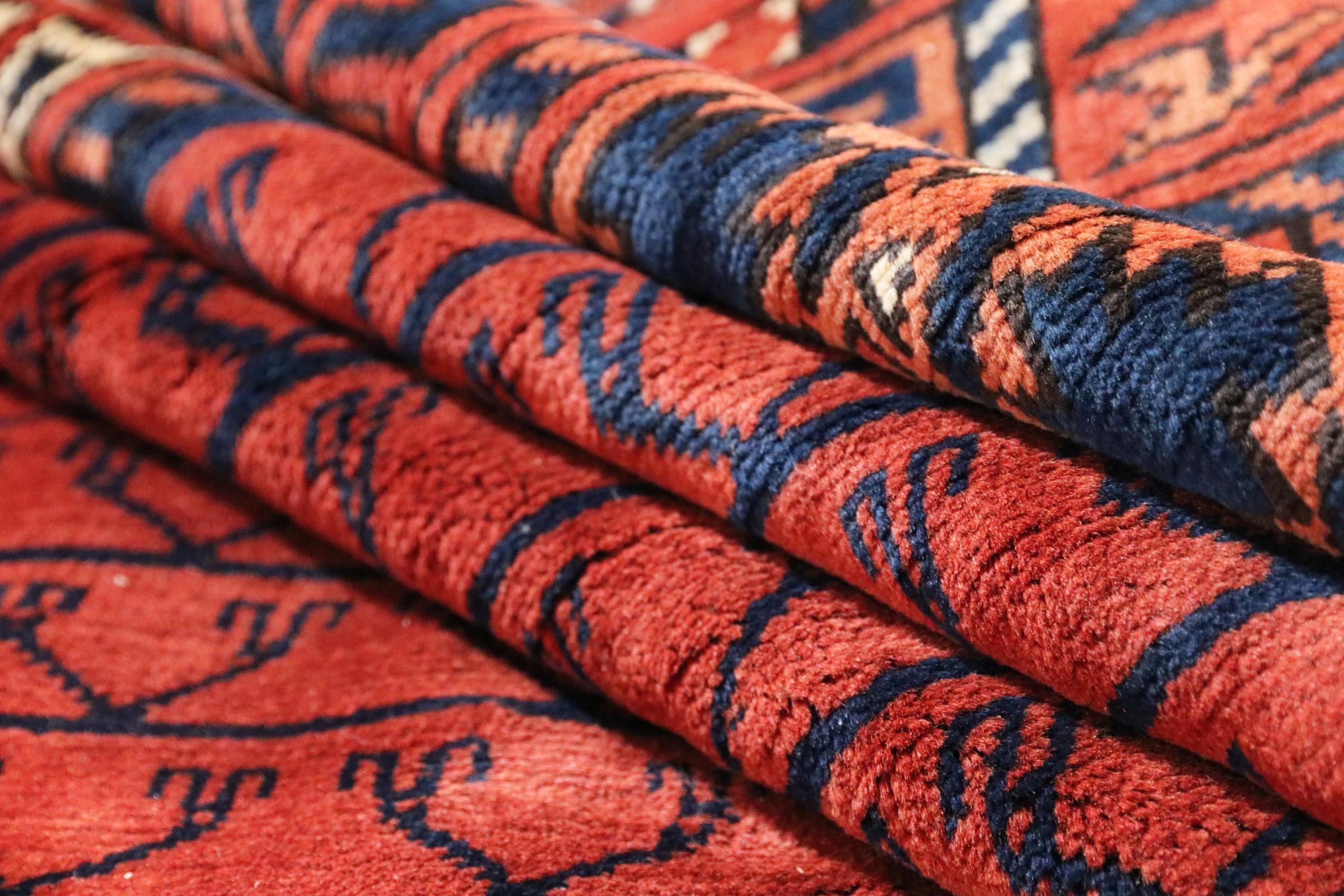 This Turkaman rug was knotted in traditional handicraft and convinces with its high production standard and the high-quality sheep's wool with high fat content. Its dark, warm colours reflect the Turkmen culture and add a touch of orient and cosiness to your home. Pakistani carpets often resemble this type of carpet, but often fail to match its quality.