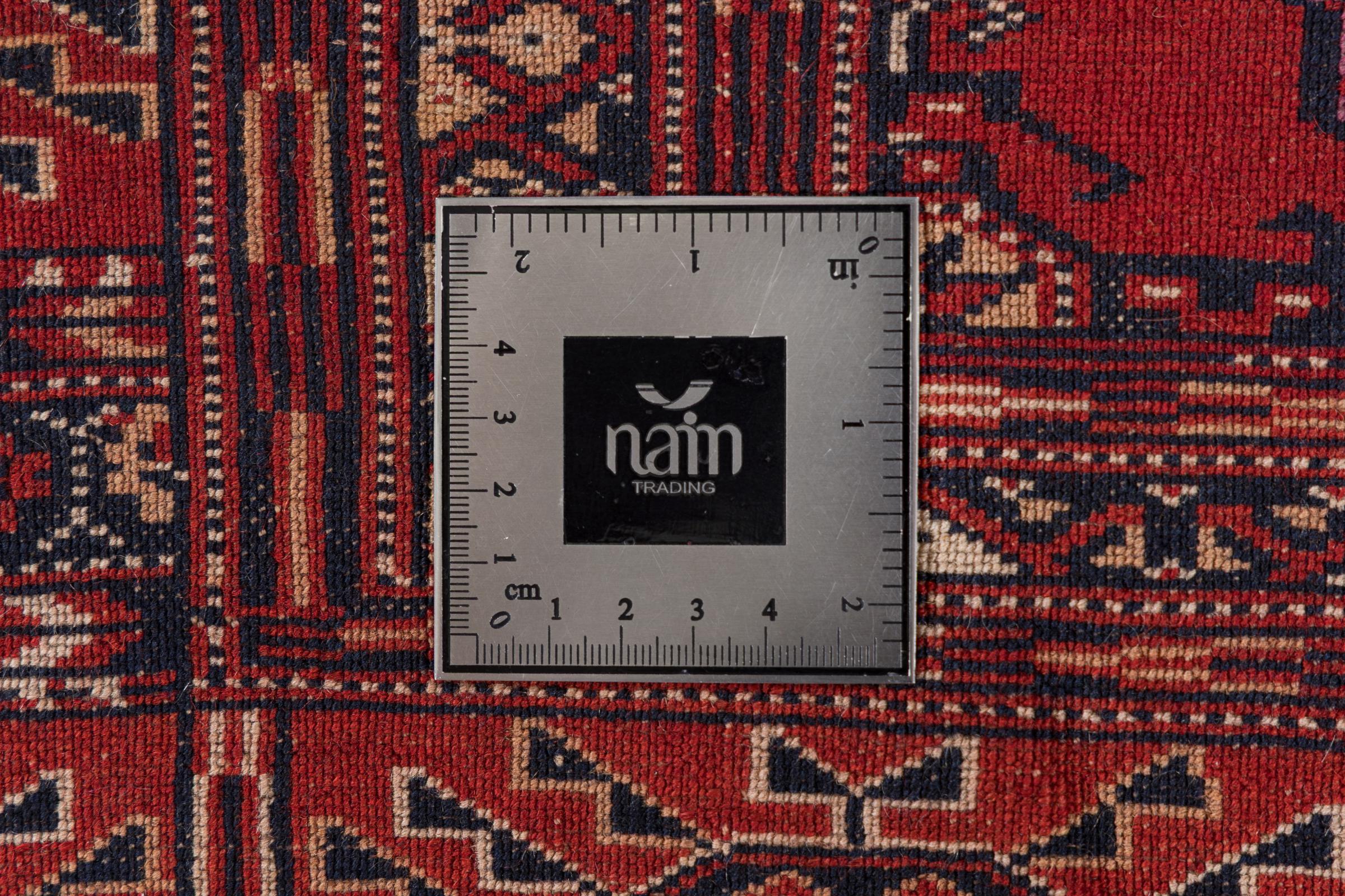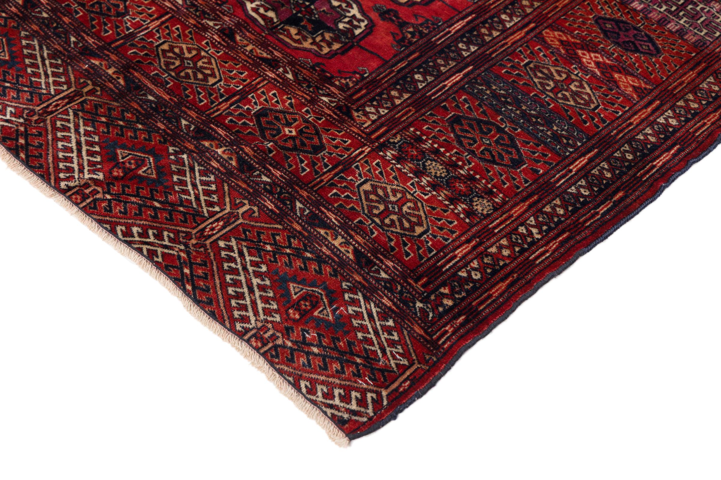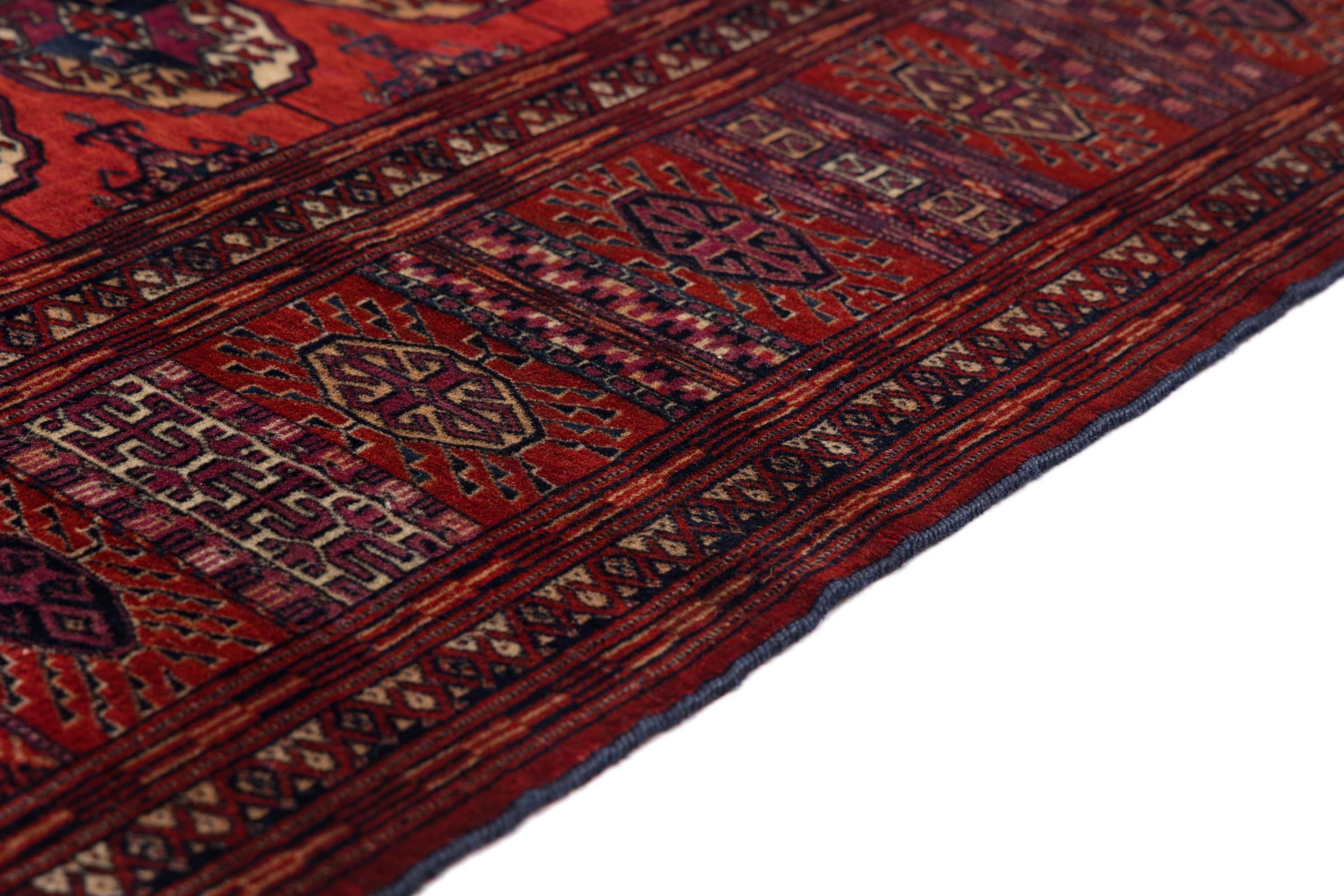 This Turkaman rug was knotted in traditional handicraft and convinces with its high production standard and the high-quality sheep's wool with high fat content. Its dark, warm colours reflect the Turkmen culture and add a touch of orient and cosiness to your home. Pakistani carpets often resemble this type of carpet, but often fail to match its quality.