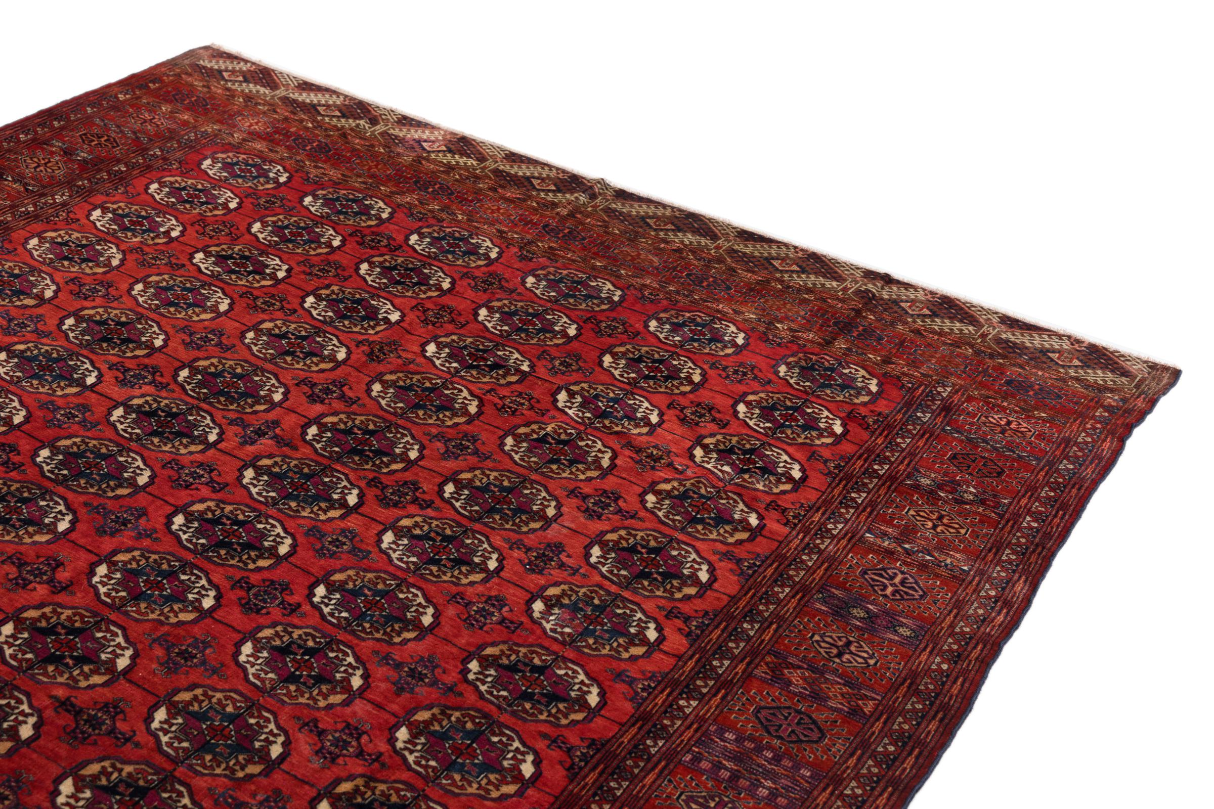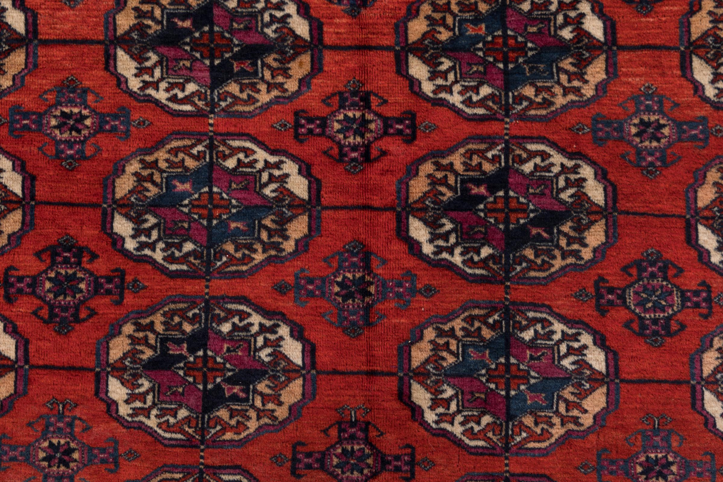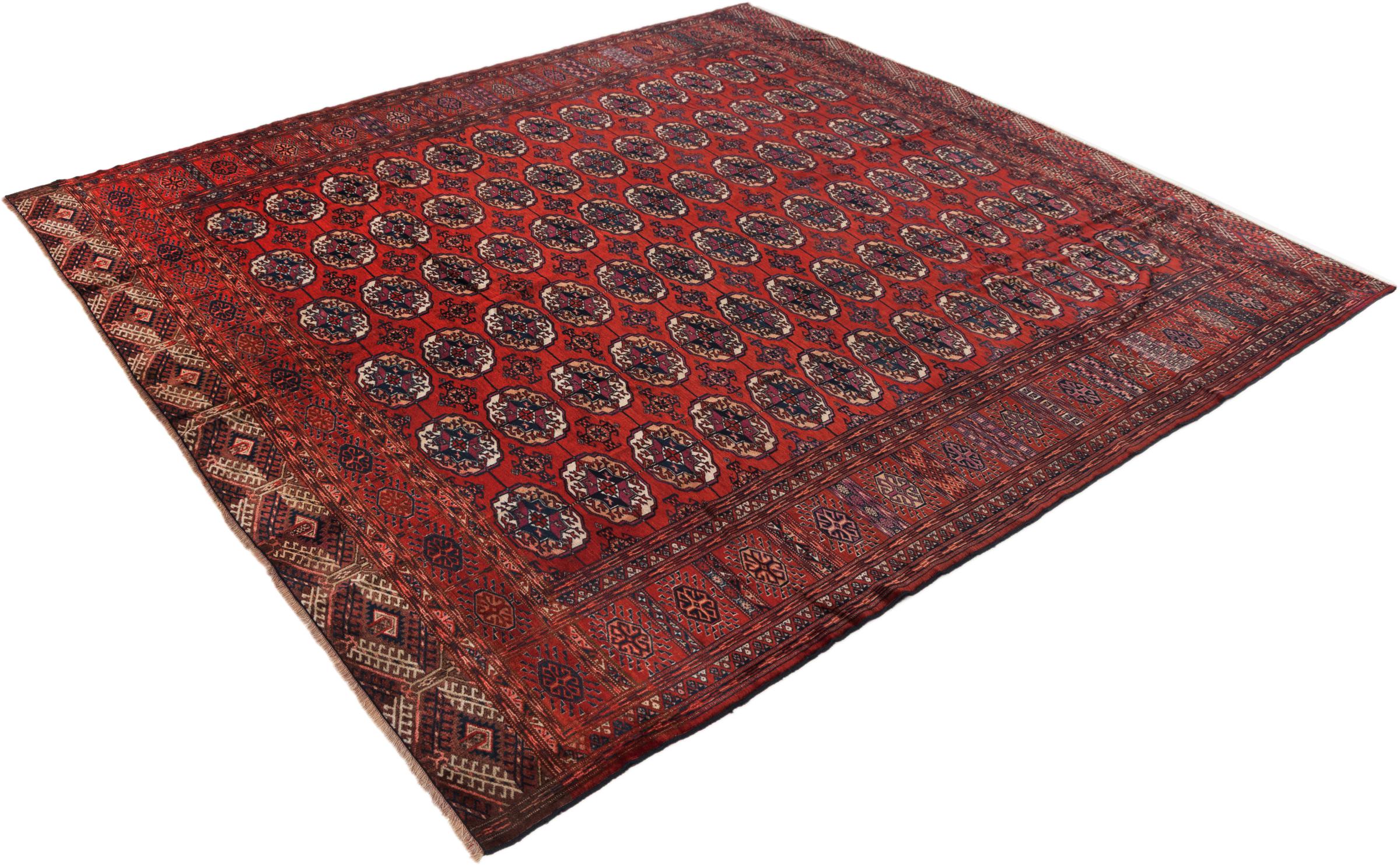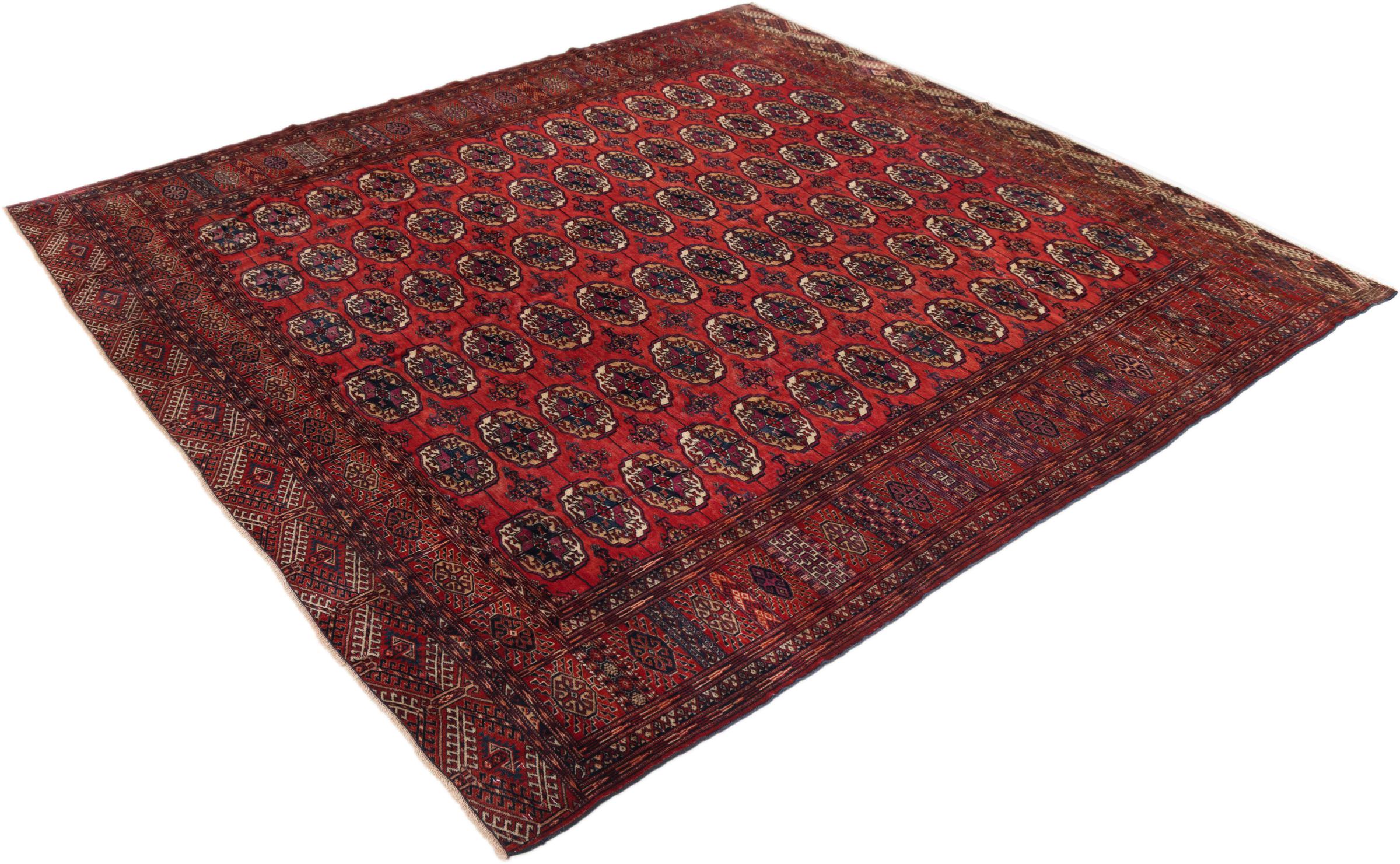 This Turkaman rug was knotted in traditional handicraft and convinces with its high production standard and the high-quality sheep's wool with high fat content. Its dark, warm colours reflect the Turkmen culture and add a touch of orient and cosiness to your home. Pakistani carpets often resemble this type of carpet, but often fail to match its quality.