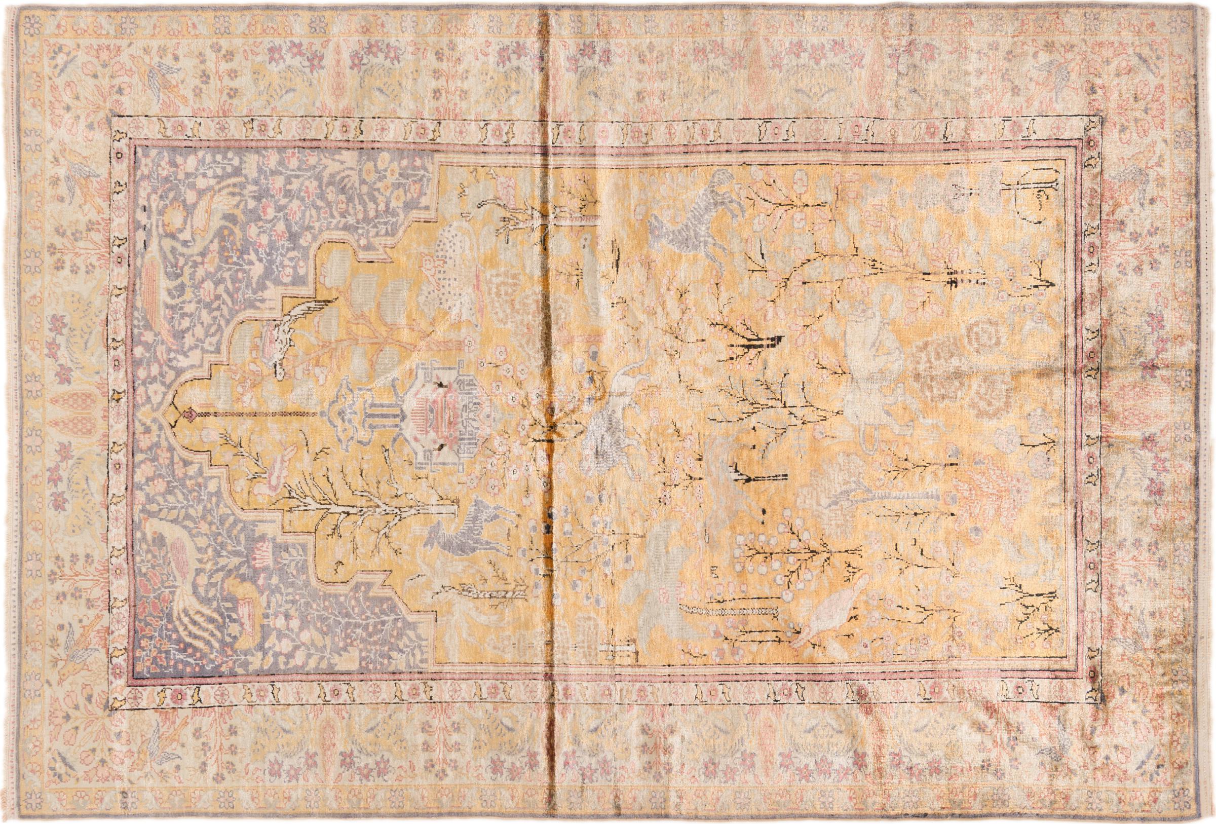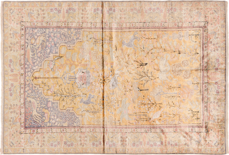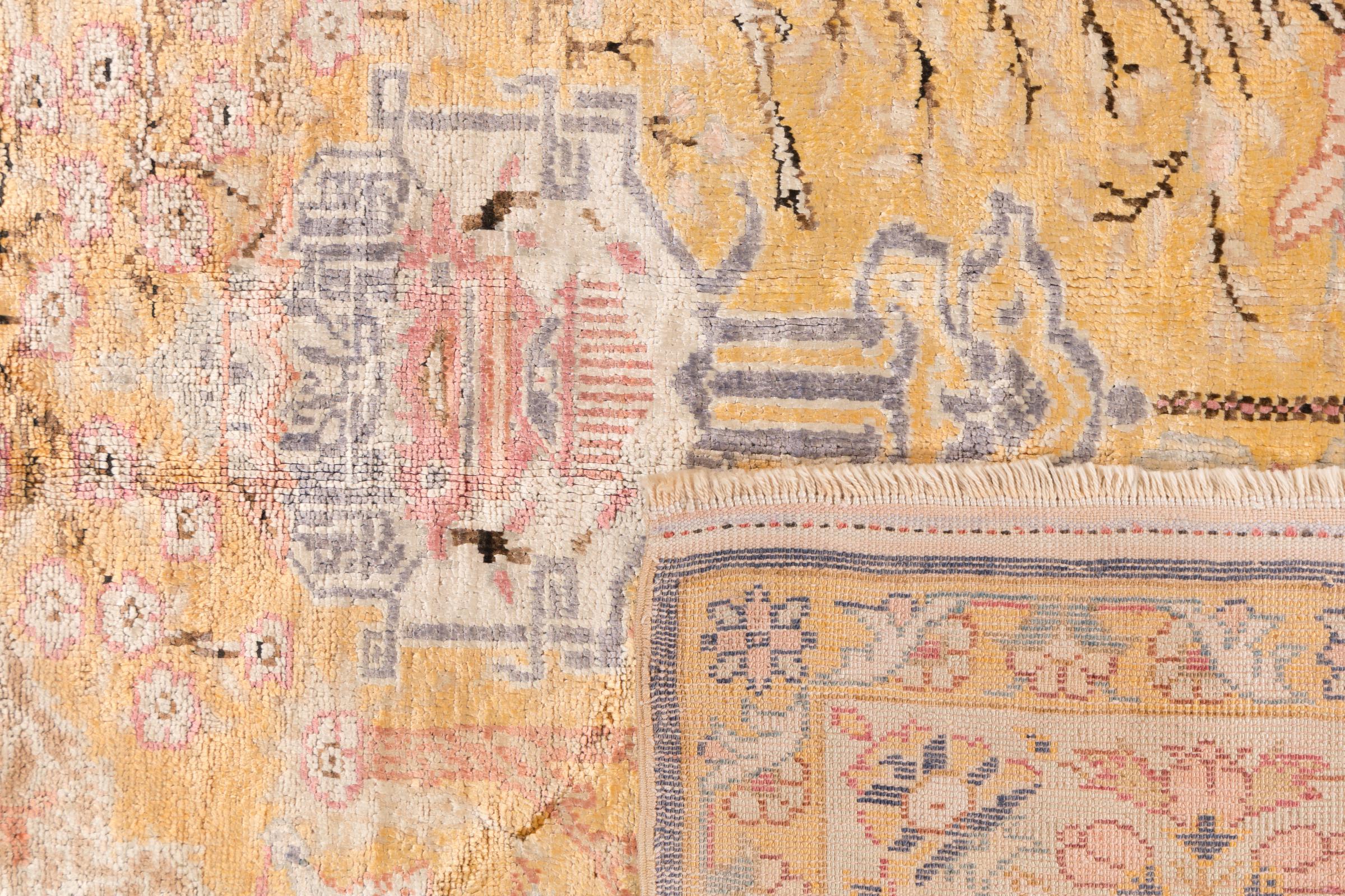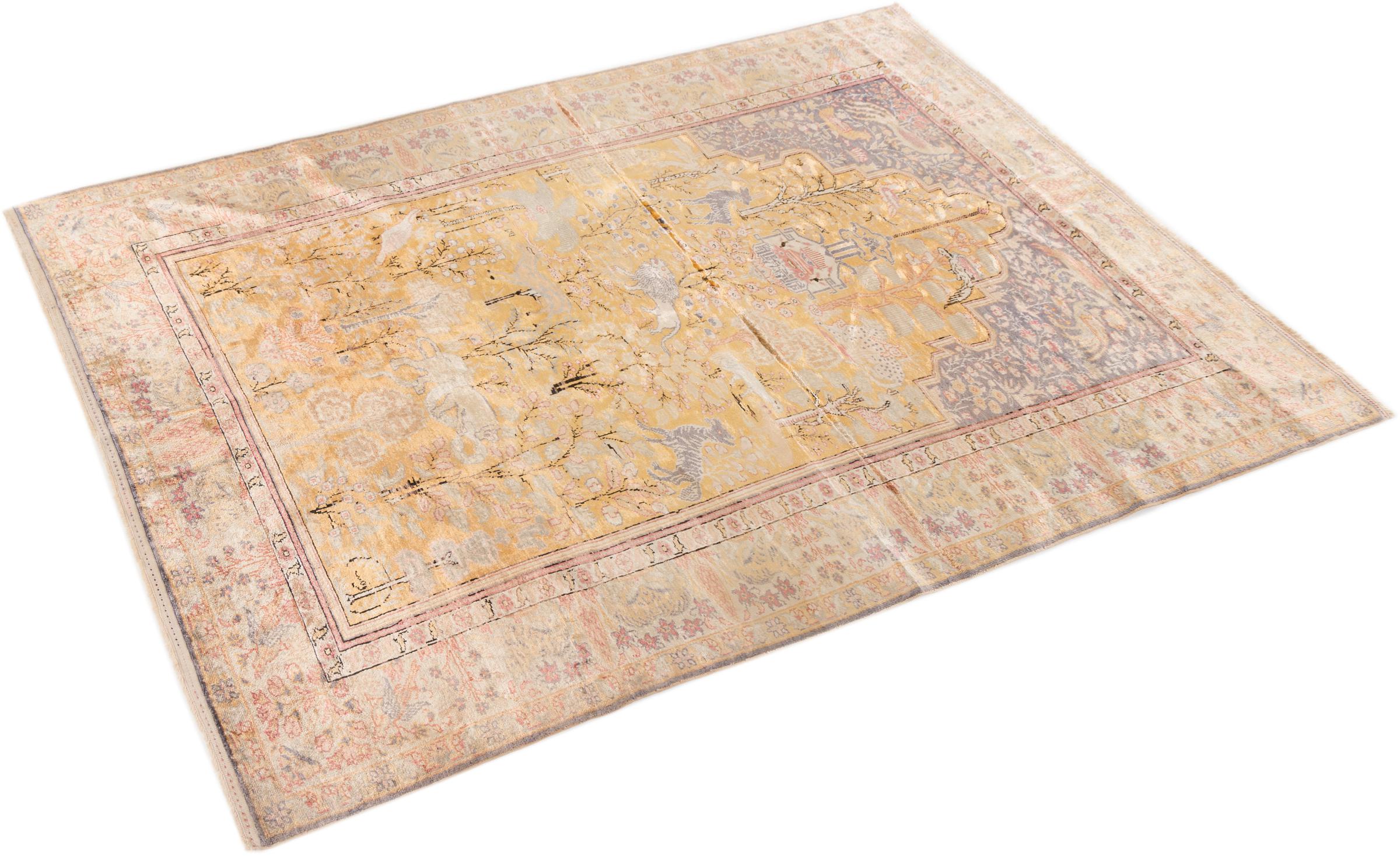 Carpet ID: 298792009035 Size: 175x121 cm Thickness: ap. 5 mm Knot density: 1 000 000 / m² Manufacturing: Knotted by hand Pile: Silk Warp: Silk Condition / Conservation Perfect Origin: Turkey Age: Antique, over 80 years Weight: ap. 7 kg In stock: Unique - Only 1 in stock