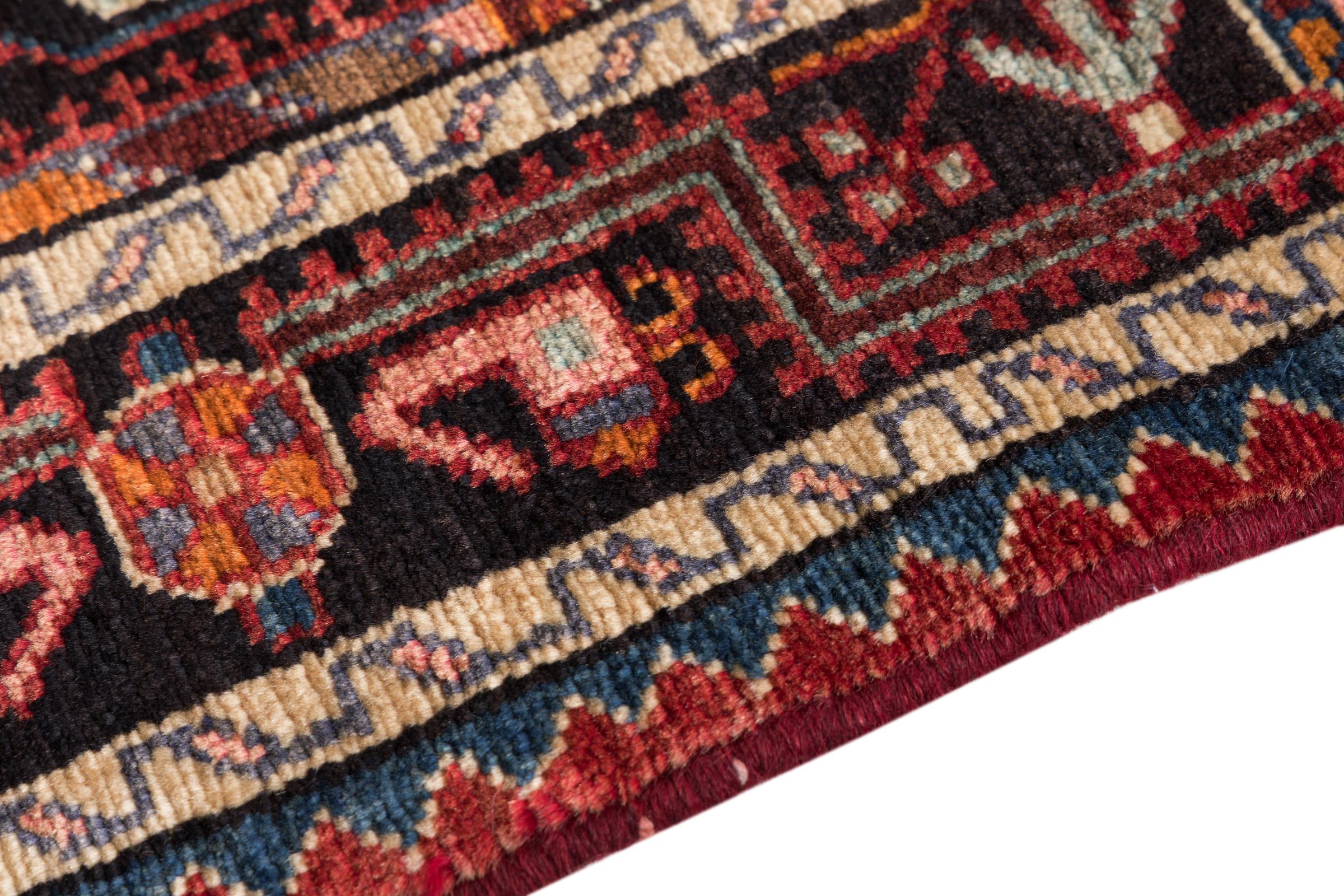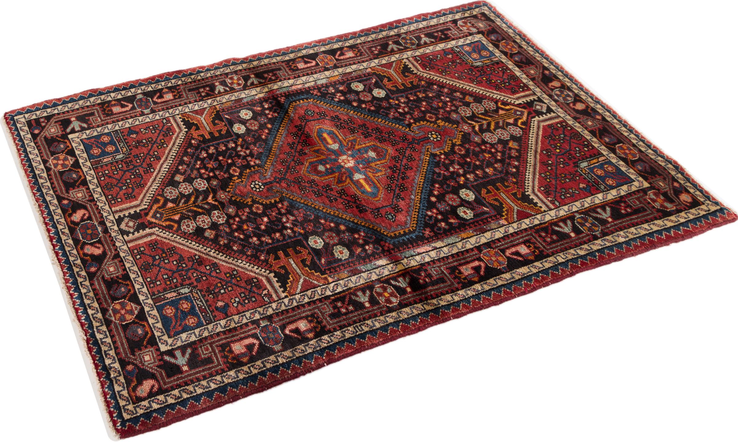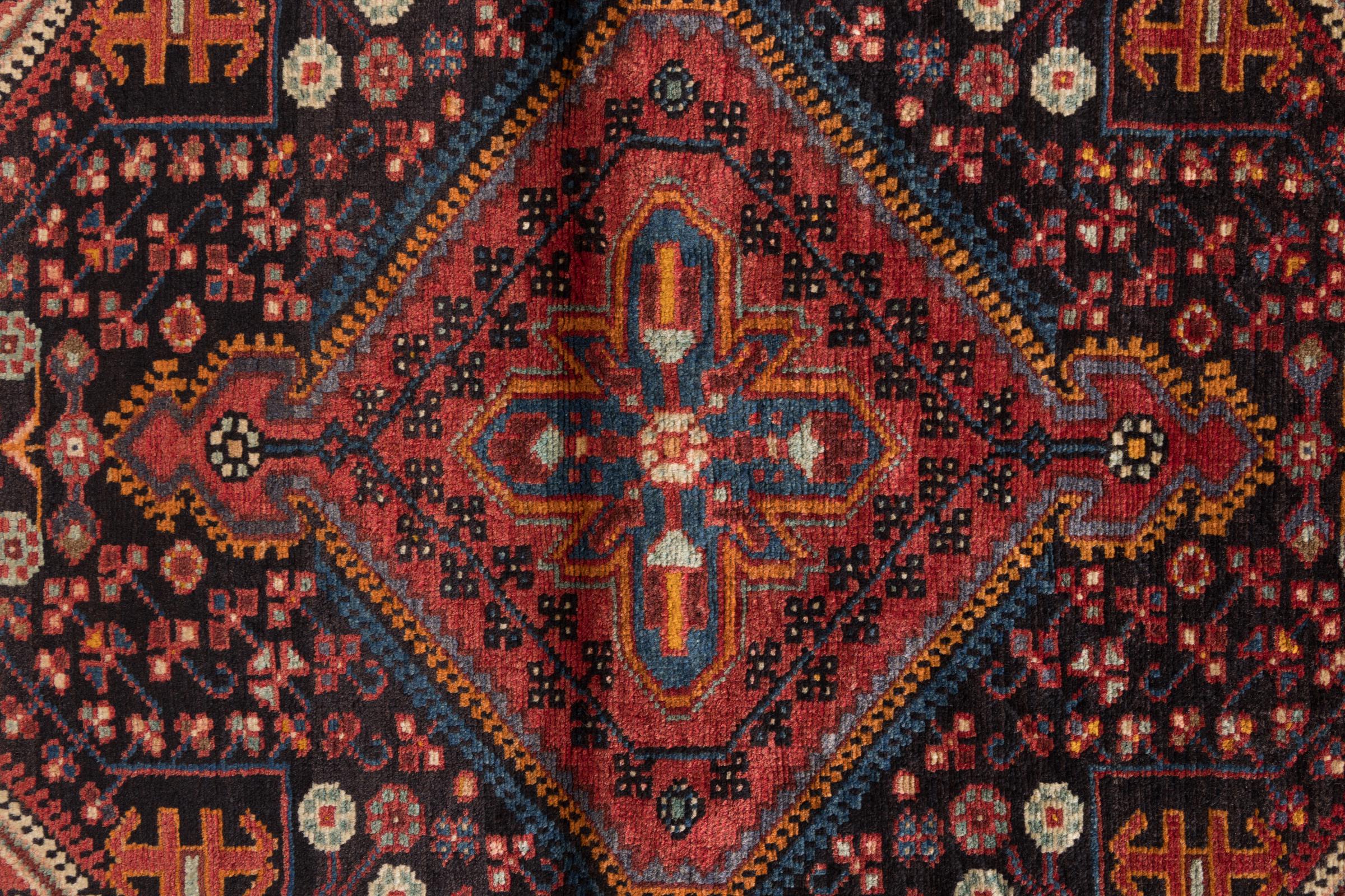 This rug belongs to village and nomadic rugs from Iran, formerly Persia. This type of rug is knotted by hand in smaller towns and villages in old tradition. Even nomads still knot Persian rugs in the open air. The rugs are knotted without a draft and completely from the mind. They are characterized by classical ornaments, which are arranged in straight and geometrical patterns. Thanks to their cultural-traditional origin, these rugs have a unique character that embodies ancient Persia.
