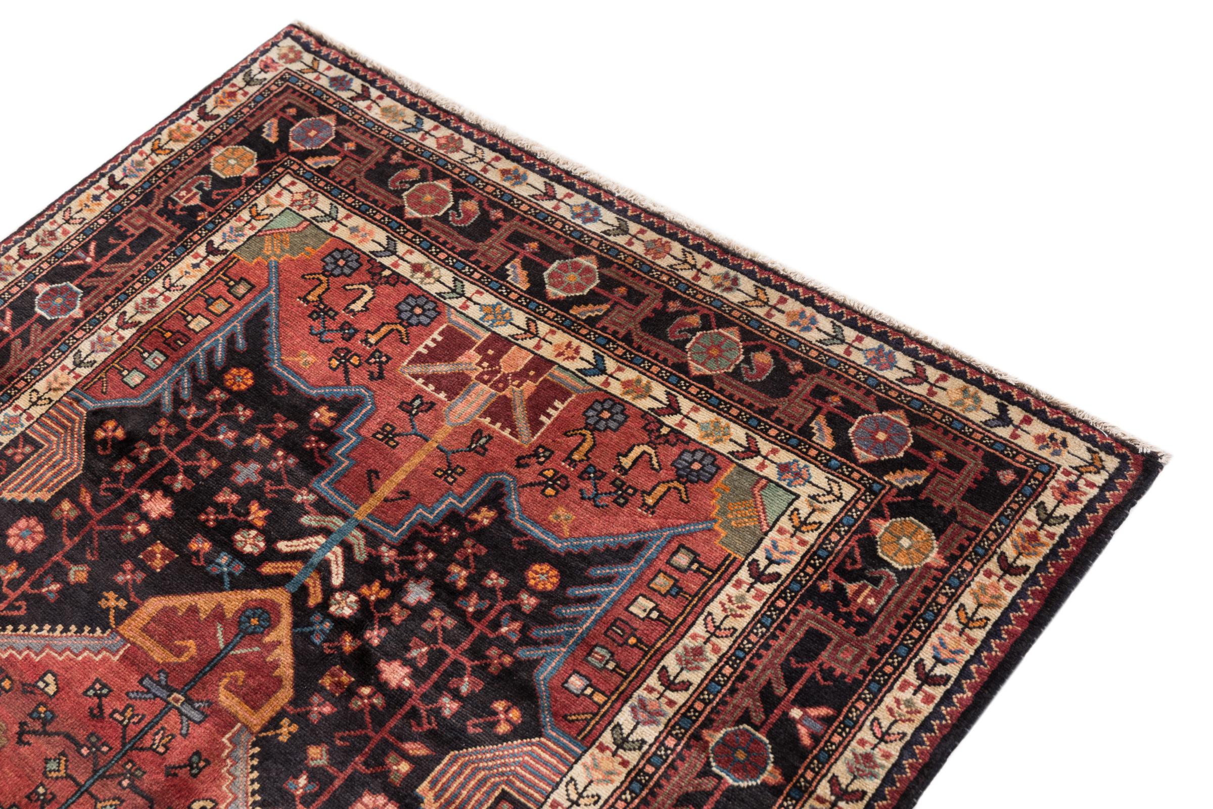 This rug belongs to village and nomadic rugs from Iran, formerly Persia. This type of rug is knotted by hand in smaller towns and villages in old tradition. Even nomads still knot Persian rugs in the open air. The rugs are knotted without a draft and completely from the mind. They are characterized by classical ornaments, which are arranged in straight and geometrical patterns. Thanks to their cultural-traditional origin, these rugs have a unique character that embodies ancient Persia.