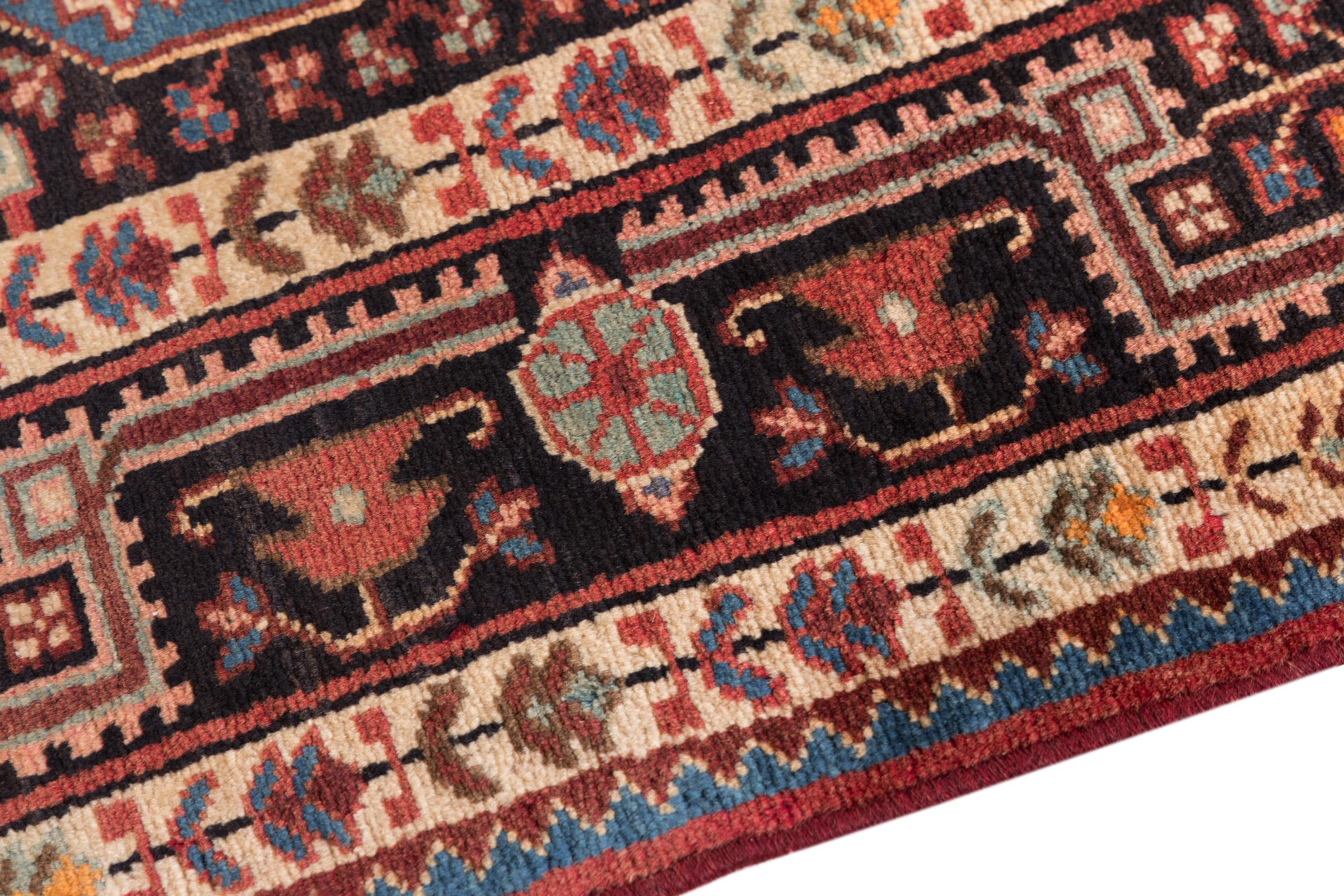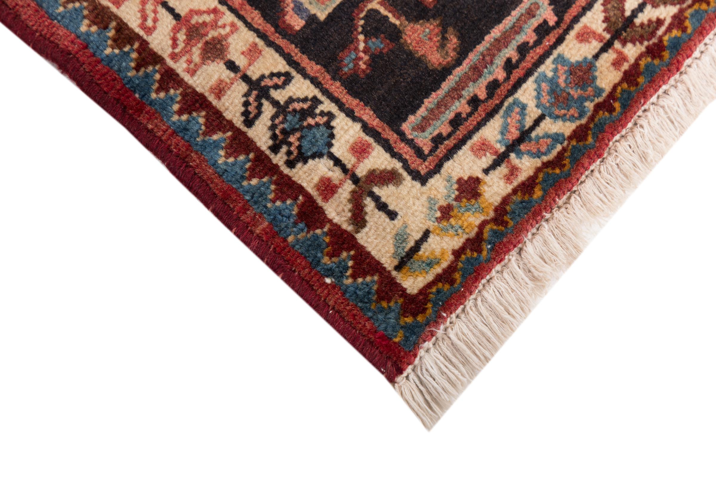 This rug belongs to village and nomadic rugs from Iran, formerly Persia. This type of rug is knotted by hand in smaller towns and villages in old tradition. Even nomads still knot Persian rugs in the open air. The rugs are knotted without a draft and completely from the mind. They are characterized by classical ornaments, which are arranged in straight and geometrical patterns. Thanks to their cultural-traditional origin, these rugs have a unique character that embodies ancient Persia.