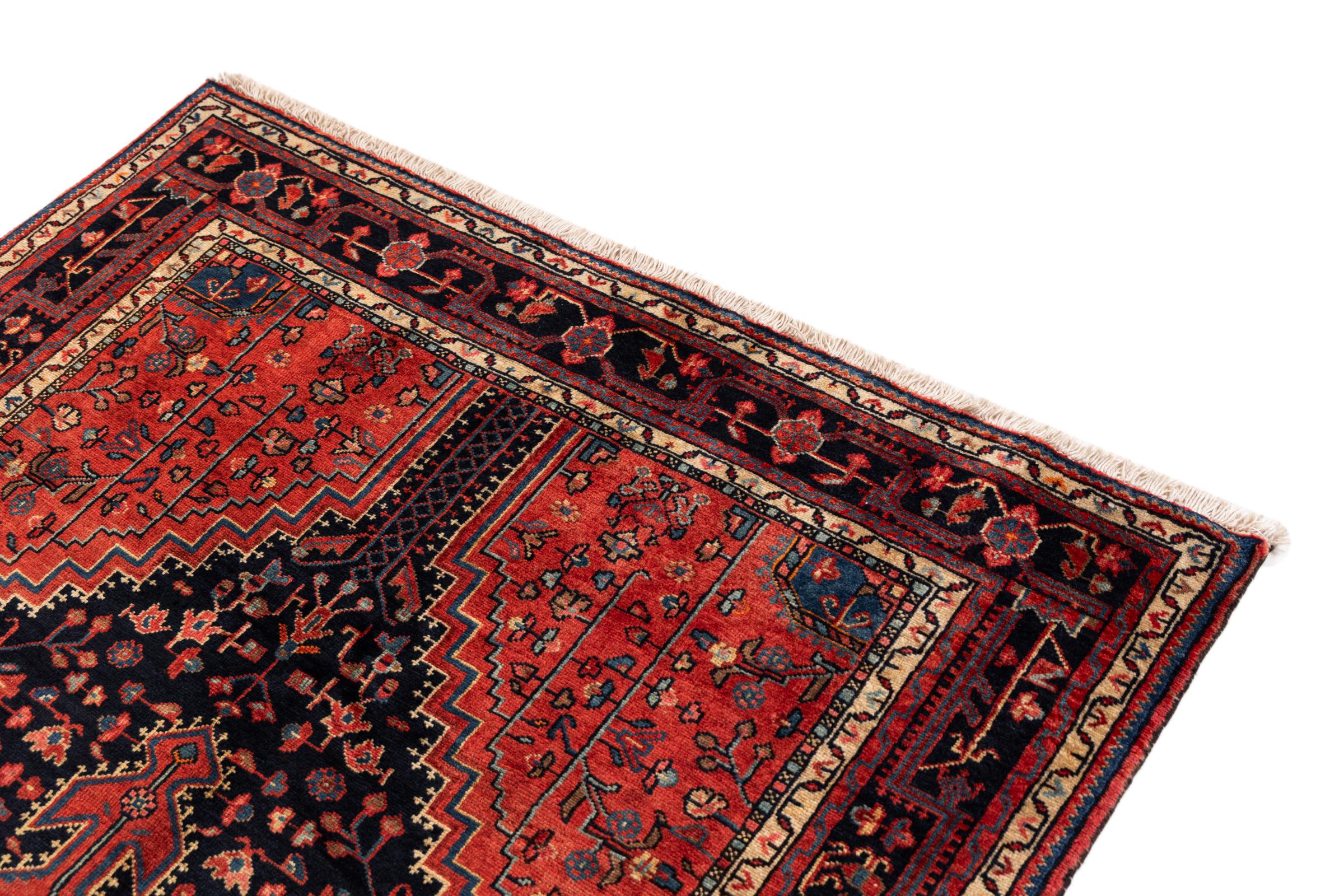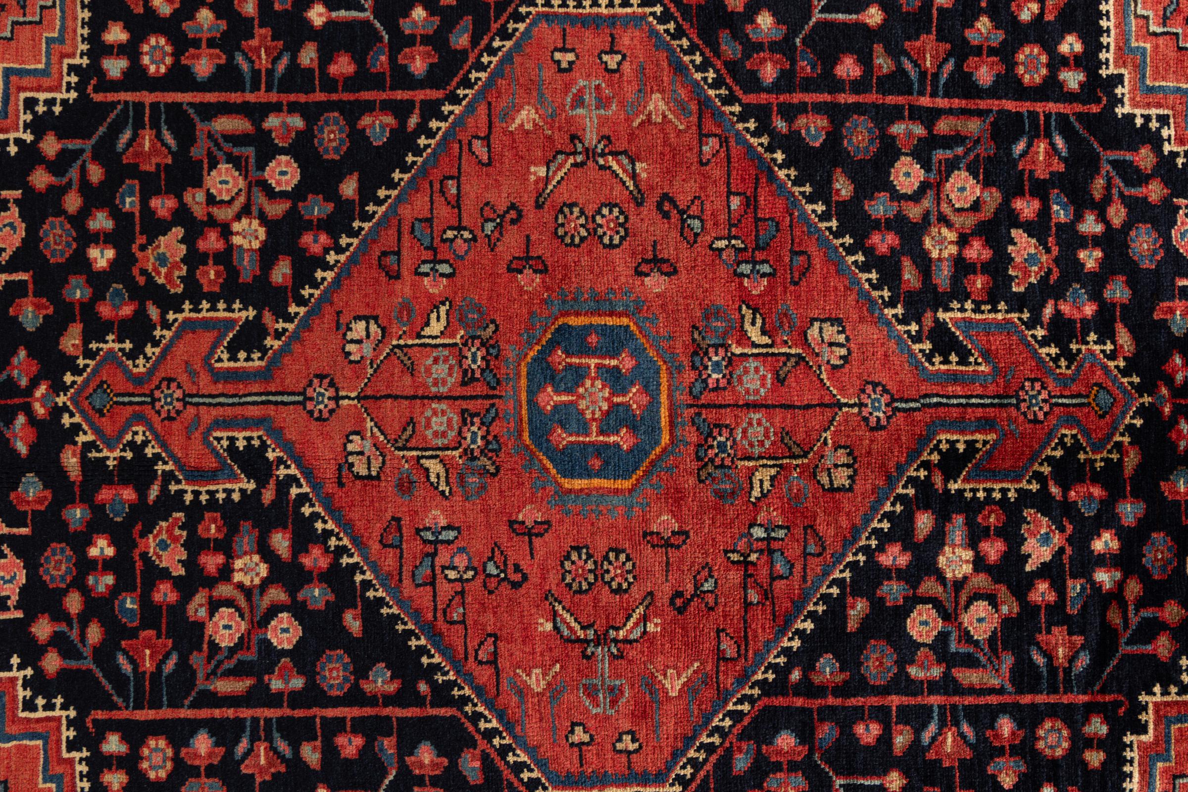 This rug belongs to village and nomadic rugs from Iran, formerly Persia. This type of rug is knotted by hand in smaller towns and villages in old tradition. Even nomads still knot Persian rugs in the open air. The rugs are knotted without a draft and completely from the mind. They are characterized by classical ornaments, which are arranged in straight and geometrical patterns. Thanks to their cultural-traditional origin, these rugs have a unique character that embodies ancient Persia.
