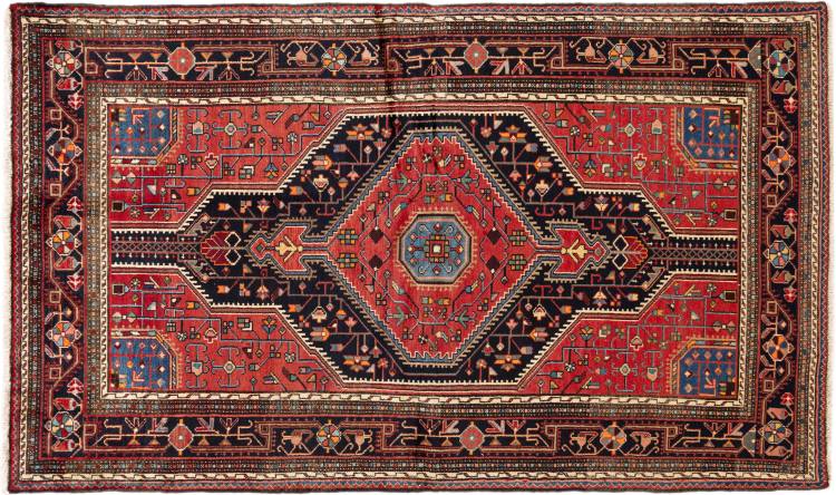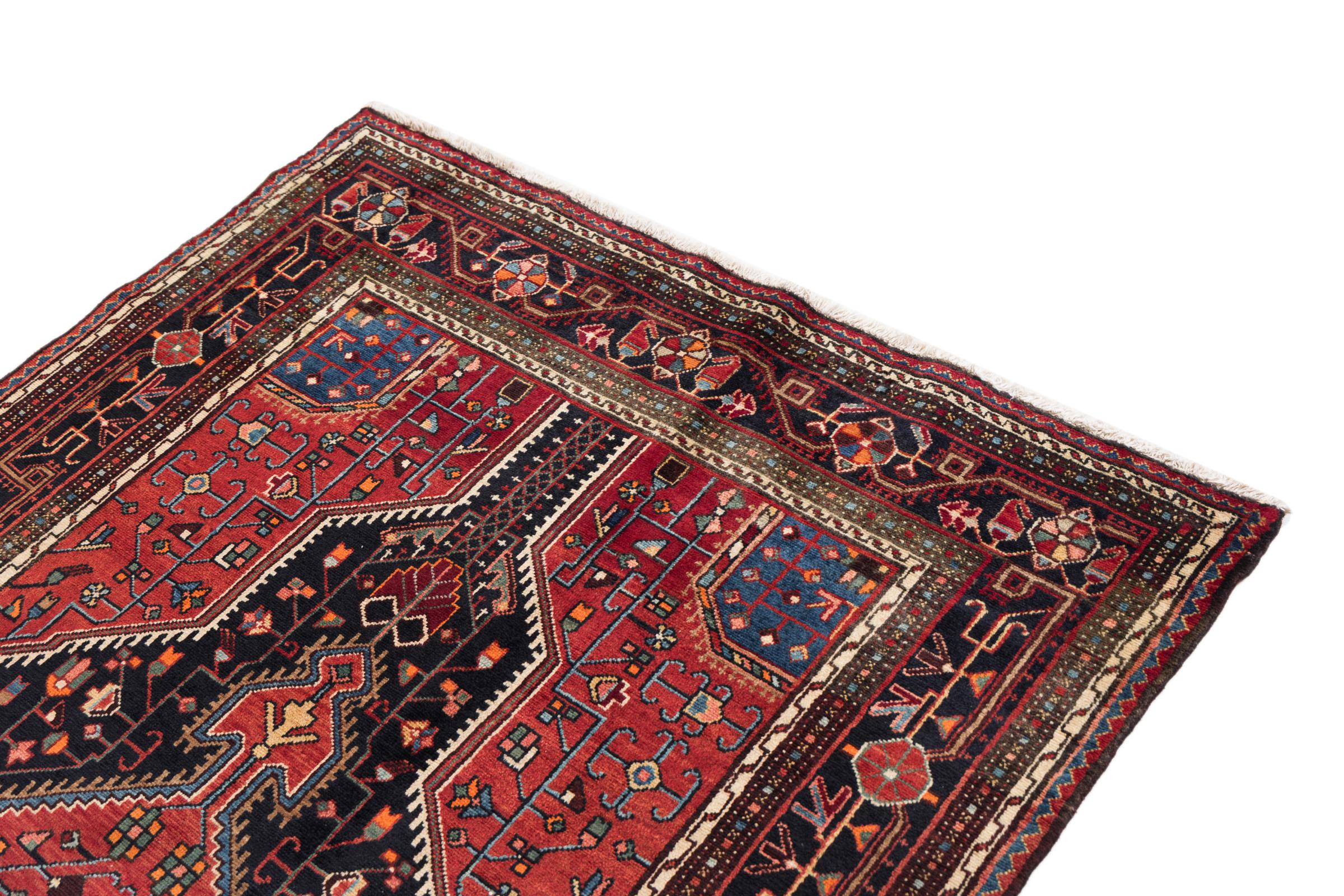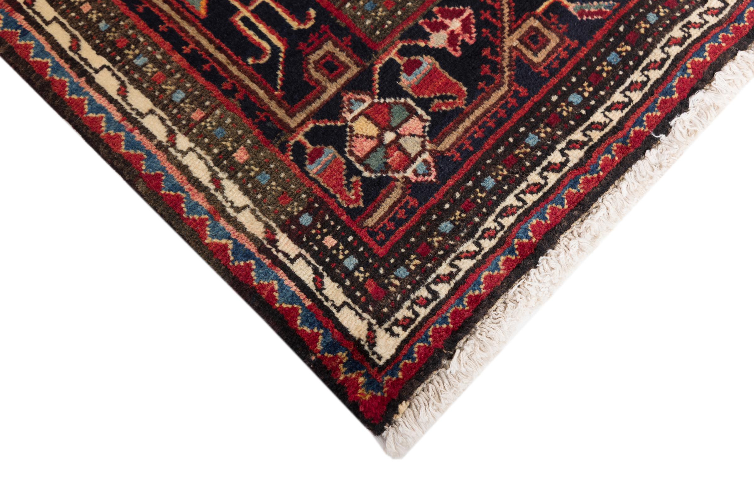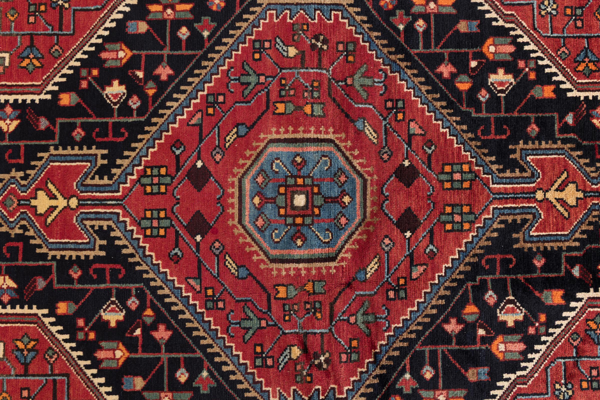 This rug belongs to village and nomadic rugs from Iran, formerly Persia. This type of rug is knotted by hand in smaller towns and villages in old tradition. Even nomads still knot Persian rugs in the open air. The rugs are knotted without a draft and completely from the mind. They are characterized by classical ornaments, which are arranged in straight and geometrical patterns. Thanks to their cultural-traditional origin, these rugs have a unique character that embodies ancient Persia.