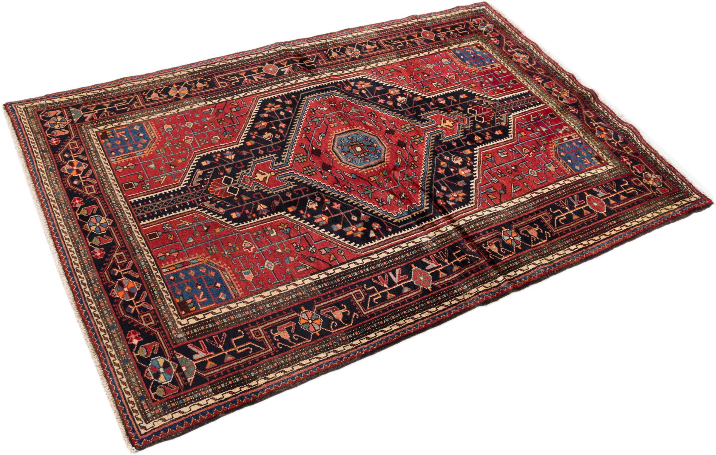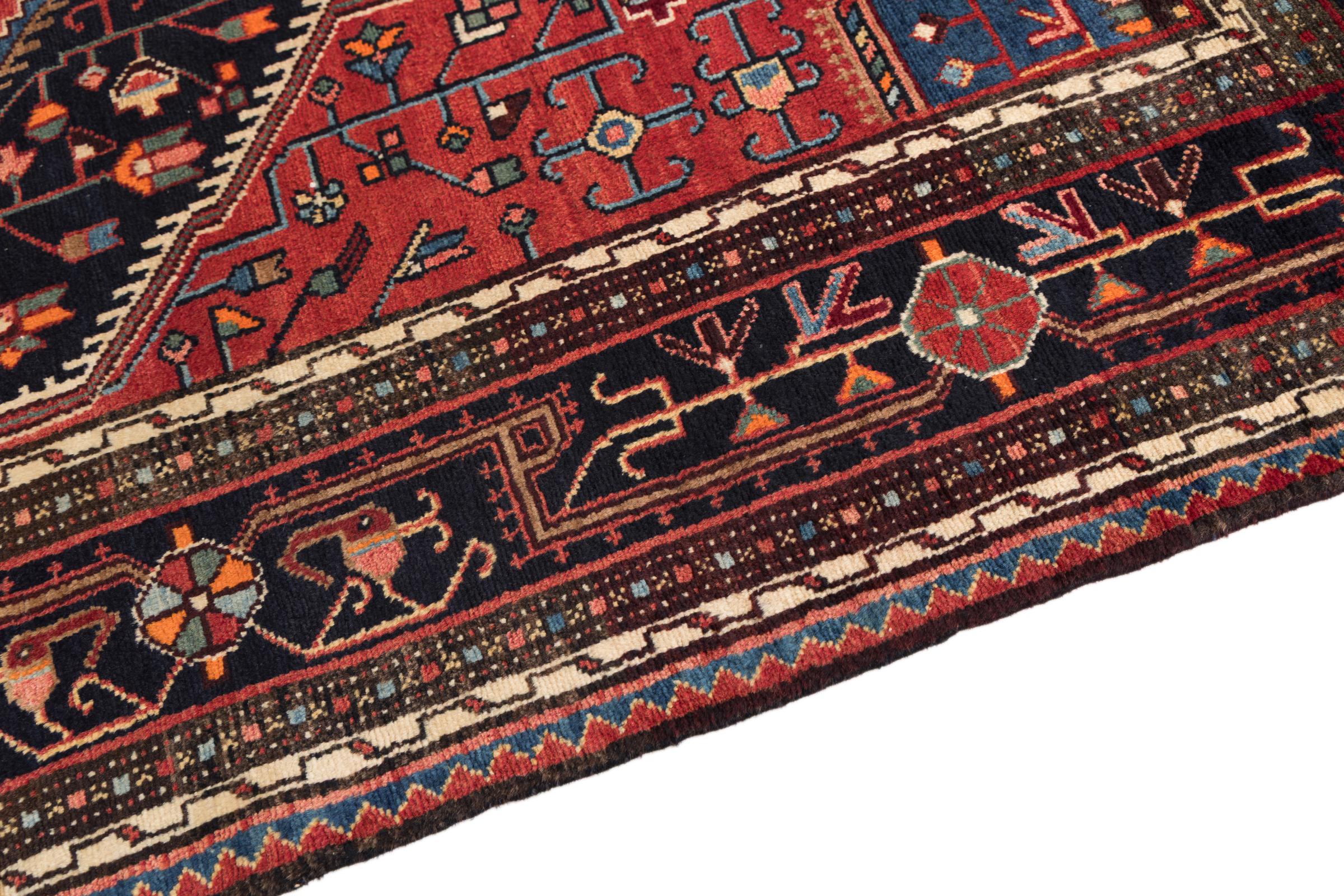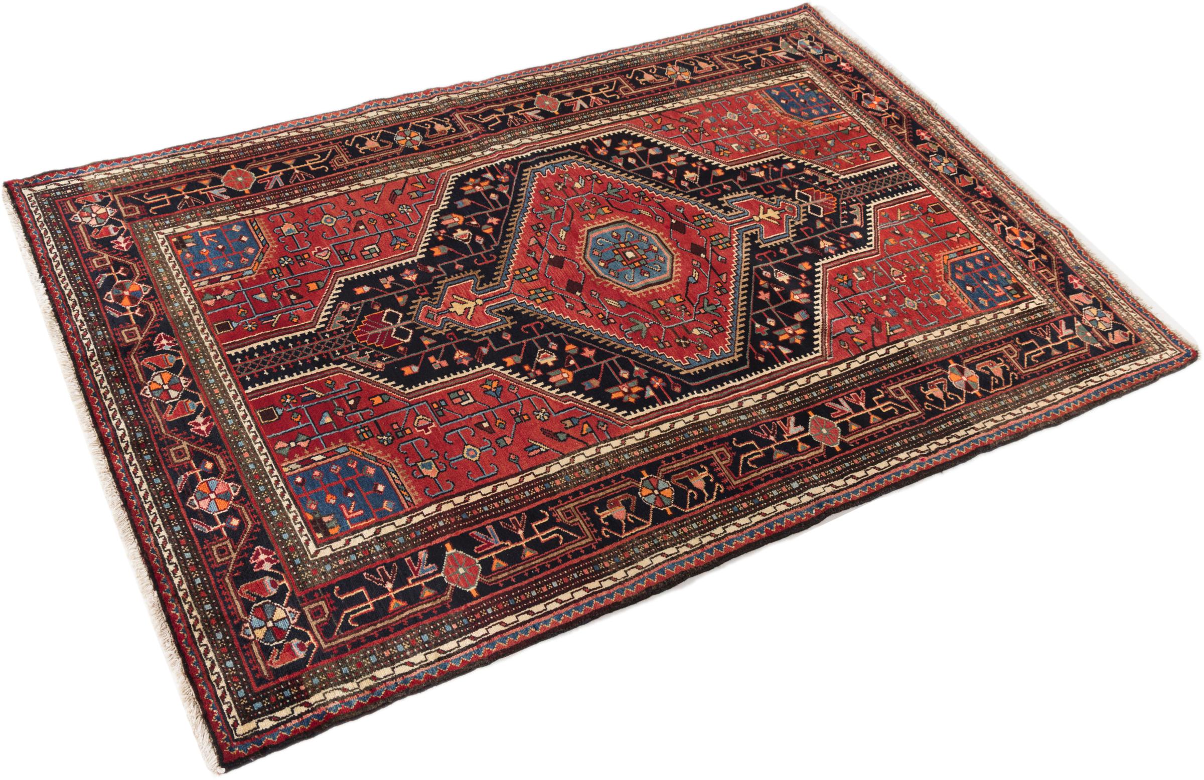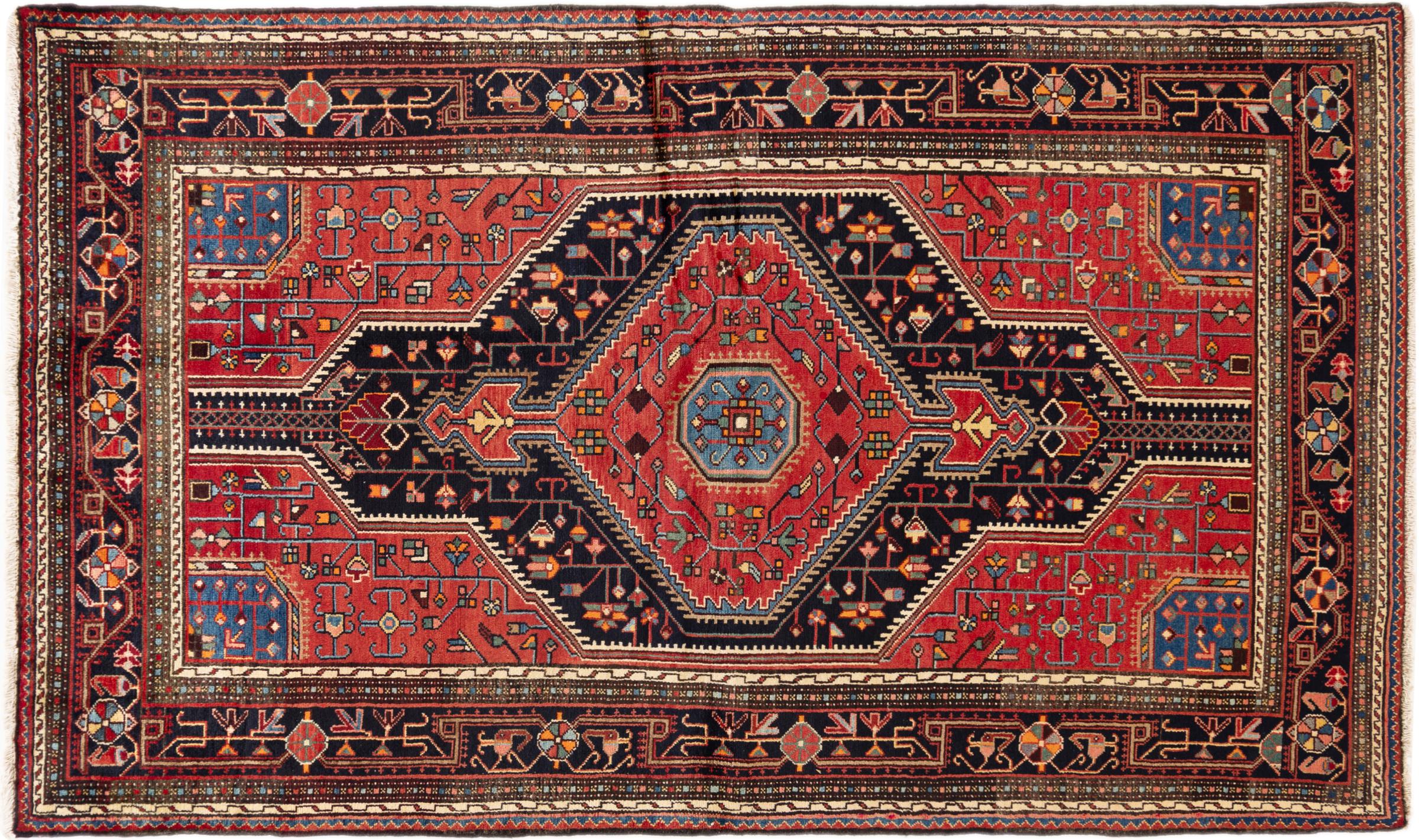 This rug belongs to village and nomadic rugs from Iran, formerly Persia. This type of rug is knotted by hand in smaller towns and villages in old tradition. Even nomads still knot Persian rugs in the open air. The rugs are knotted without a draft and completely from the mind. They are characterized by classical ornaments, which are arranged in straight and geometrical patterns. Thanks to their cultural-traditional origin, these rugs have a unique character that embodies ancient Persia.