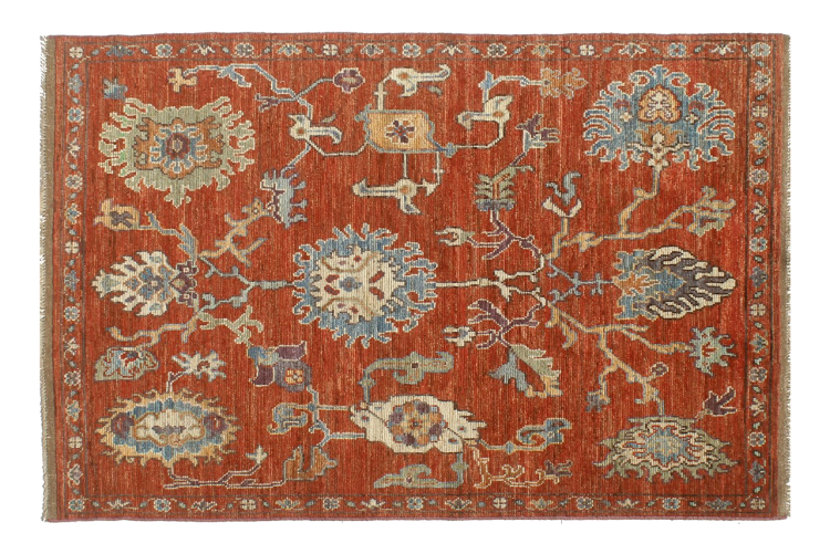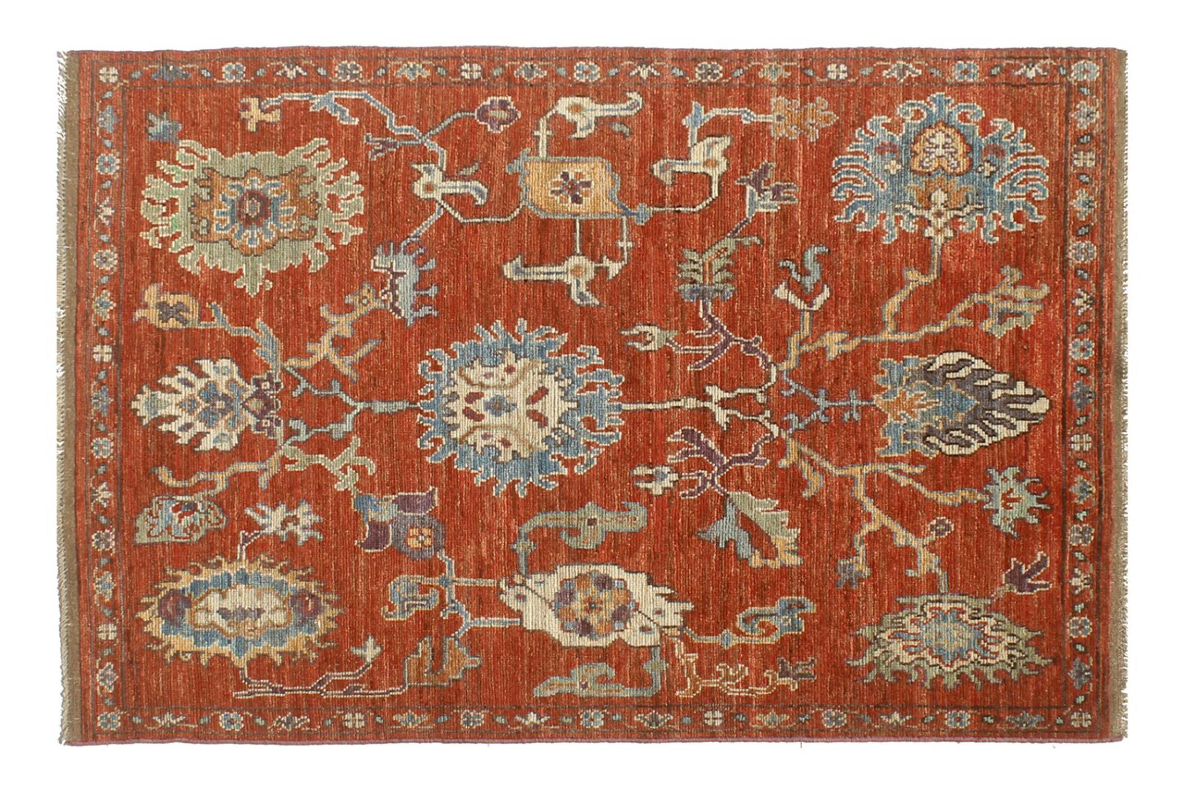 Carpet ID: 282784002690073 Size: 231x151 cm Thickness: ap. 6 mm Knot density: 120 000 - 150 000 / m² Manufacturing: Knotted by hand Pile: Handspun wool Warp: Cotton Origin: Afghanistan Age: New Weight: ap. 12 kg Also know as Ushak, Oushak In stock: Unique - Only 1 in stock