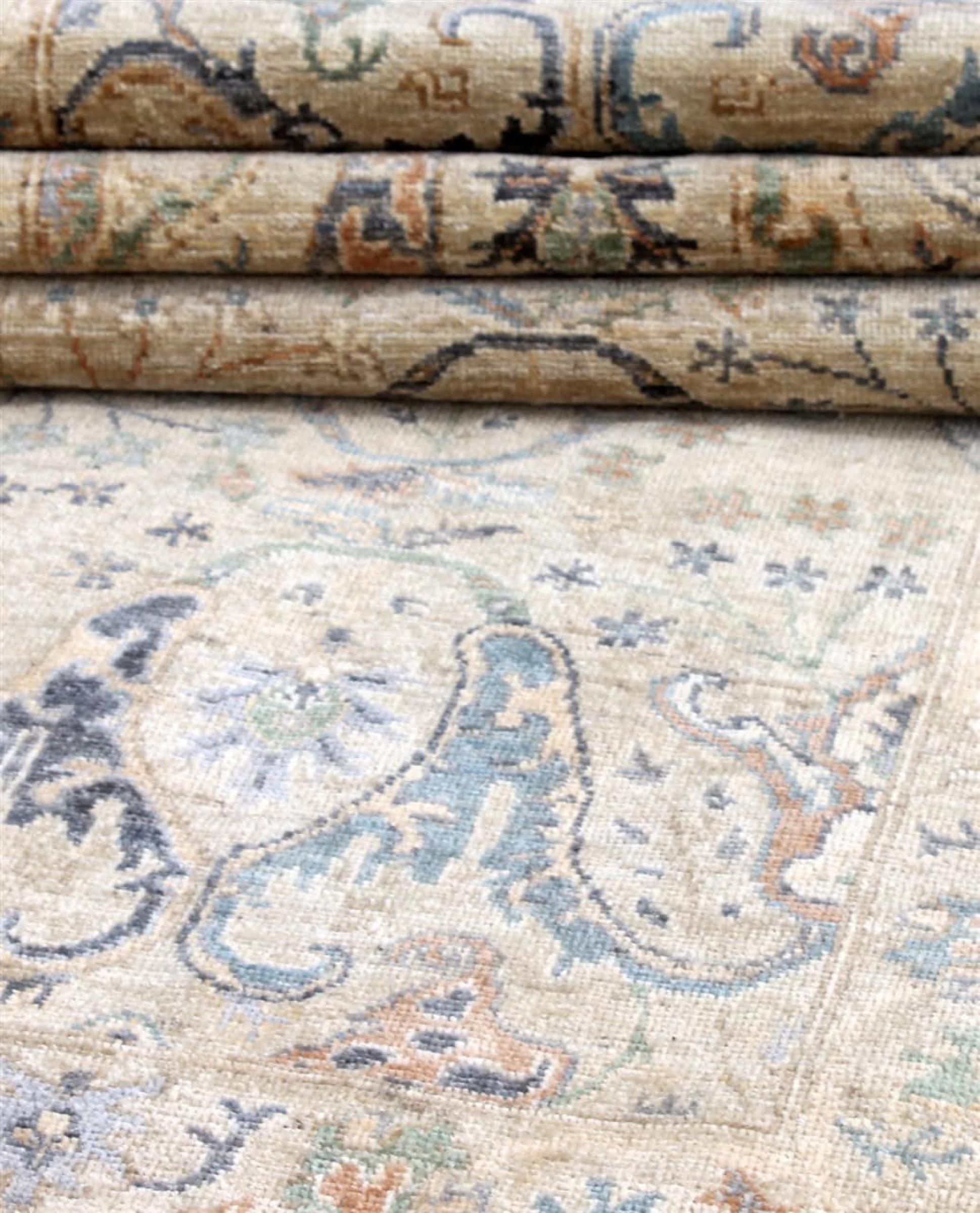 This rug is made of hand spun sheep wool of the highest quality. Especially in Iran (former Persia), Afghanistan and Pakistan wool is still spun by hand before the actual knotting of the rug begins. Wool has proven itself as a natural and extremely hard-wearing material over centuries. Among other things, it has dirt-repellent and heat-insulating properties. At the same time, wool is incomparably soft and has a natural shine.