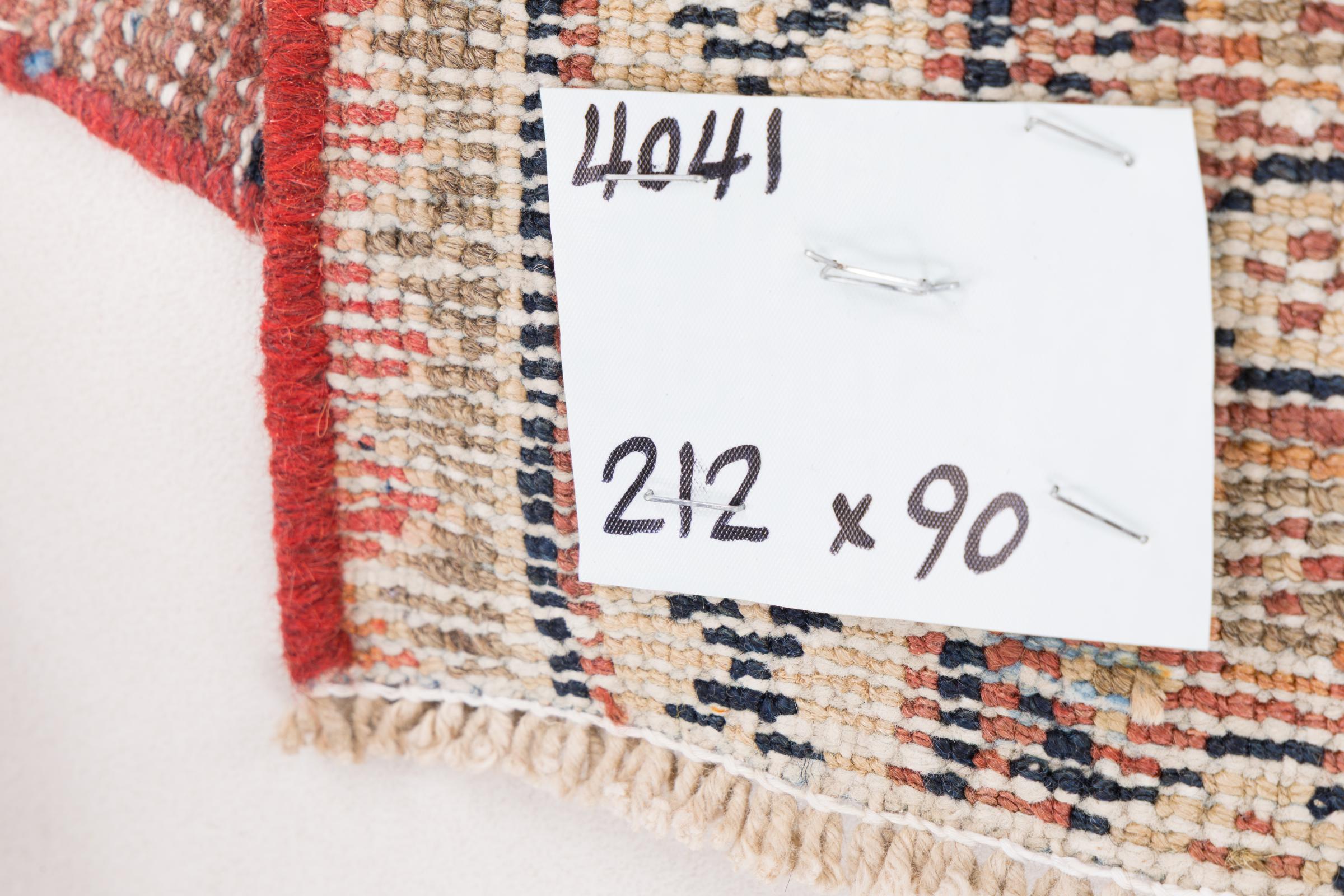 Carpet ID: 28425100979515 Size: 213x89 cm Thickness: ap. 5 mm Knot density: 128 000 - 160 000 / m² Manufacturing: Knotted by hand Pile: Handspun wool Warp: Cotton Origin: Persia Age: New Weight: ap. 7 kg In stock: Unique - Only 1 in stock