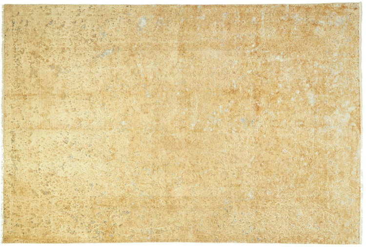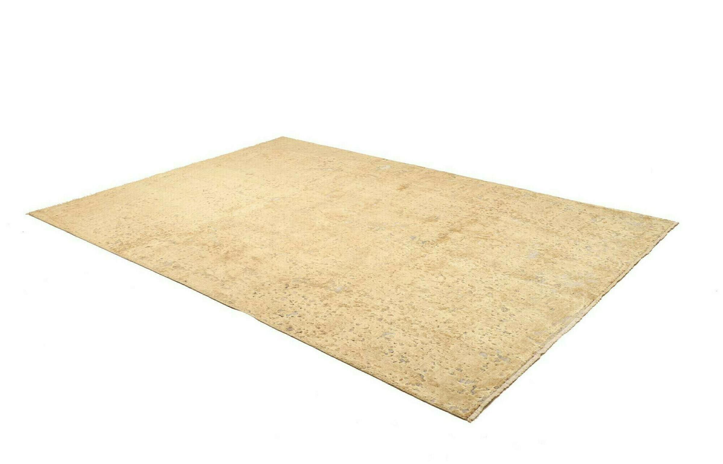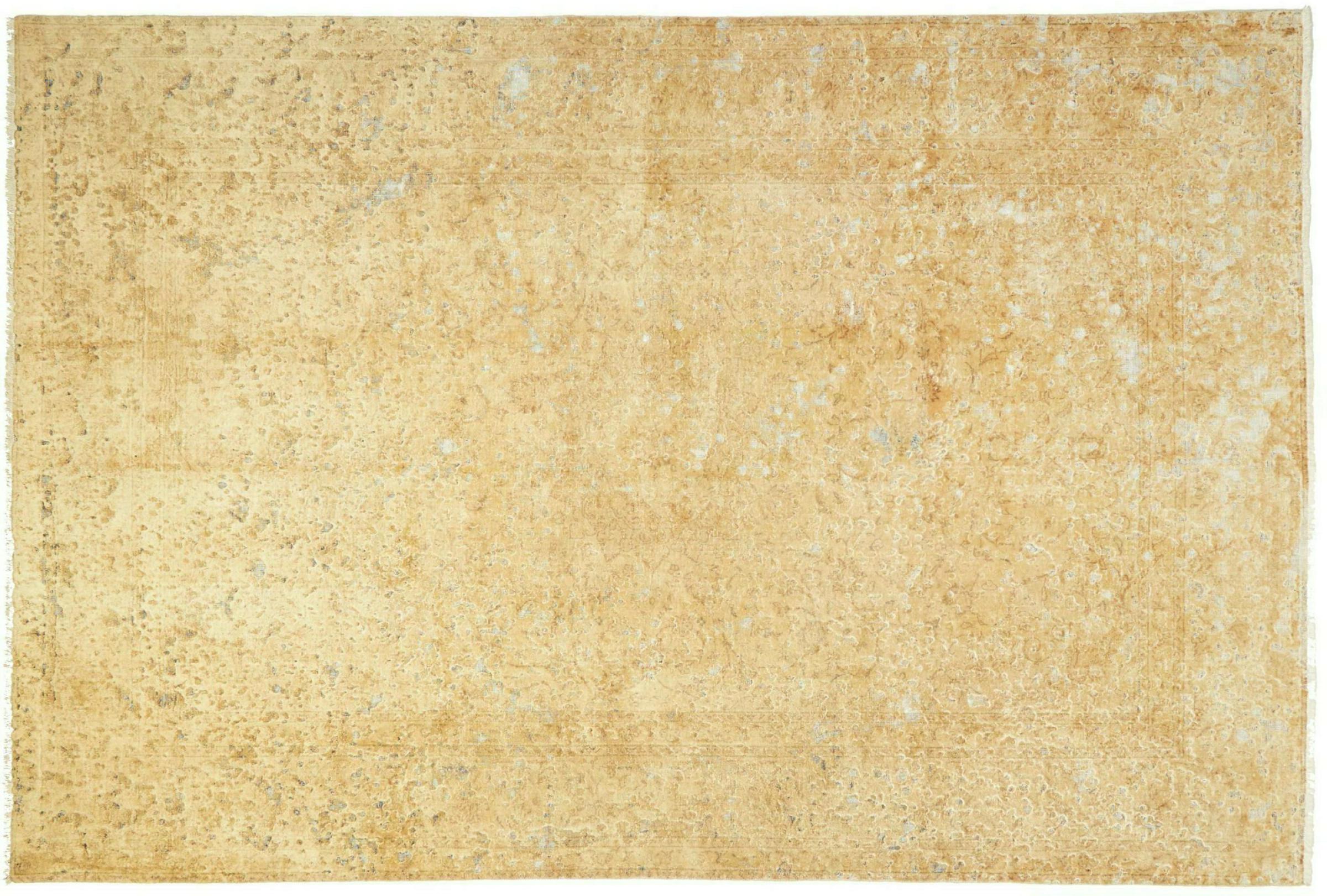 This is a hand-knotted Persian carpet that is at least 20 years old. Such a carpet can last for generations with the right care. The carpet has been completely re-dyed without completely over-dyeing the originally knotted ornaments. This gives the high quality Persian carpet a unique modern vintage character.