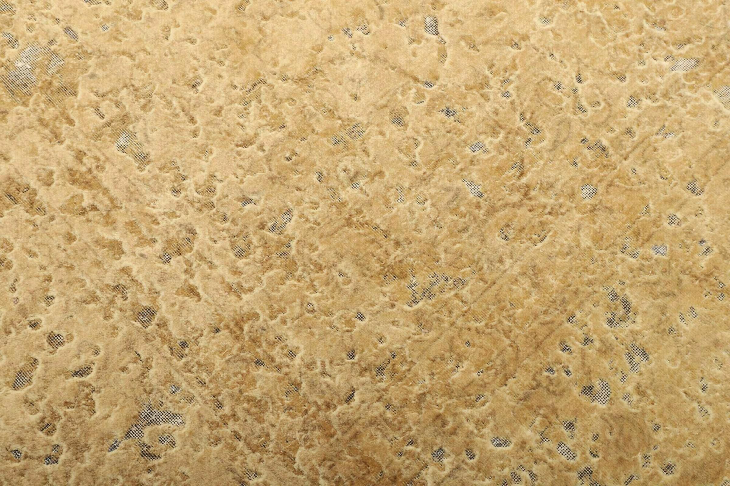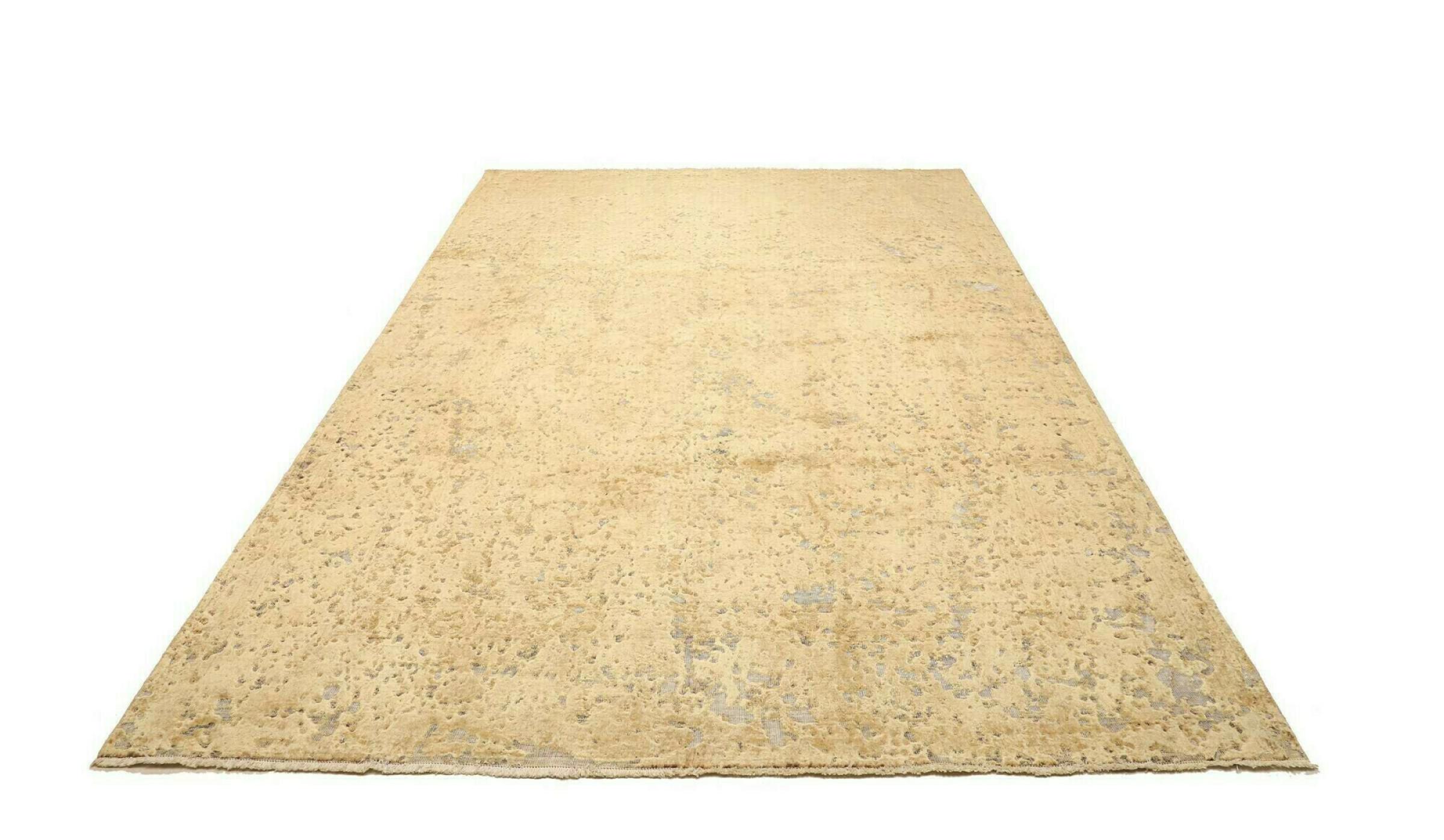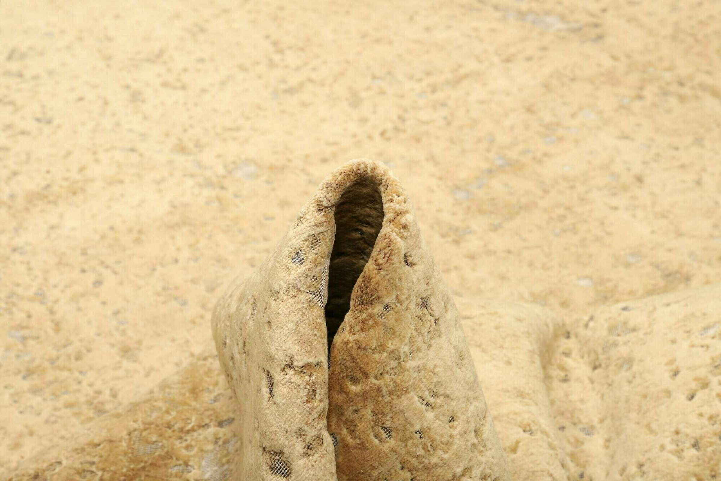This is a hand-knotted Persian carpet that is at least 20 years old. Such a carpet can last for generations with the right care. The carpet has been completely re-dyed without completely over-dyeing the originally knotted ornaments. This gives the high quality Persian carpet a unique modern vintage character.