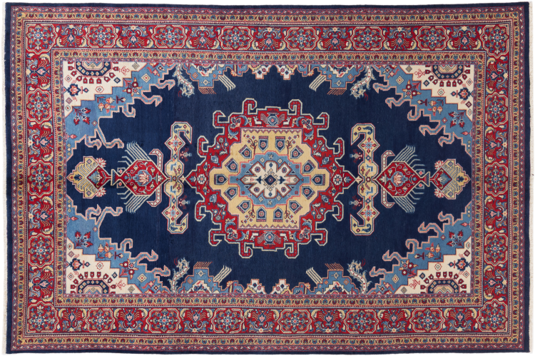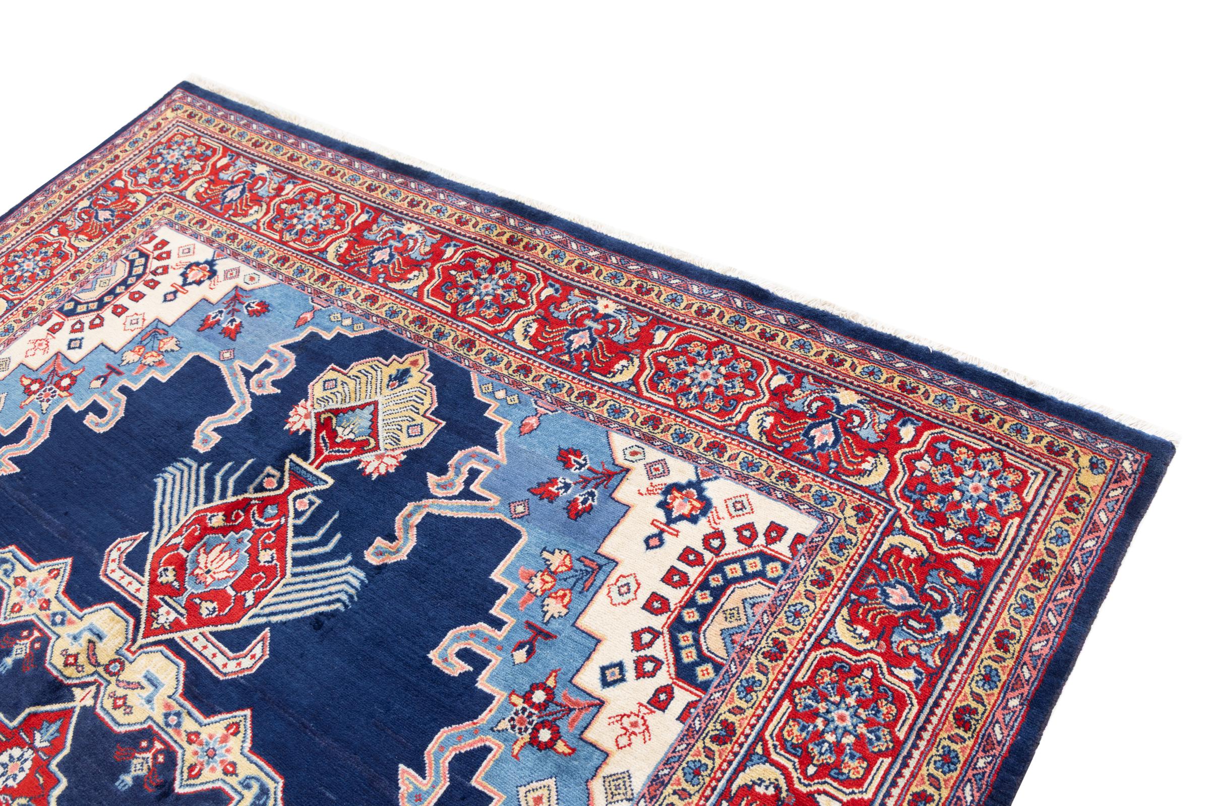 This Wiss rug is a beautiful Persian rug with clear colour tones. The blue colour accents and typical patterns of a village and nomadic rug are characteristic. A Wiss usually has three medallions arranged next to each other.