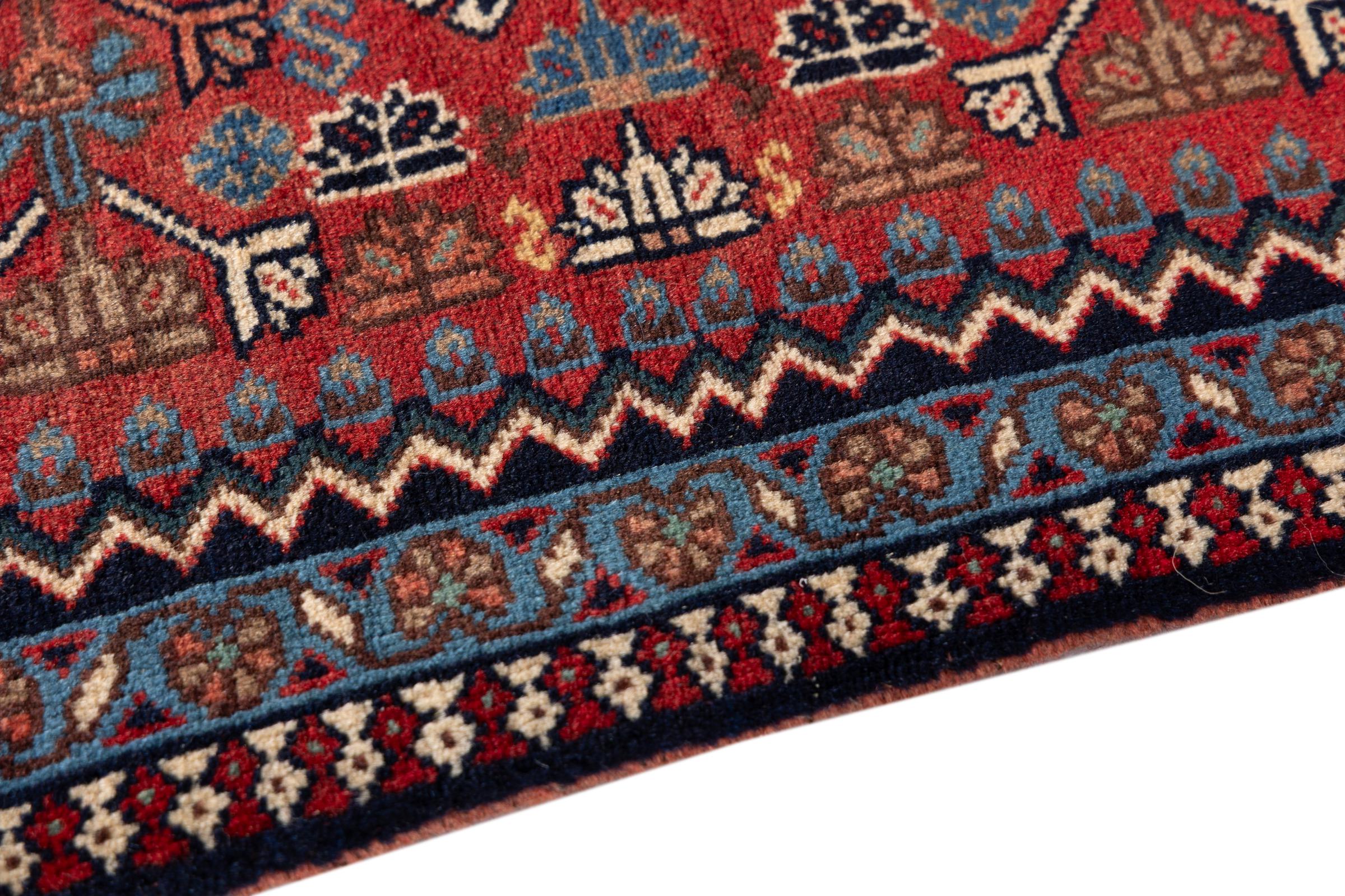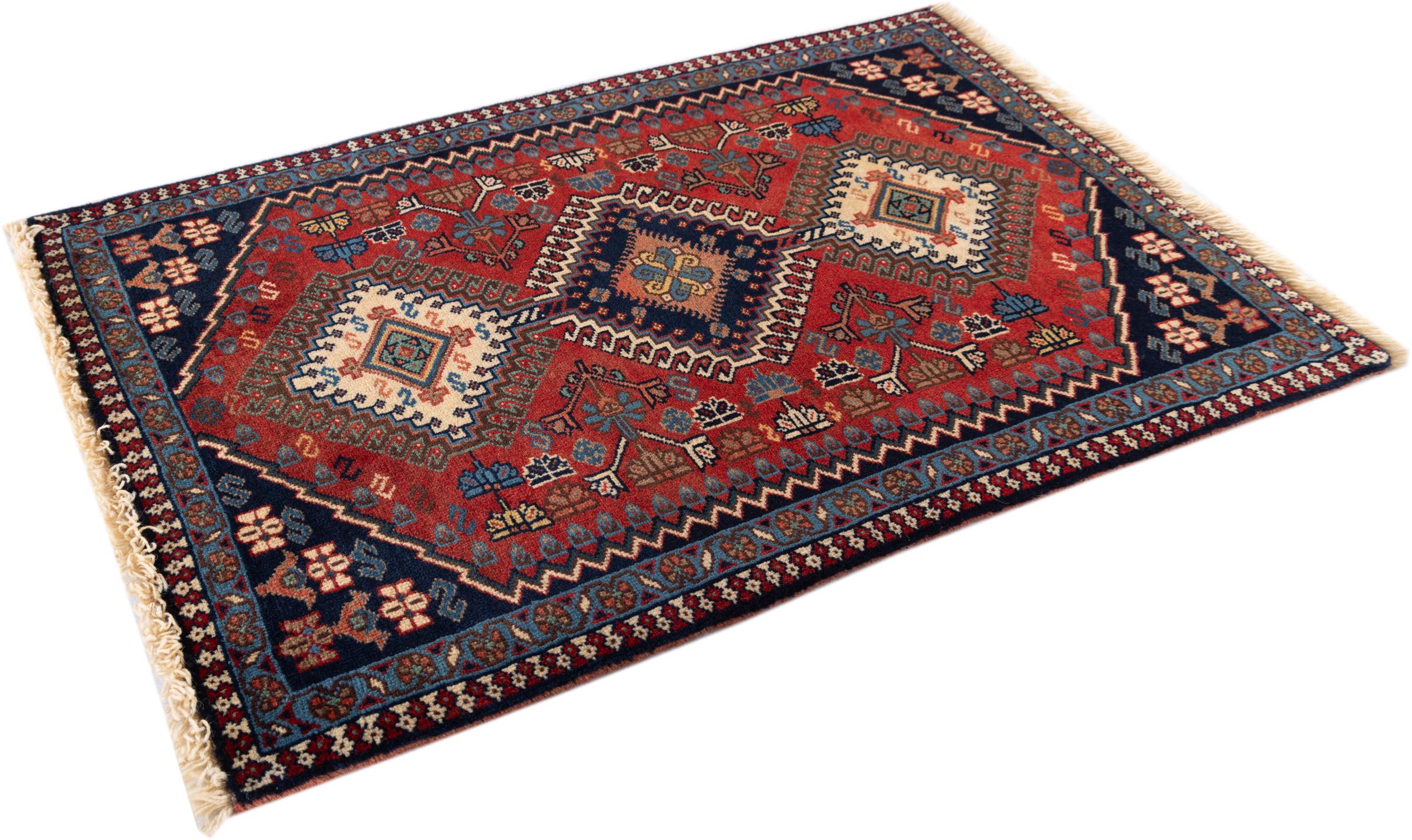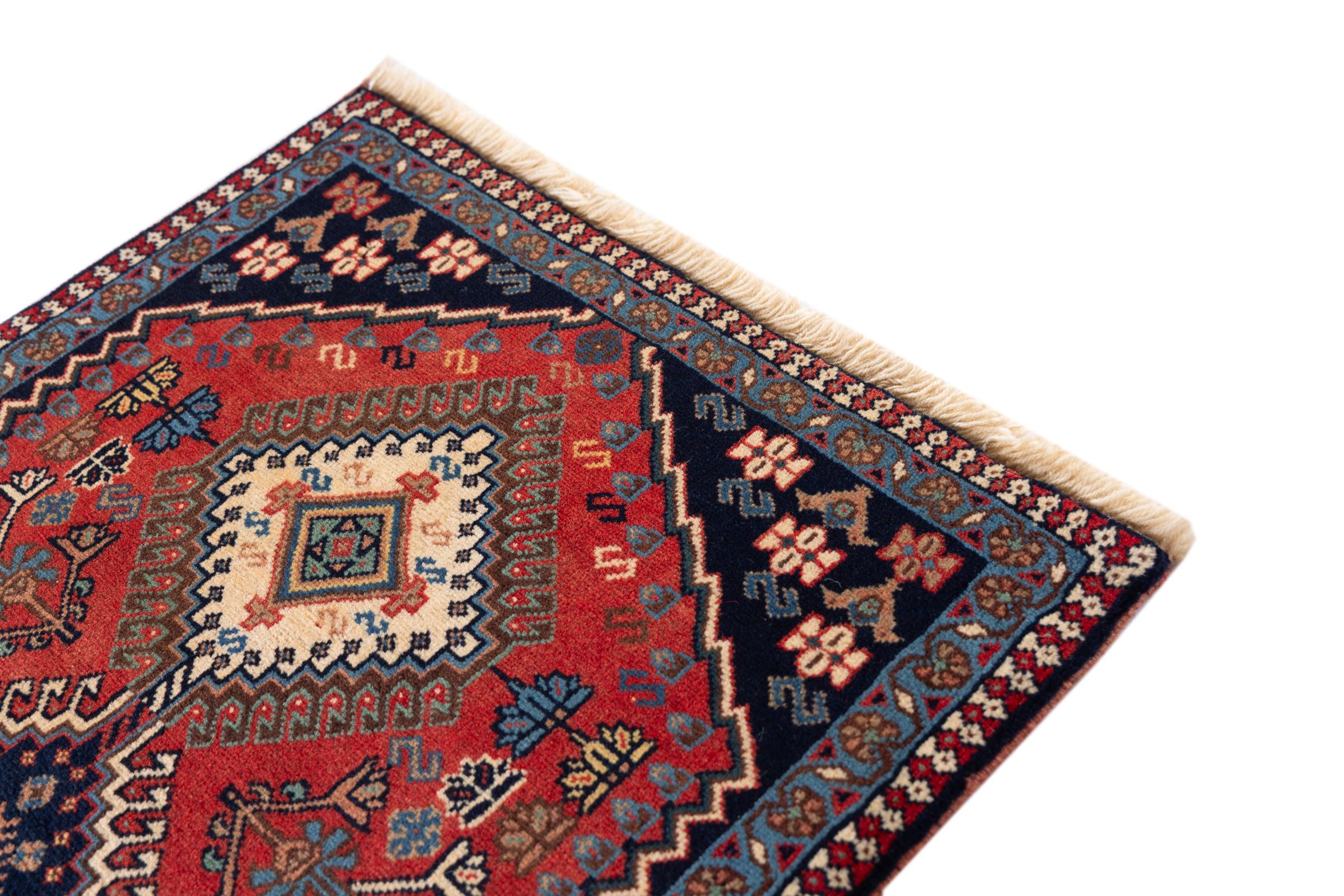 This rug belongs to village and nomadic rugs from Iran, formerly Persia. This type of rug is knotted by hand in smaller towns and villages in old tradition. Even nomads still knot Persian rugs in the open air. The rugs are knotted without a draft and completely from the mind. They are characterized by classical ornaments, which are arranged in straight and geometrical patterns. Thanks to their cultural-traditional origin, these rugs have a unique character that embodies ancient Persia.