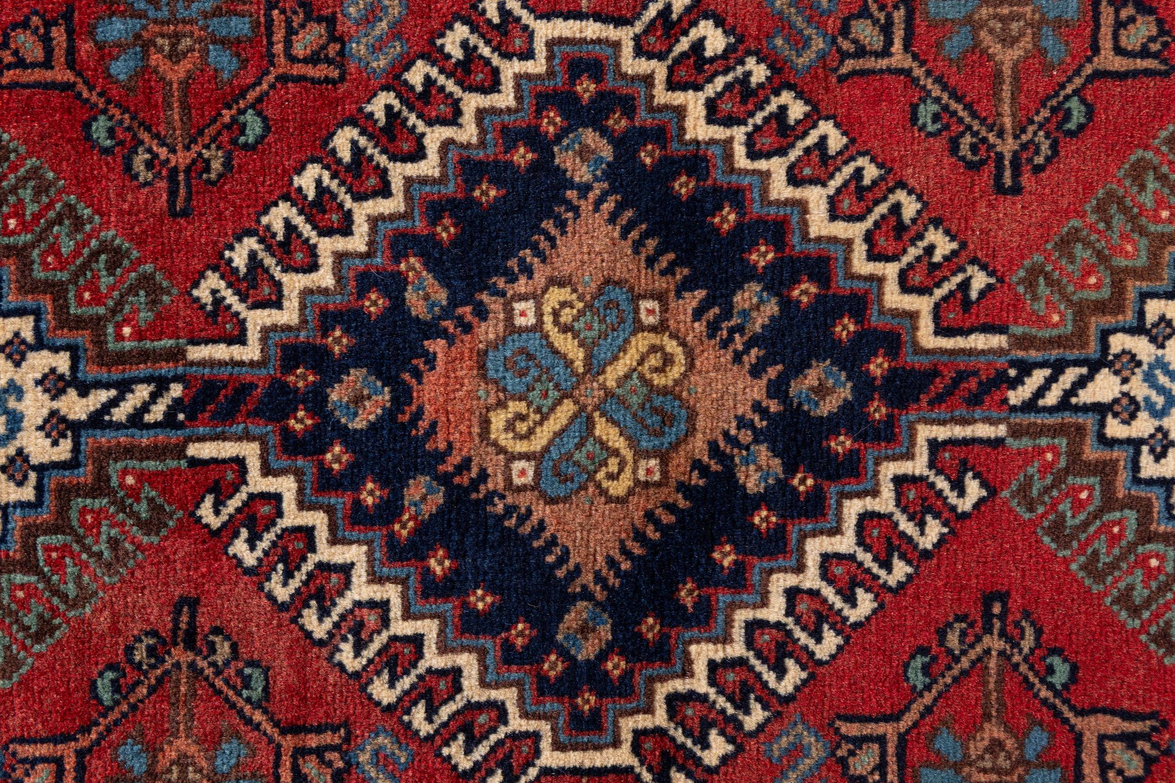 This traditionally handcrafted Persian carpet originates from Yalameh. It is a beautiful representative of its guild and loves to be combined to a modern minimalistic interior design. You wouldn't believe that its design persists for centuries already.