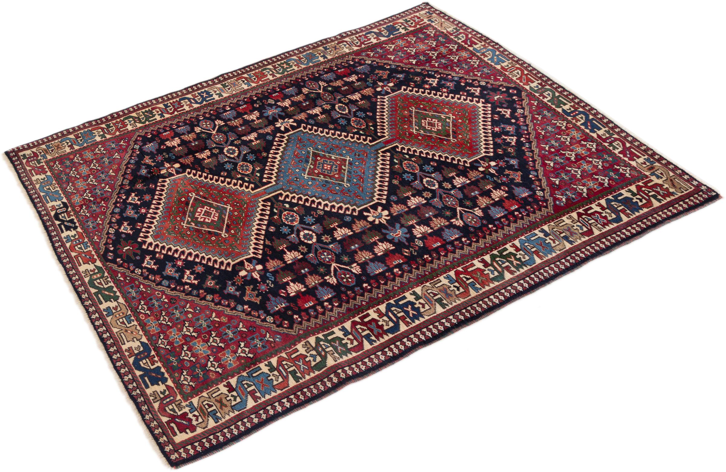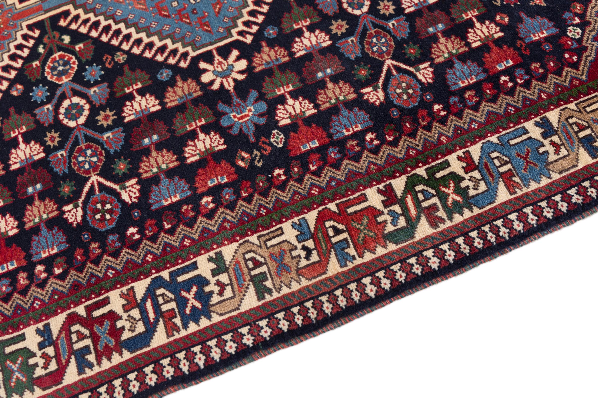 This rug belongs to village and nomadic rugs from Iran, formerly Persia. This type of rug is knotted by hand in smaller towns and villages in old tradition. Even nomads still knot Persian rugs in the open air. The rugs are knotted without a draft and completely from the mind. They are characterized by classical ornaments, which are arranged in straight and geometrical patterns. Thanks to their cultural-traditional origin, these rugs have a unique character that embodies ancient Persia.