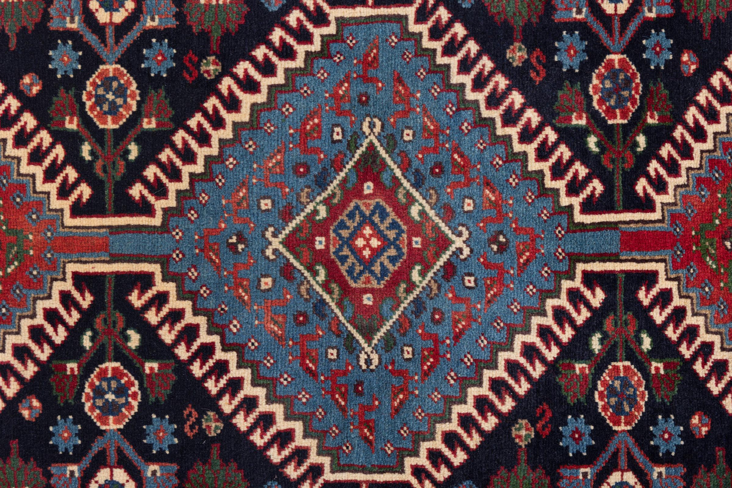 This traditionally handcrafted Persian carpet originates from Yalameh. It is a beautiful representative of its guild and loves to be combined to a modern minimalistic interior design. You wouldn't believe that its design persists for centuries already.