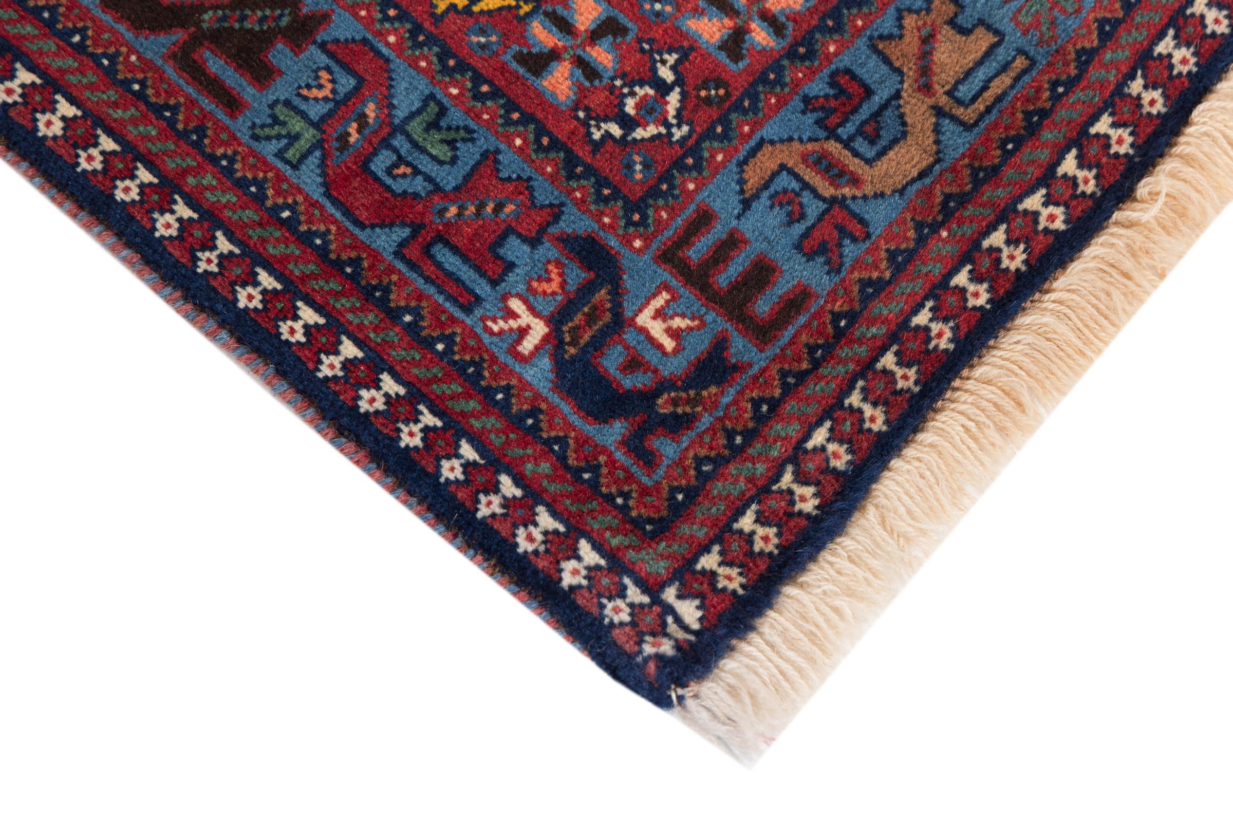 This rug belongs to village and nomadic rugs from Iran, formerly Persia. This type of rug is knotted by hand in smaller towns and villages in old tradition. Even nomads still knot Persian rugs in the open air. The rugs are knotted without a draft and completely from the mind. They are characterized by classical ornaments, which are arranged in straight and geometrical patterns. Thanks to their cultural-traditional origin, these rugs have a unique character that embodies ancient Persia.