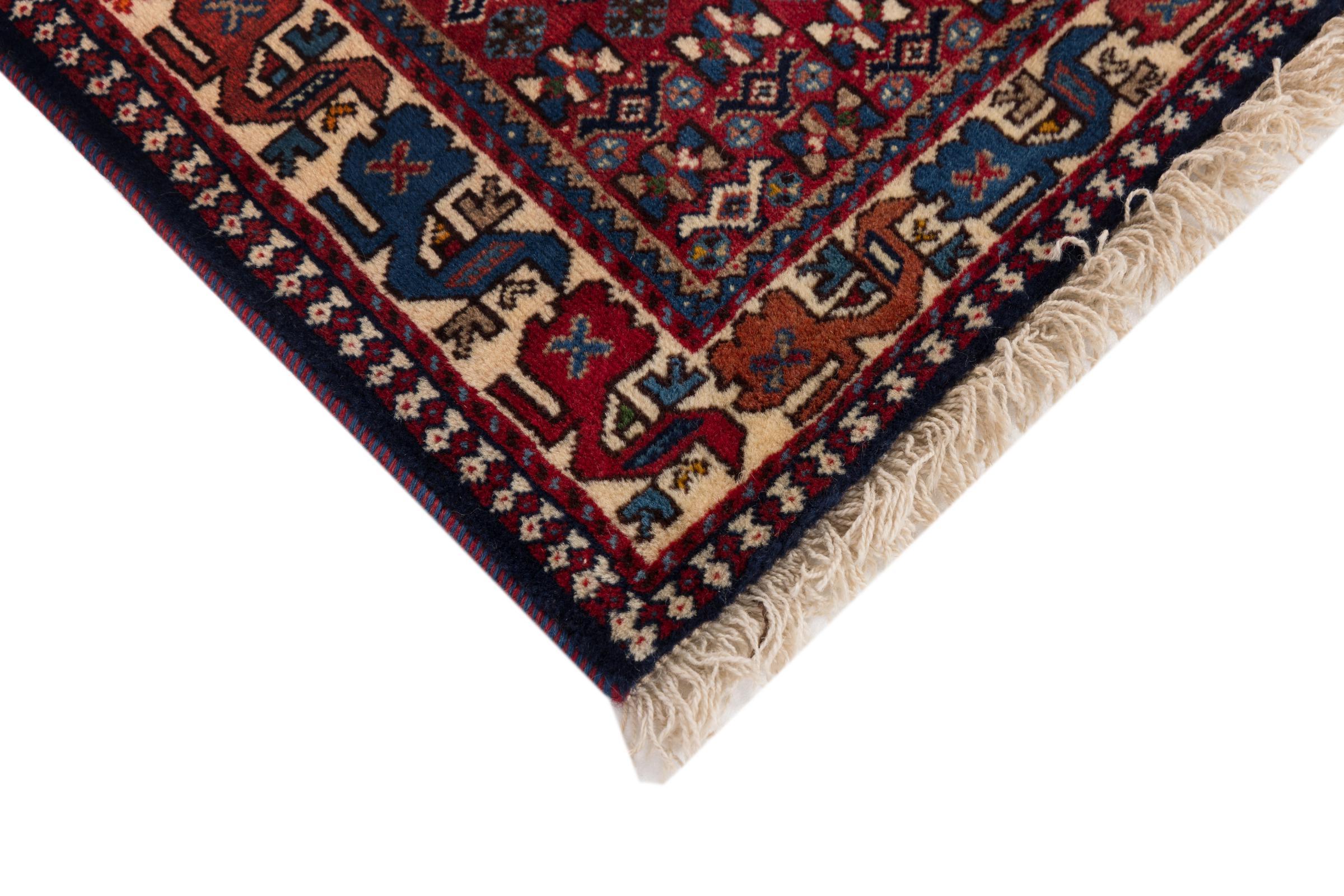 This traditionally handcrafted Persian carpet originates from Yalameh. It is a beautiful representative of its guild and loves to be combined to a modern minimalistic interior design. You wouldn't believe that its design persists for centuries already.