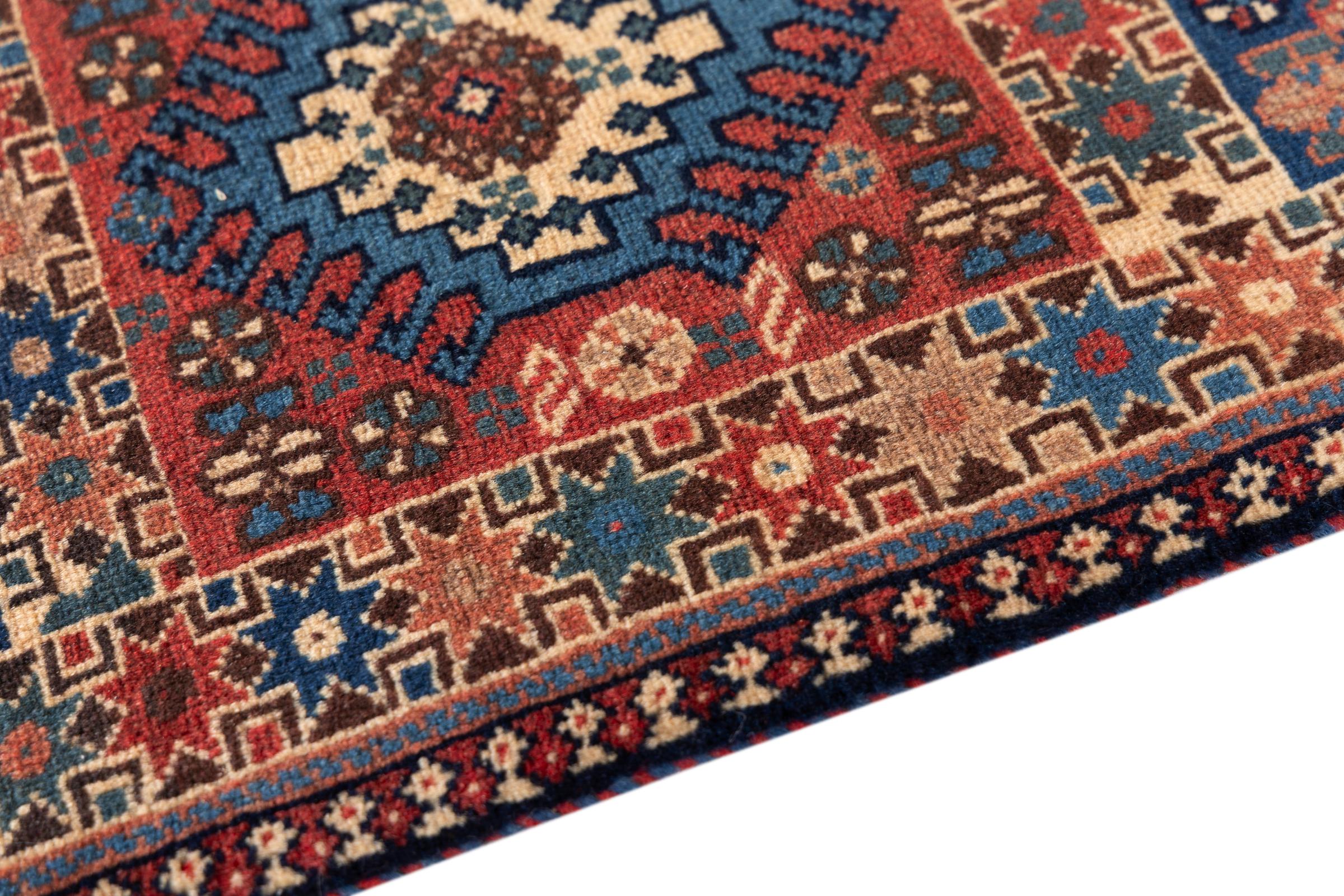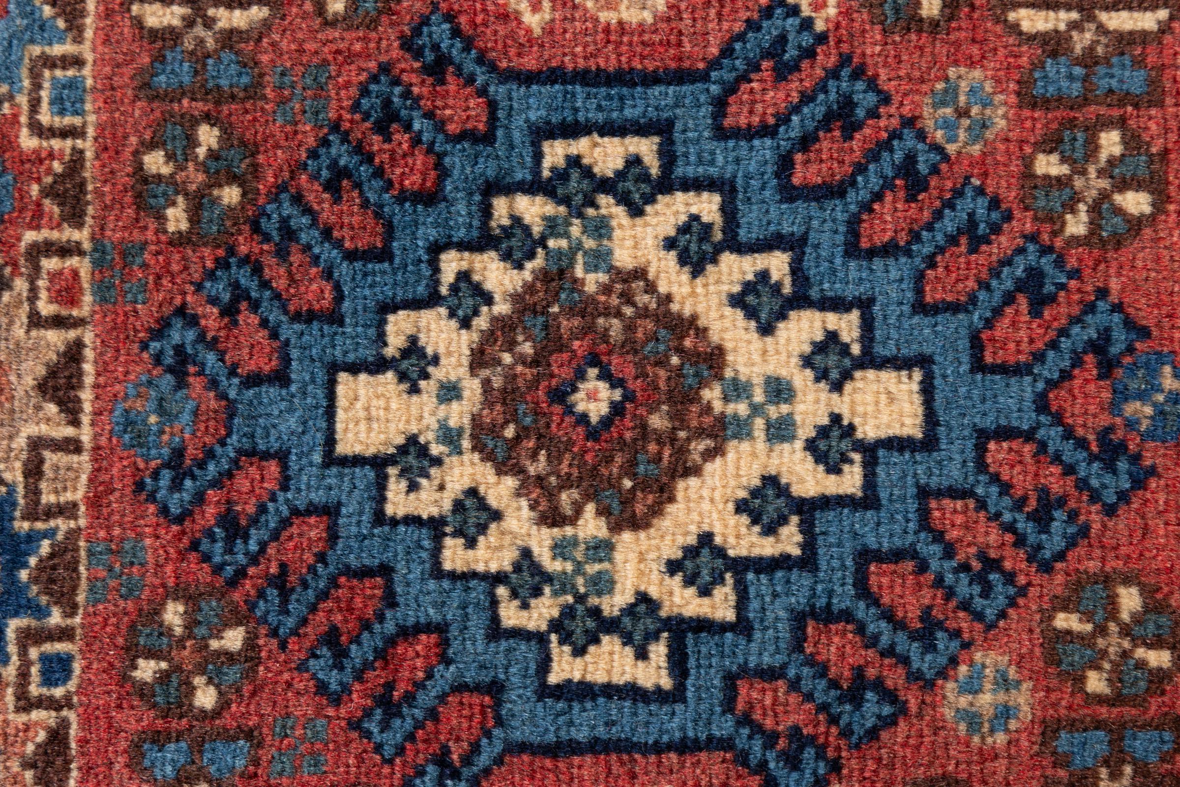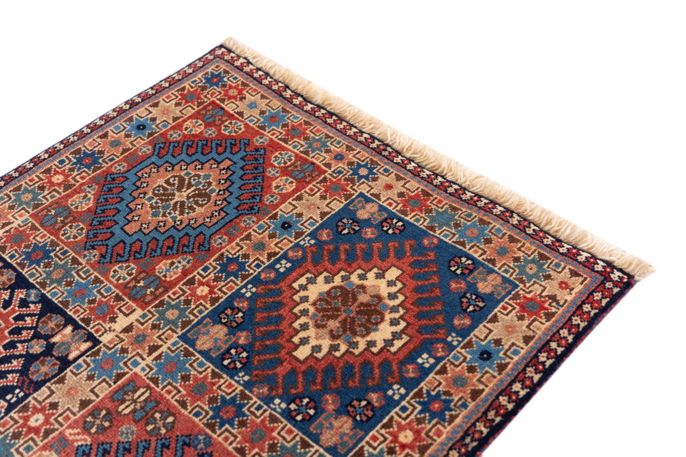 This rug belongs to village and nomadic rugs from Iran, formerly Persia. This type of rug is knotted by hand in smaller towns and villages in old tradition. Even nomads still knot Persian rugs in the open air. The rugs are knotted without a draft and completely from the mind. They are characterized by classical ornaments, which are arranged in straight and geometrical patterns. Thanks to their cultural-traditional origin, these rugs have a unique character that embodies ancient Persia.