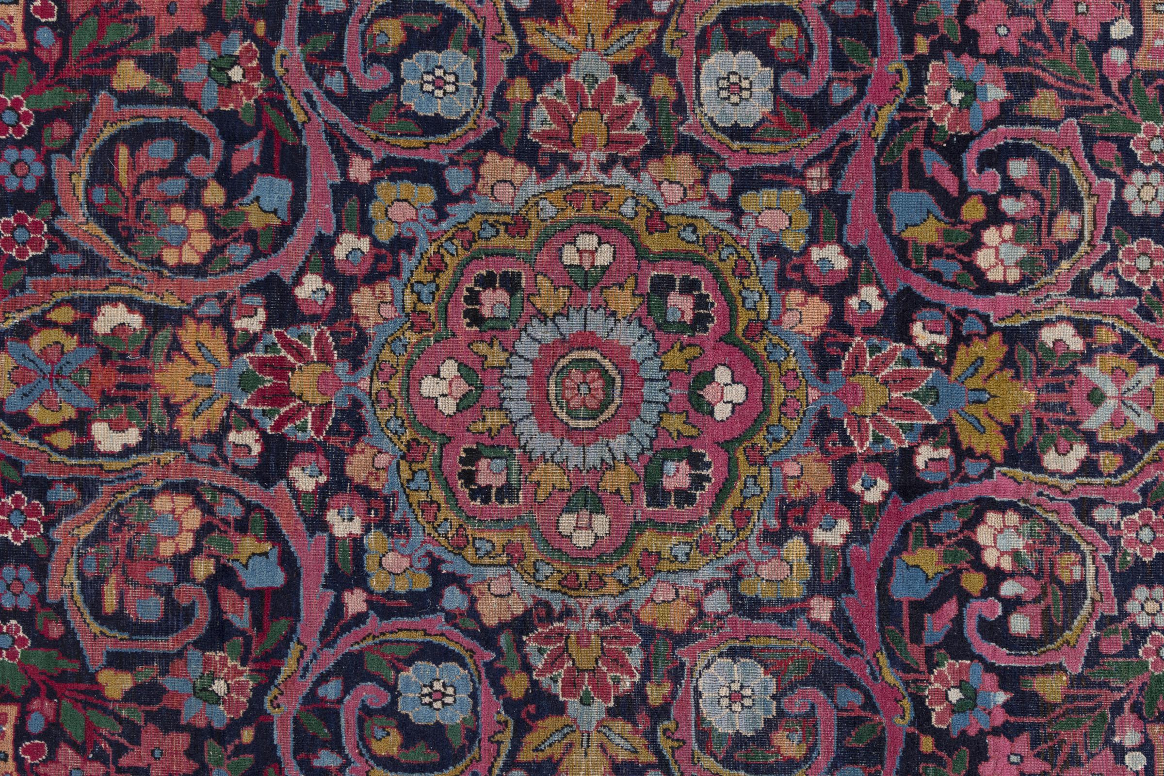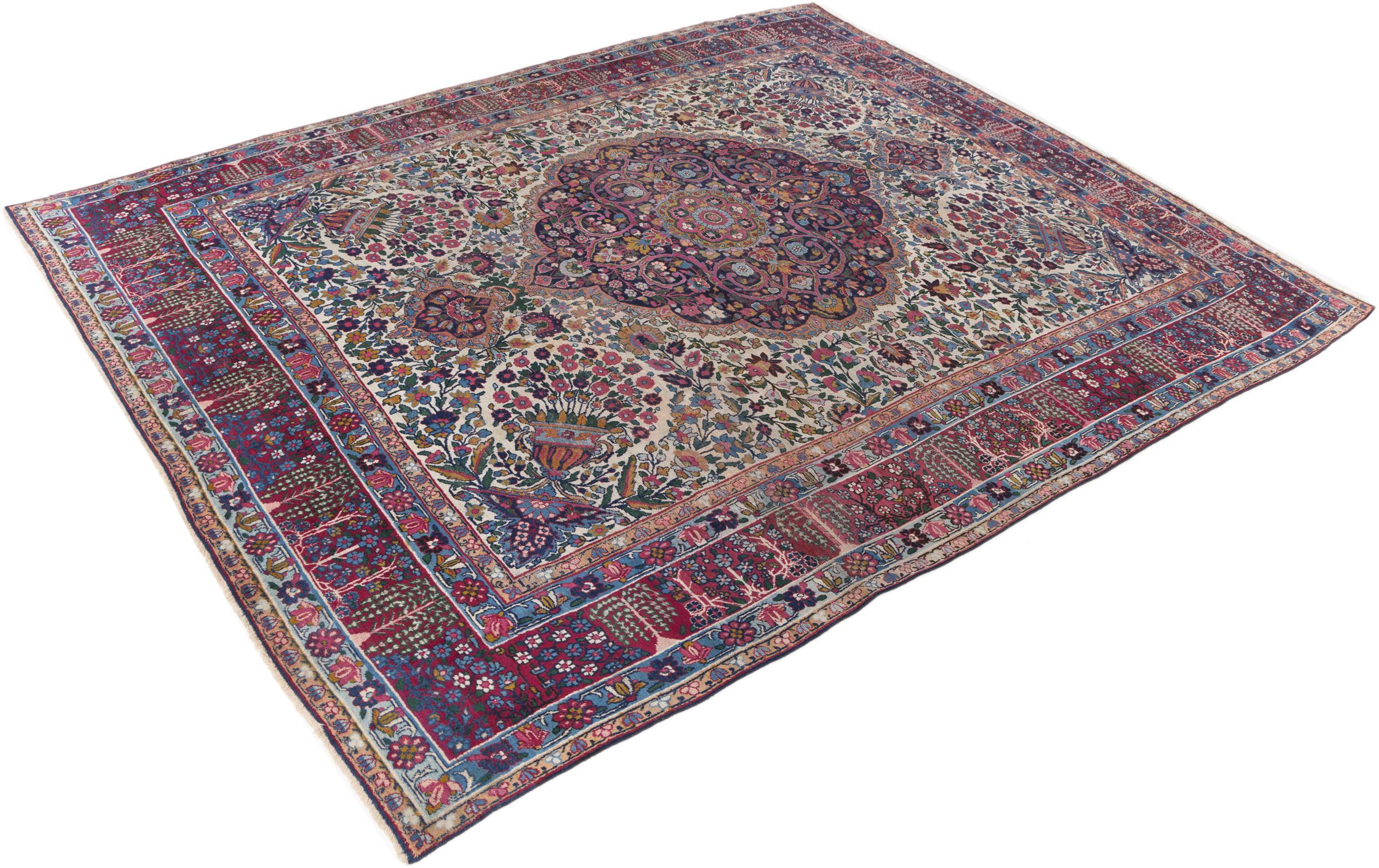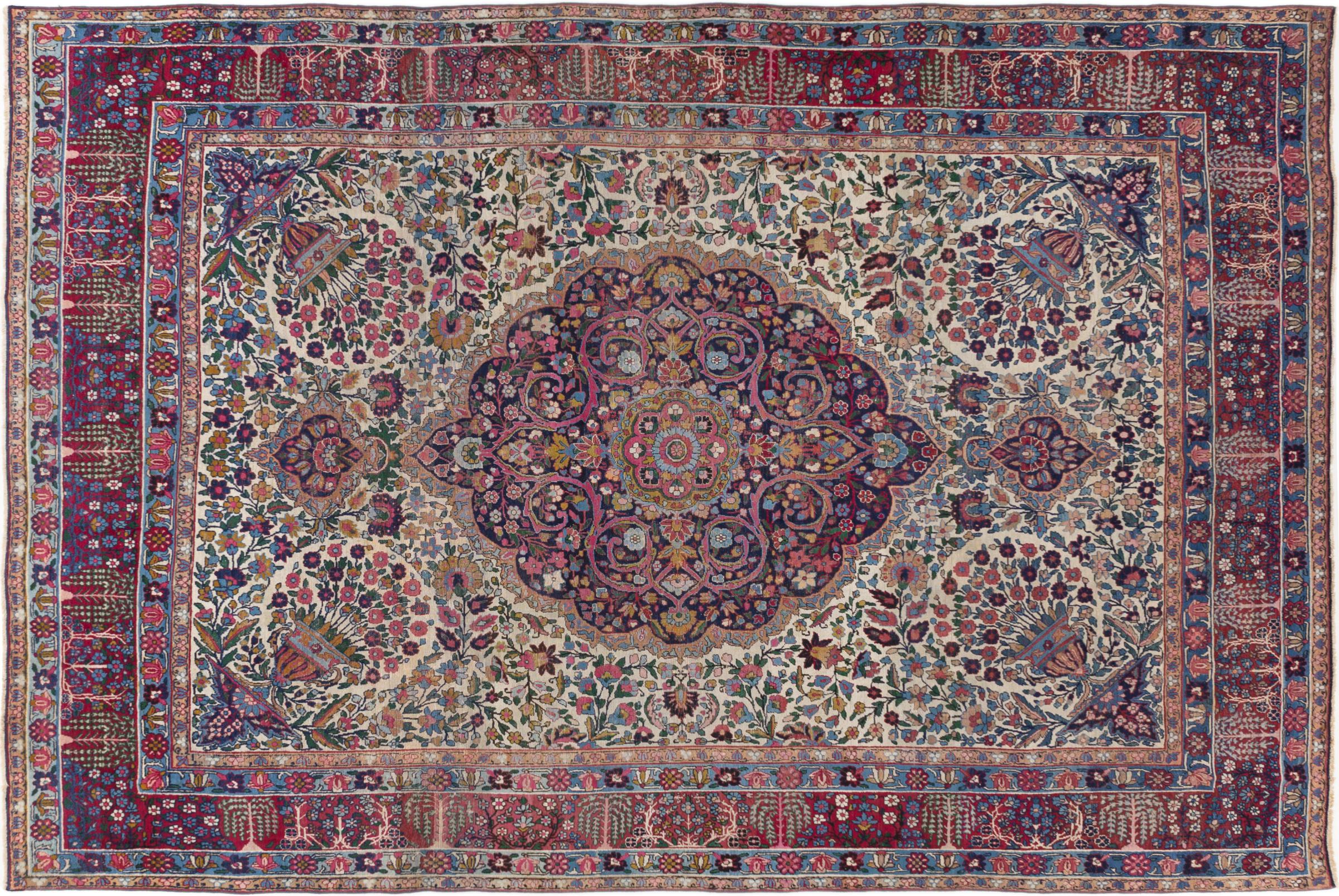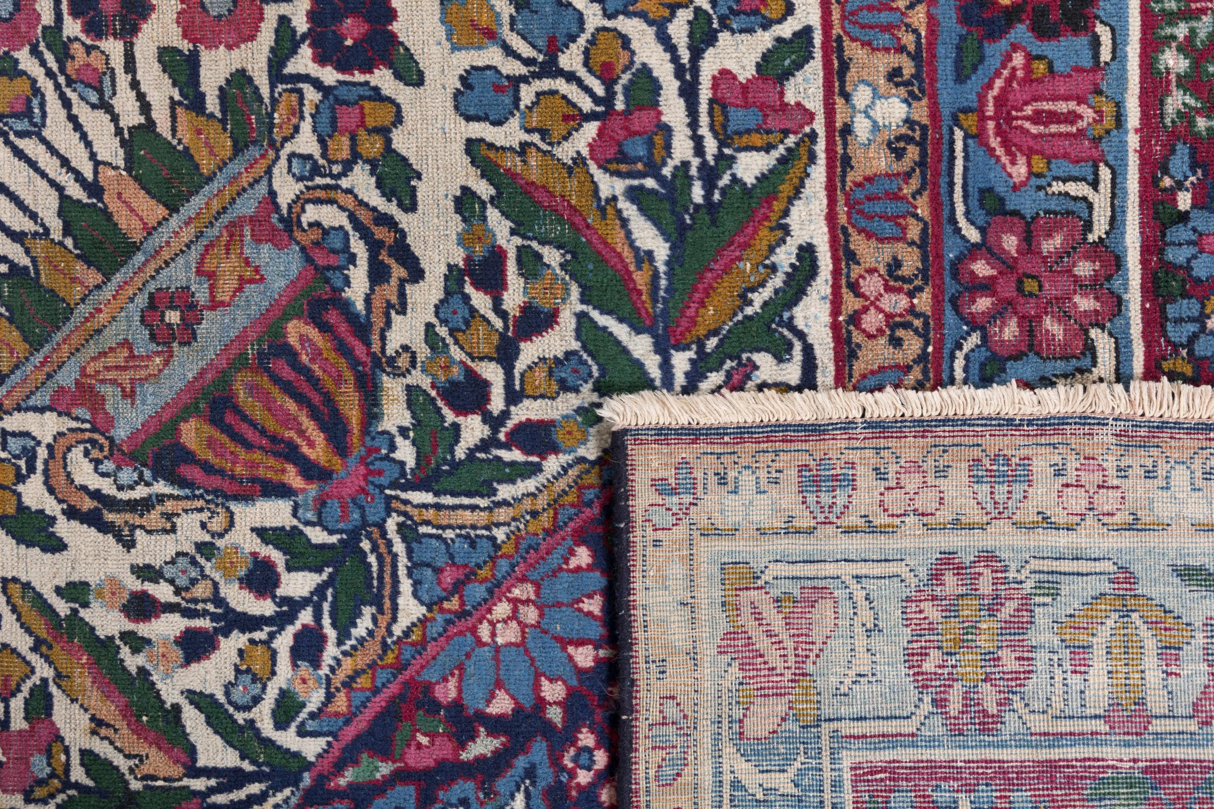 Carpet ID: 295596008244 Size: 417x283 cm Thickness: ap. 12 mm Knot density: 200 000 - 250 000 / m² Manufacturing: Knotted by hand Pile: Handspun wool Warp: Cotton Condition / Conservation Perfect Origin: Persia Age: Antique, over 80 years Weight: ap. 41 kg In stock: Unique - Only 1 in stock
