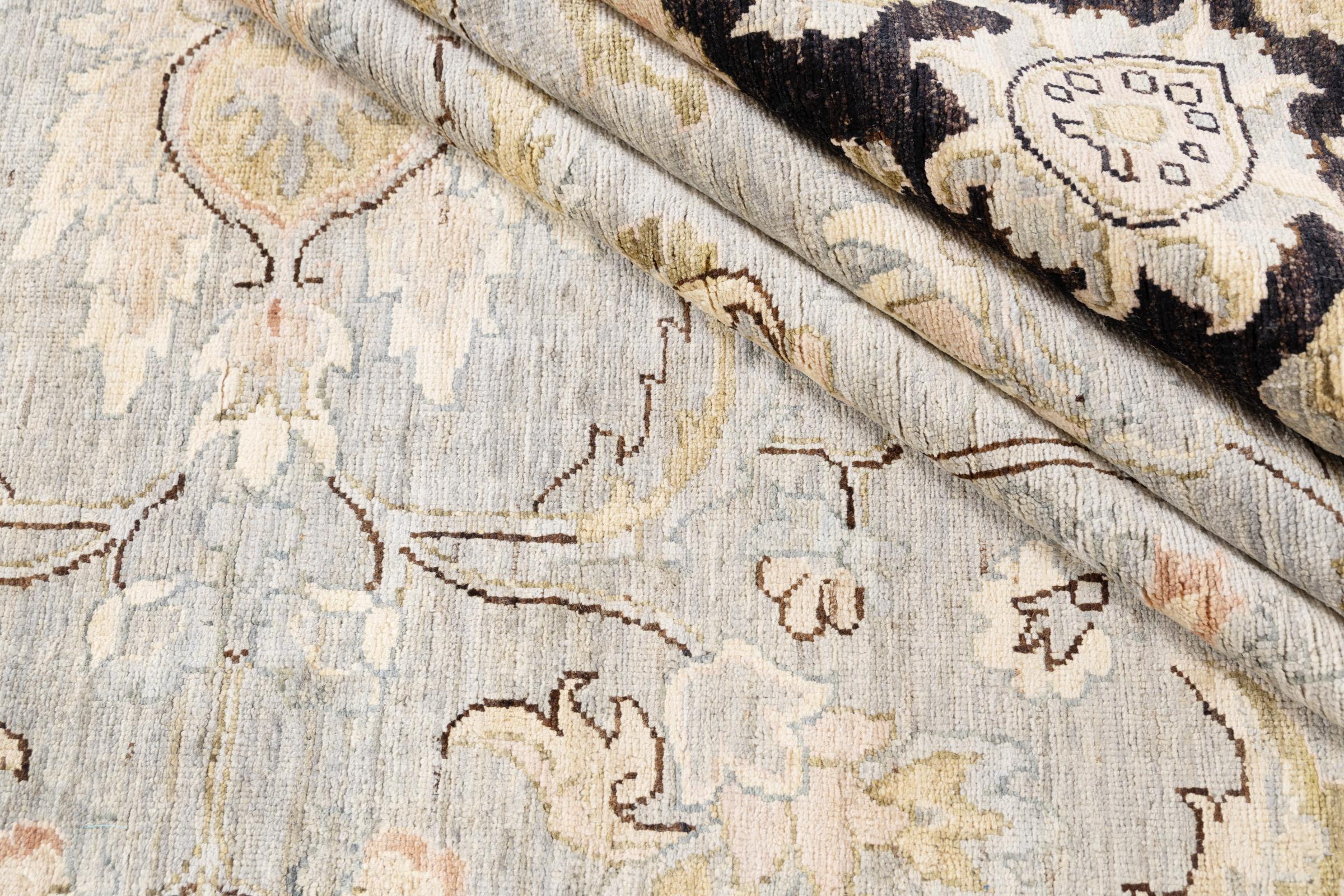 This Ziegler Farahan is hand knotted from high-quality wool in Pakistan. Sheep's wool has a natural fat content, which also protects the carpet from everyday stress. The special treatment method of these carpets achieves a beautiful, modern vintage patina. The carpet is based on traditional Persian carpets and, together with modern design elements, has been brought into the modern age. The result is very popular and high-quality Ziegler carpets, which fit perfectly into modern interior design concepts.