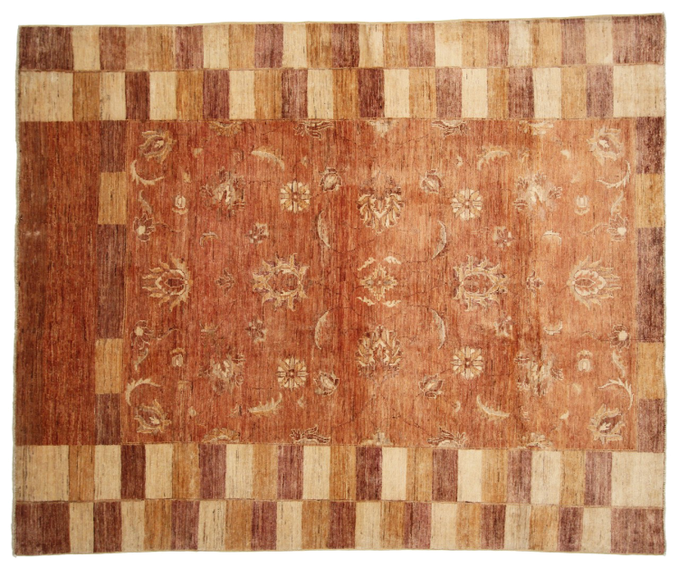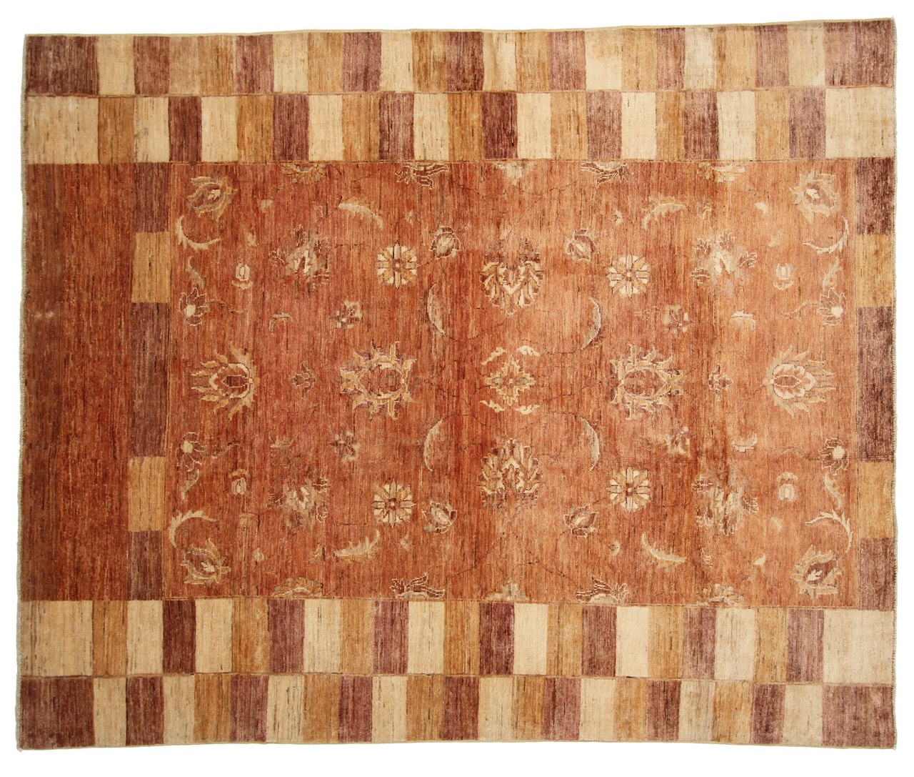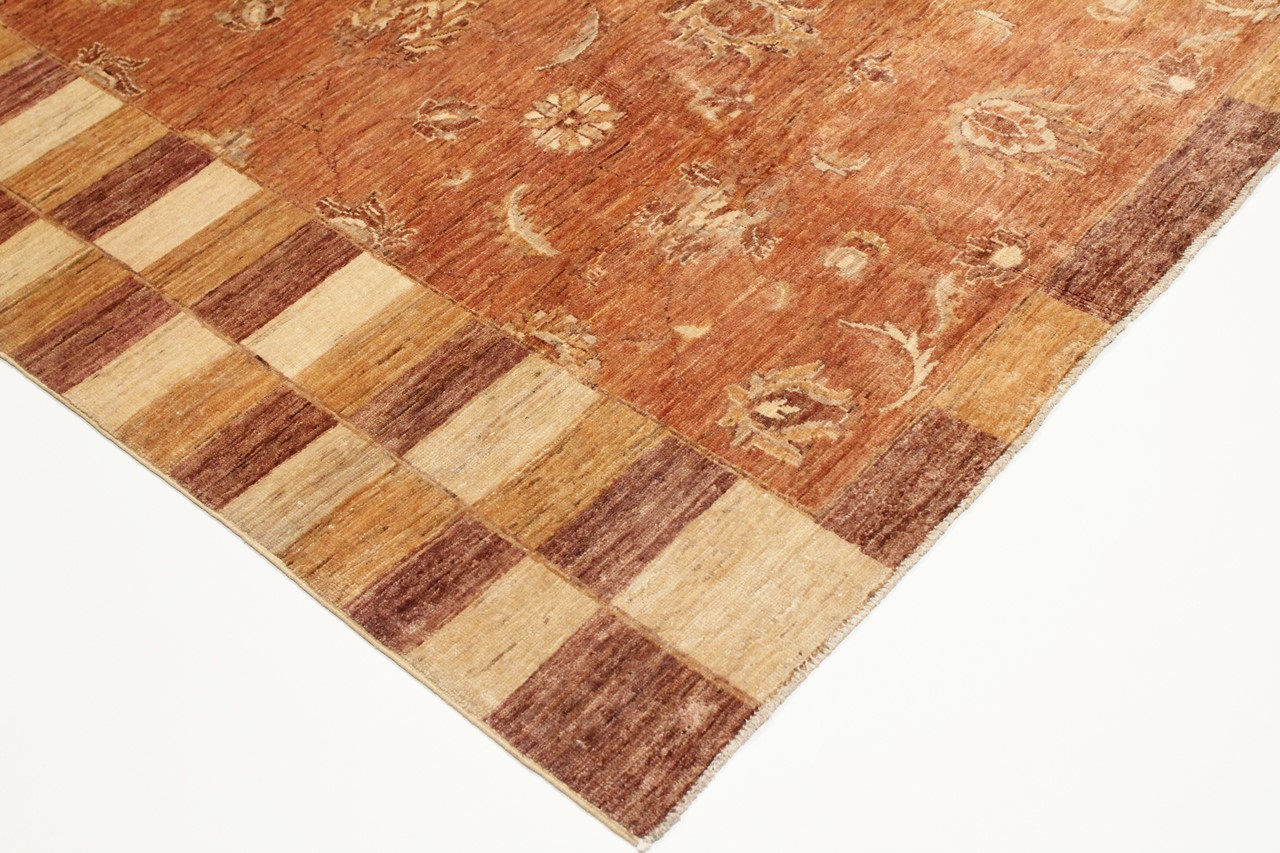 This modern Ziegler carpet was hand-knotted in new colours and patterns in Pakistan. The design and vibrant colours of this type of carpet impresses in modern interiors. Unlike traditional Ziegler carpets, this carpet does not take up the ornaments of traditional Persian carpets. It has a unique design combined with the high quality of natural sheep's wool and traditional craftsmanship.